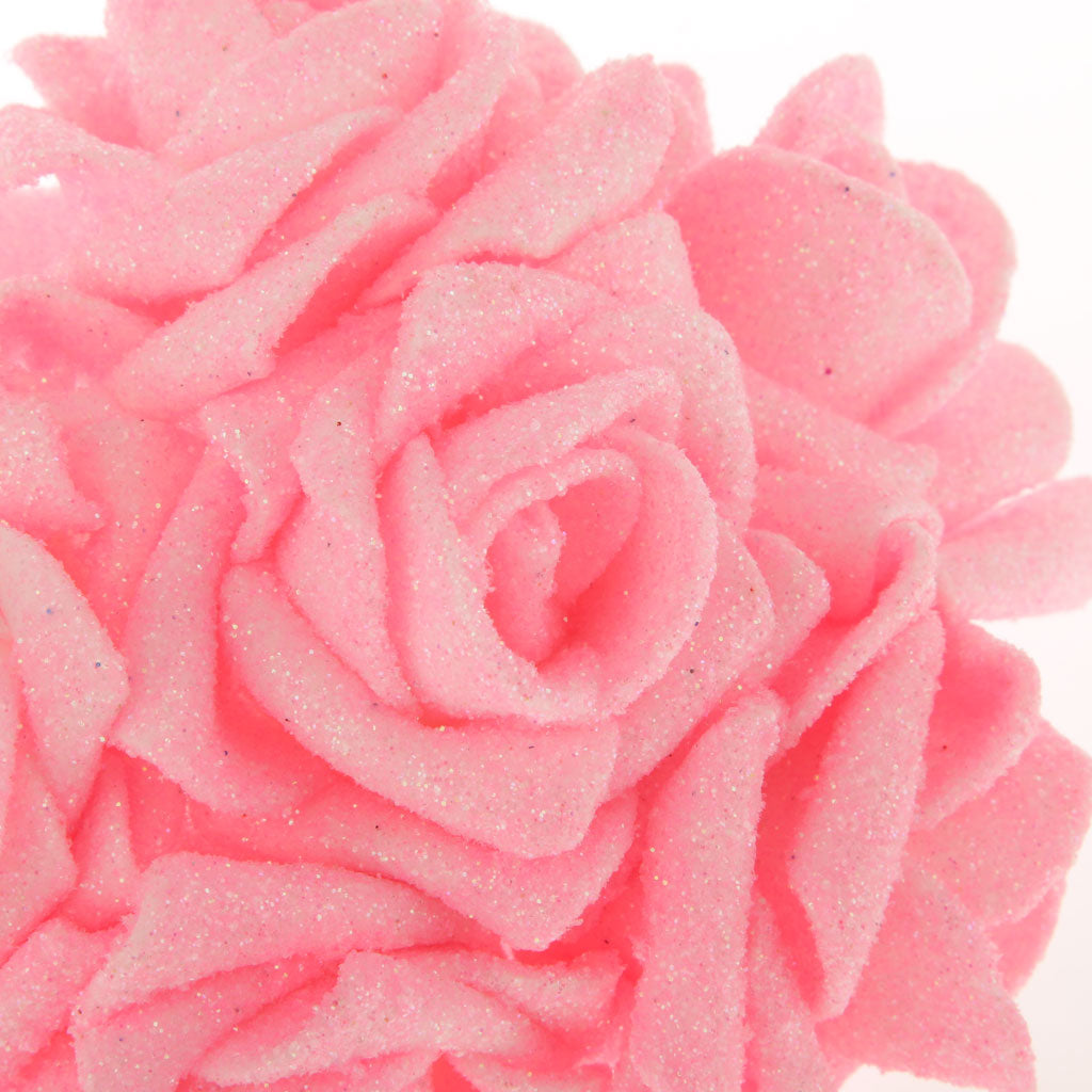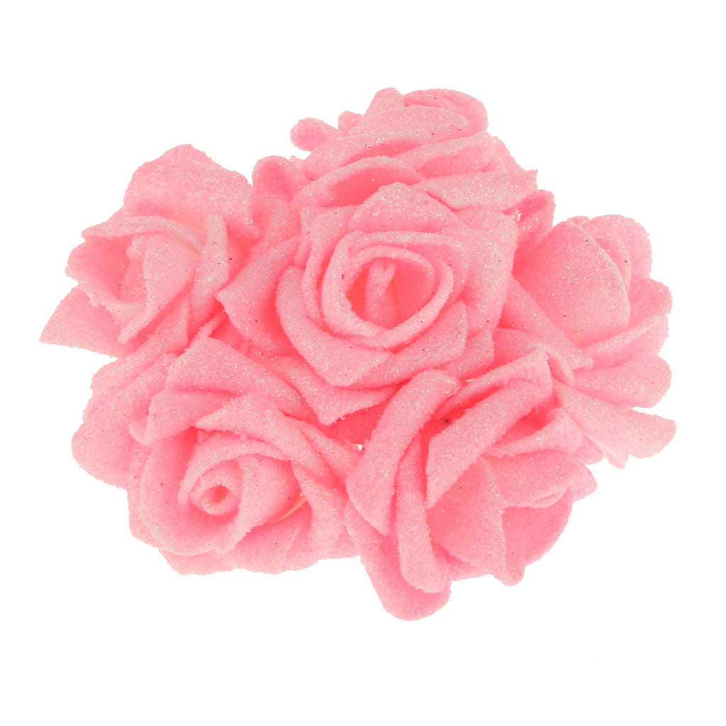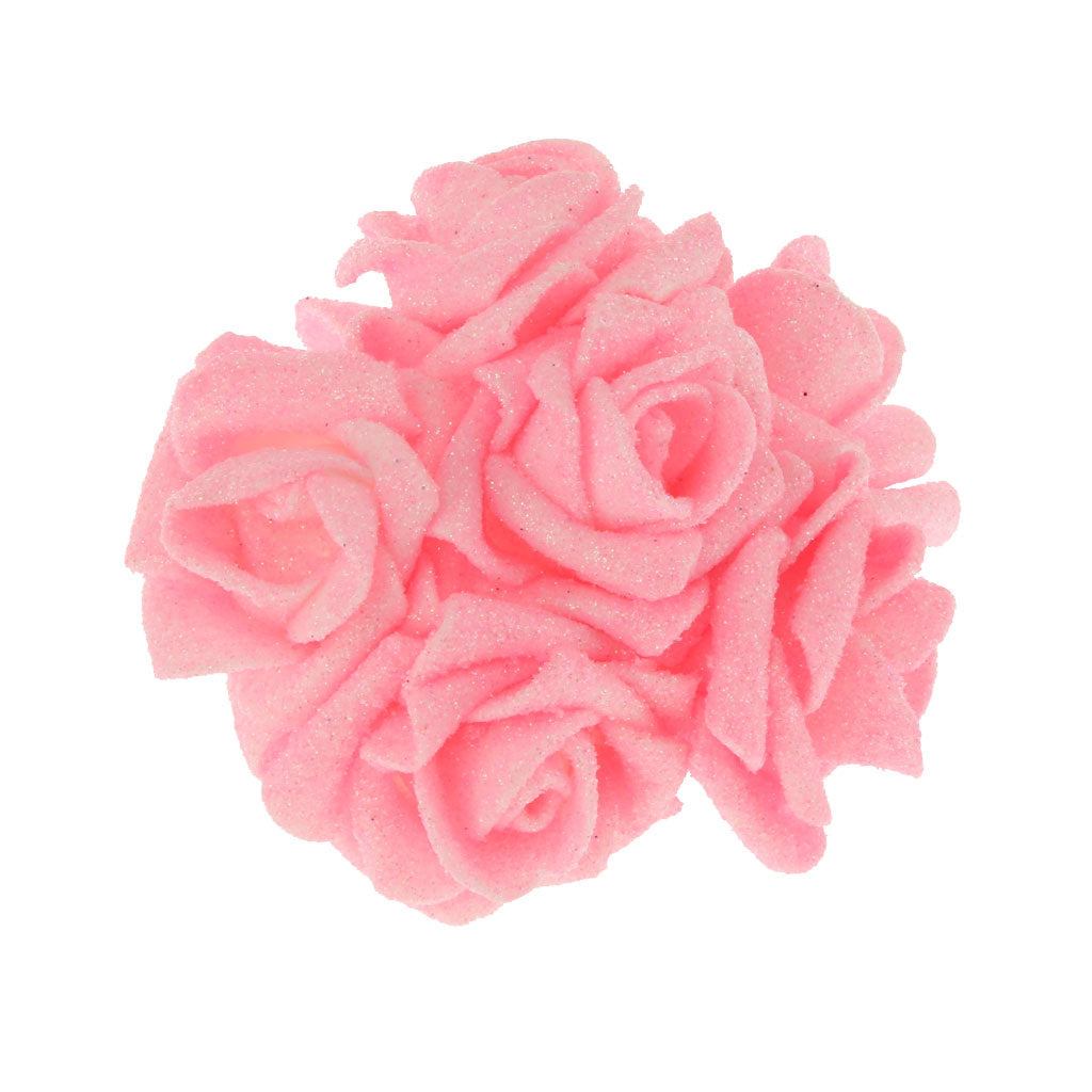 Artificial Foam Roses Glitter Powder Flower Bouquet Wedding Party Supplies Bridal Flower Bouquet Decor Pack of 12PCS Pink
