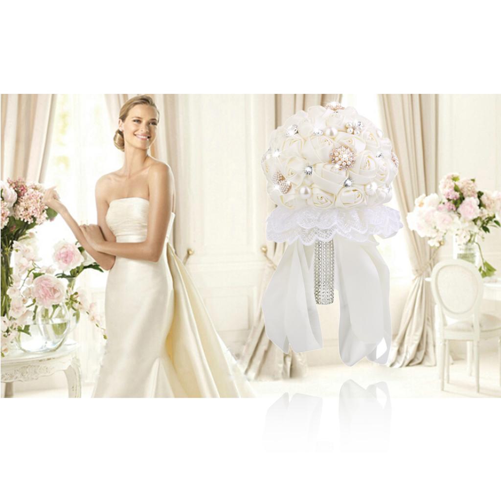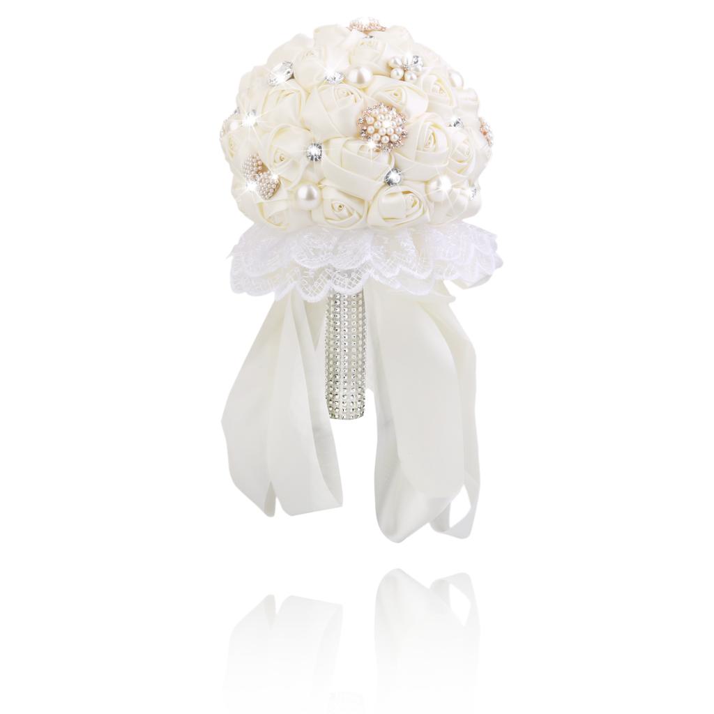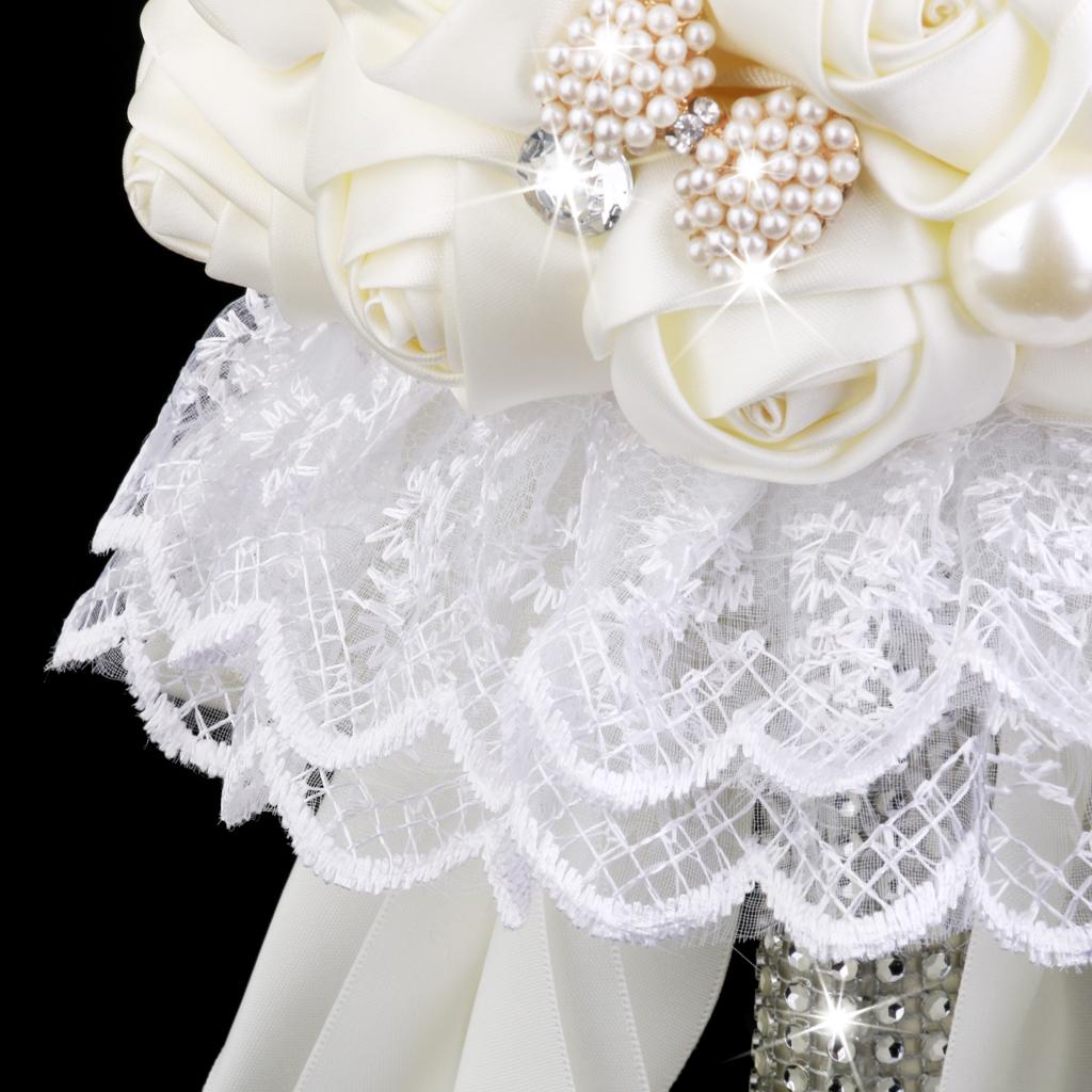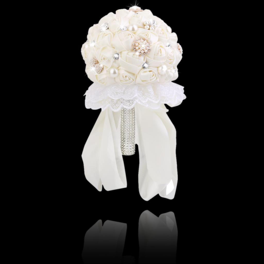 These beautiful wedding bouquets are crafted to the highest quality artificial roses and embellishing shiny rhinestone and faux pearl surrounded by delicate white ribbons and lace.
