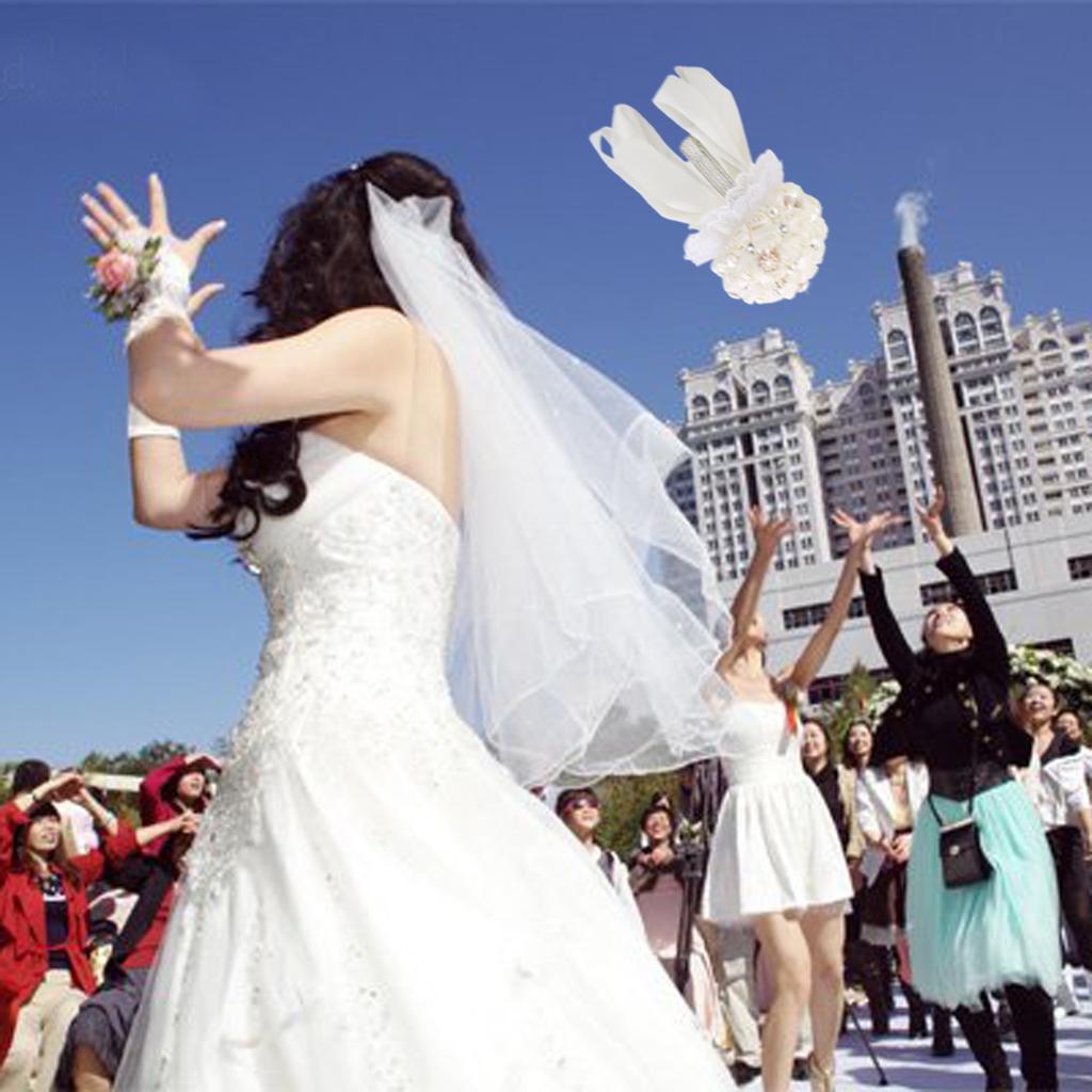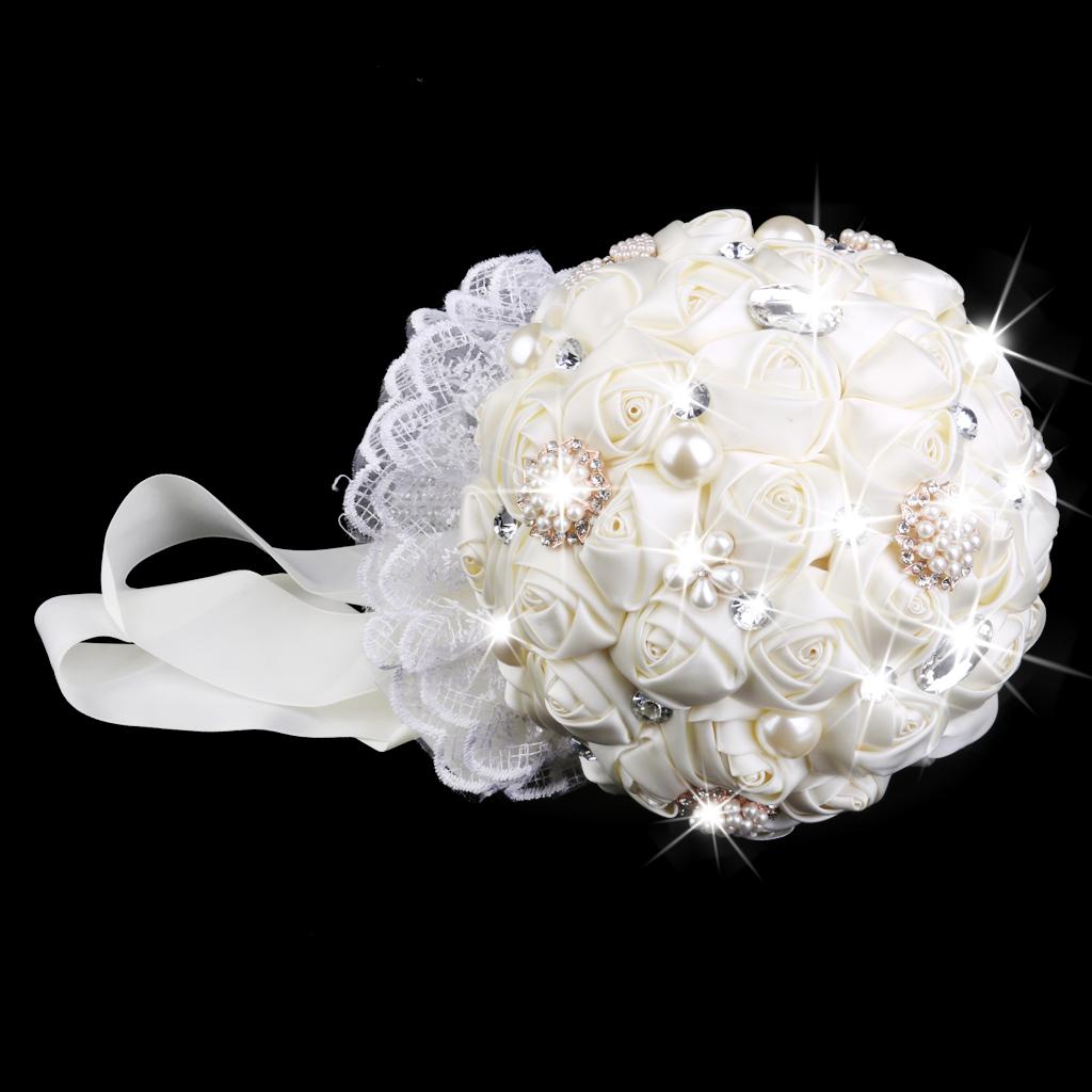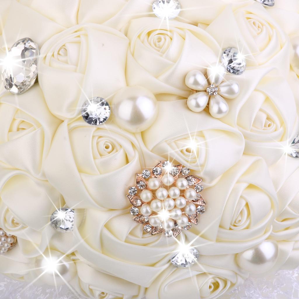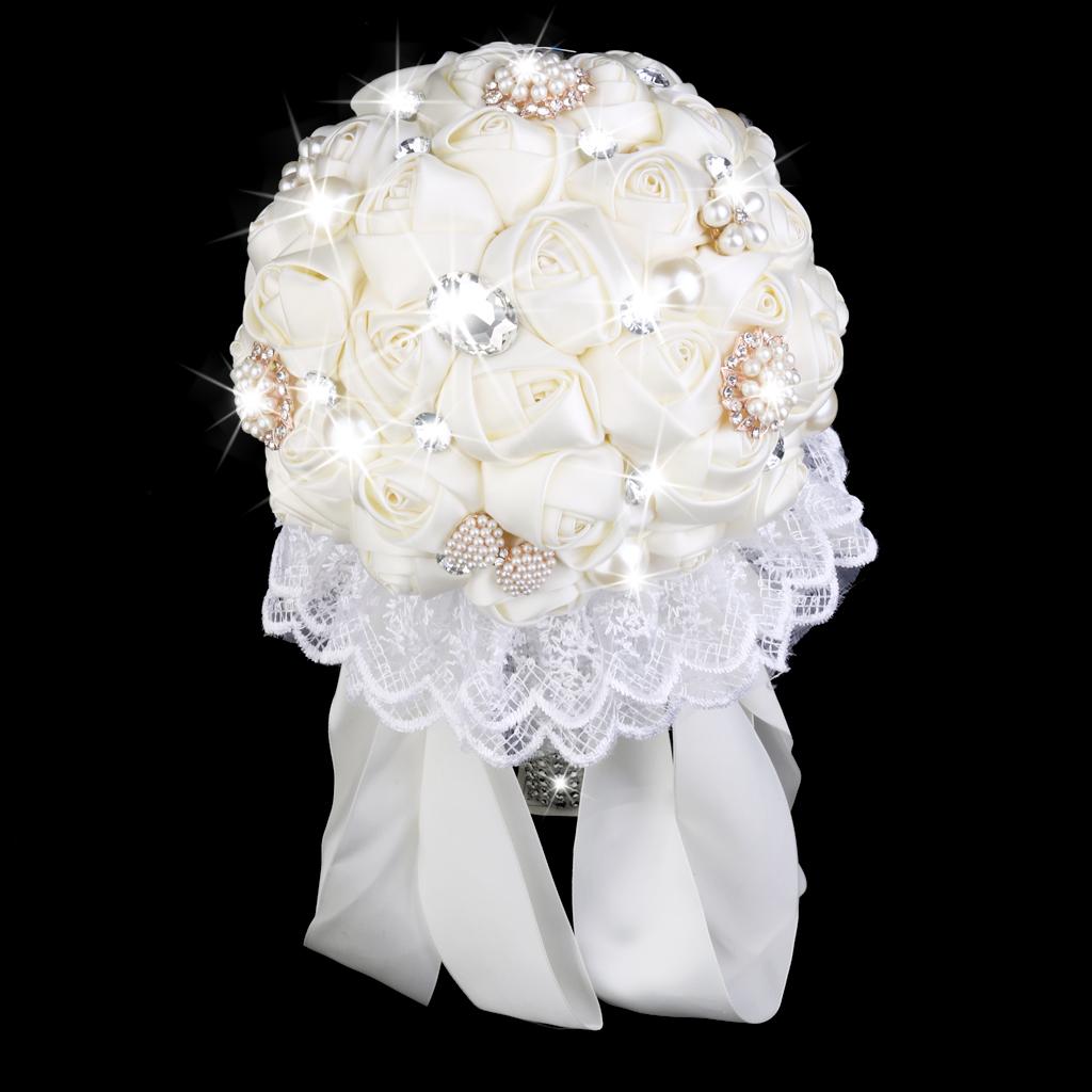 These beautiful wedding bouquets are crafted to the highest quality artificial roses and embellishing shiny rhinestone and faux pearl surrounded by delicate white ribbons and lace.