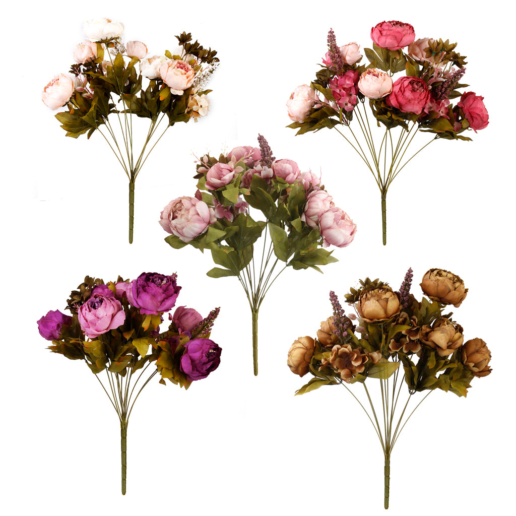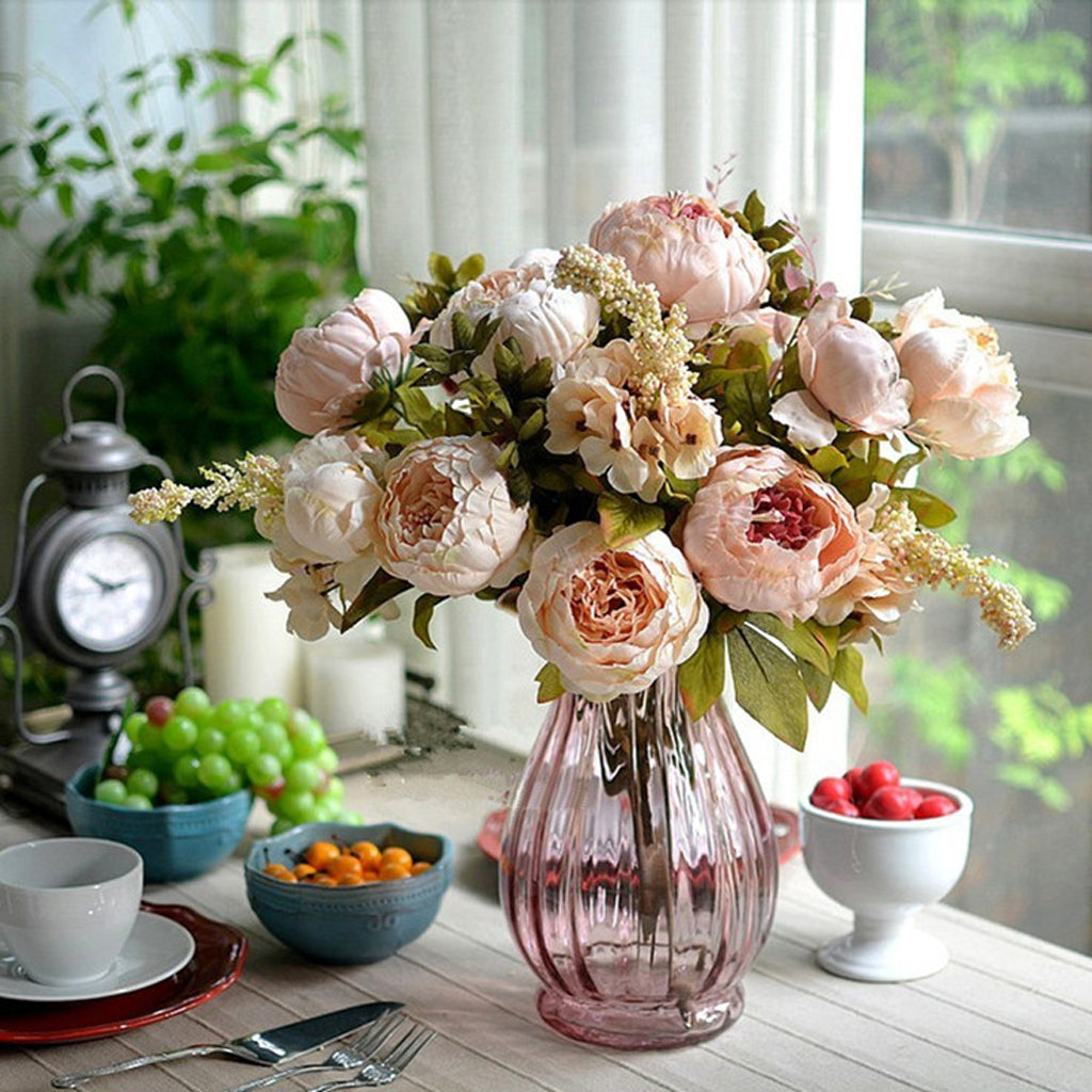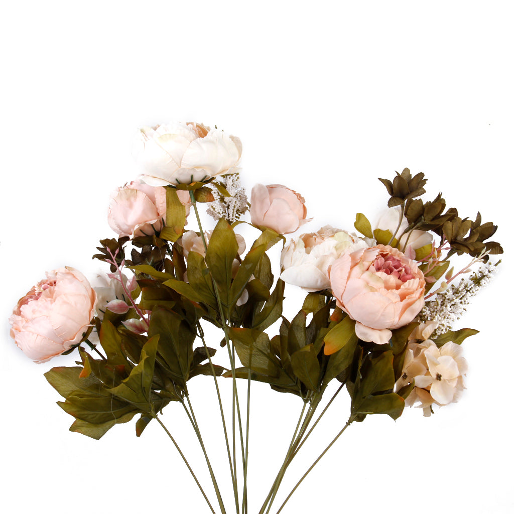 Artificial Light Pink Peony Silk Flower Bouquet Wedding Home Decoration