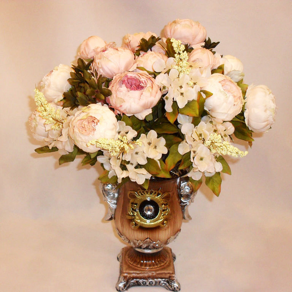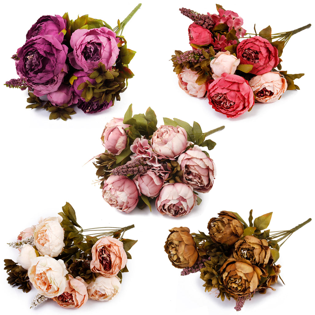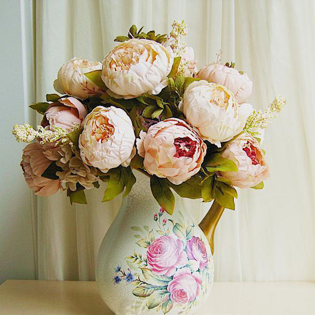 Artificial Light Pink Peony Silk Flower Bouquet Wedding Home Decoration