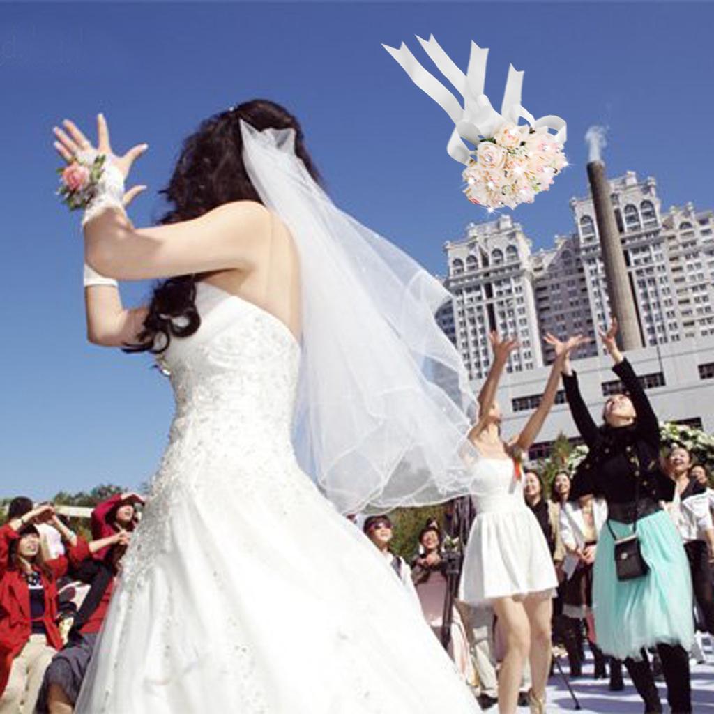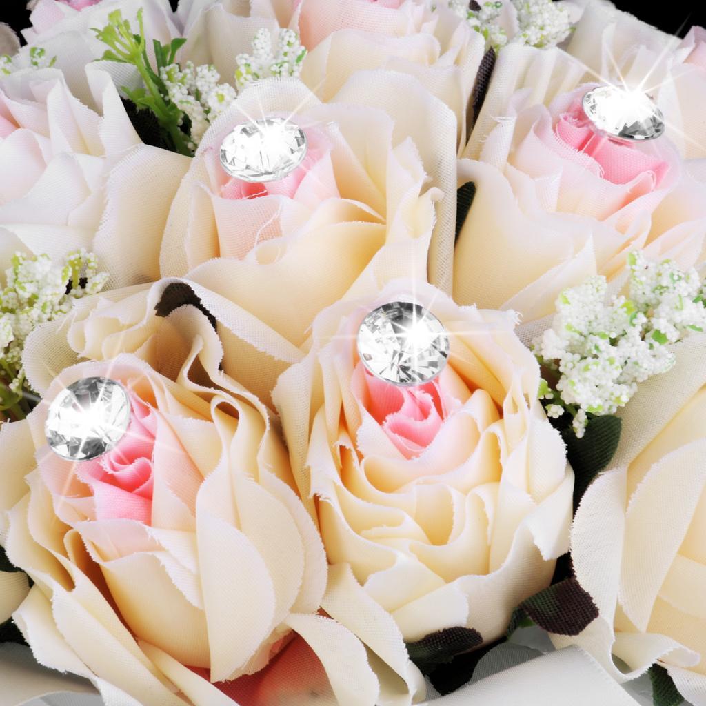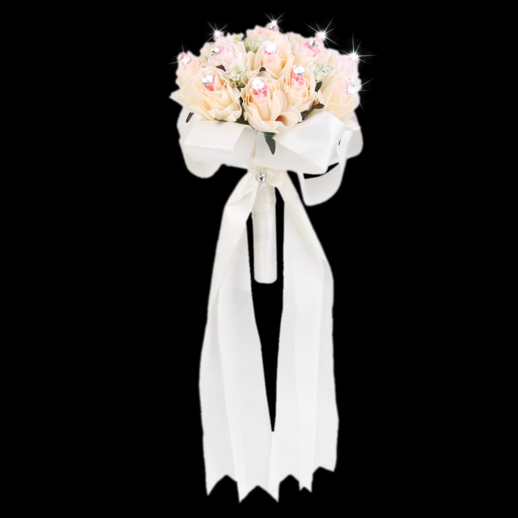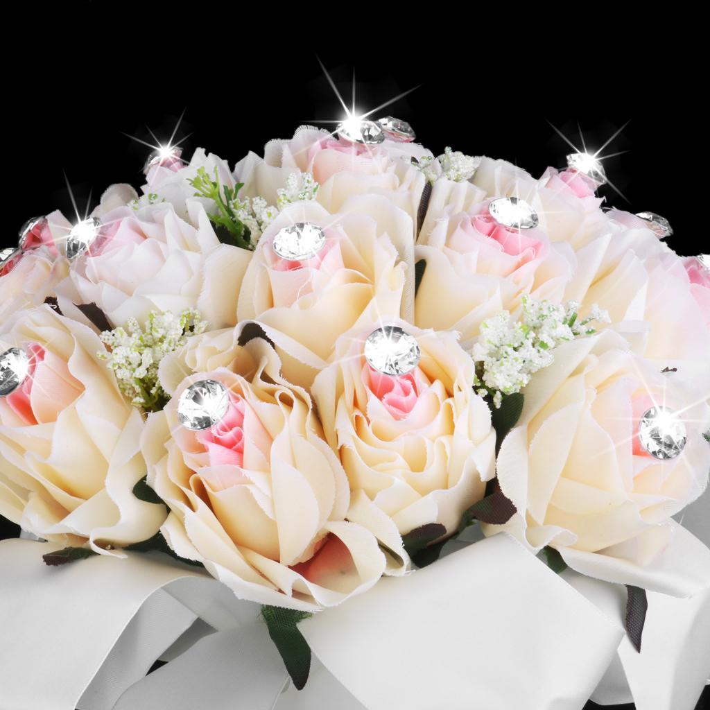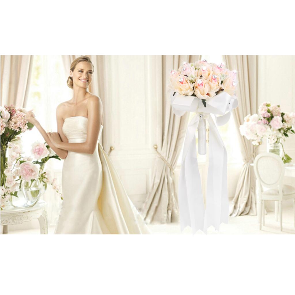 These beautiful wedding bouquets are crafted to the highest quality artificial roses and embellishing shiny rhinestone and beautiful grass surrounded by delicate white ribbons.