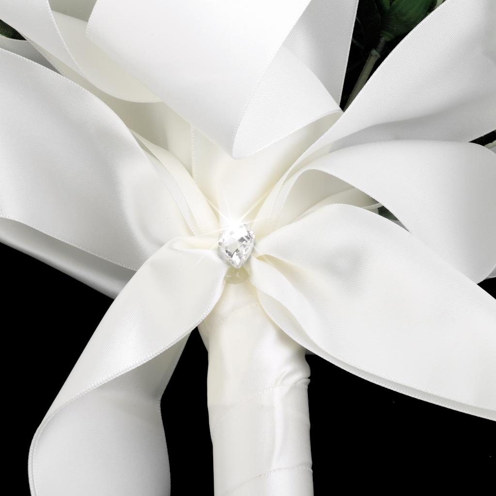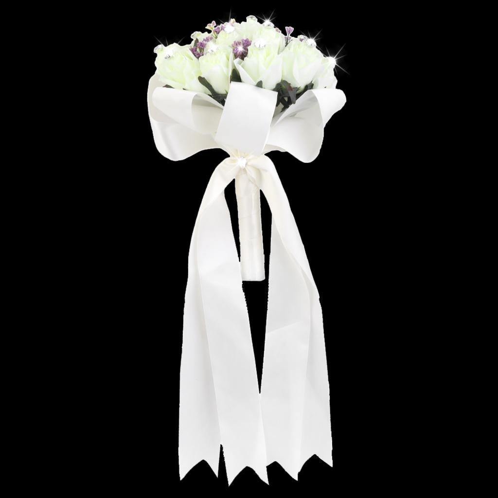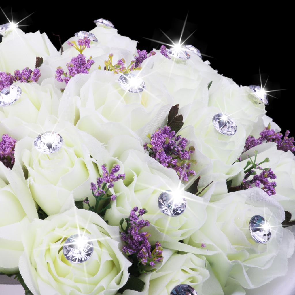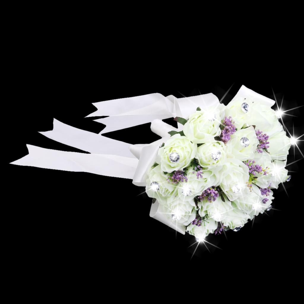 These beautiful wedding bouquets are crafted to the highest quality artificial roses and embellishing shiny rhinestone and purple little flower surrounded by delicate ivory ribbons.
