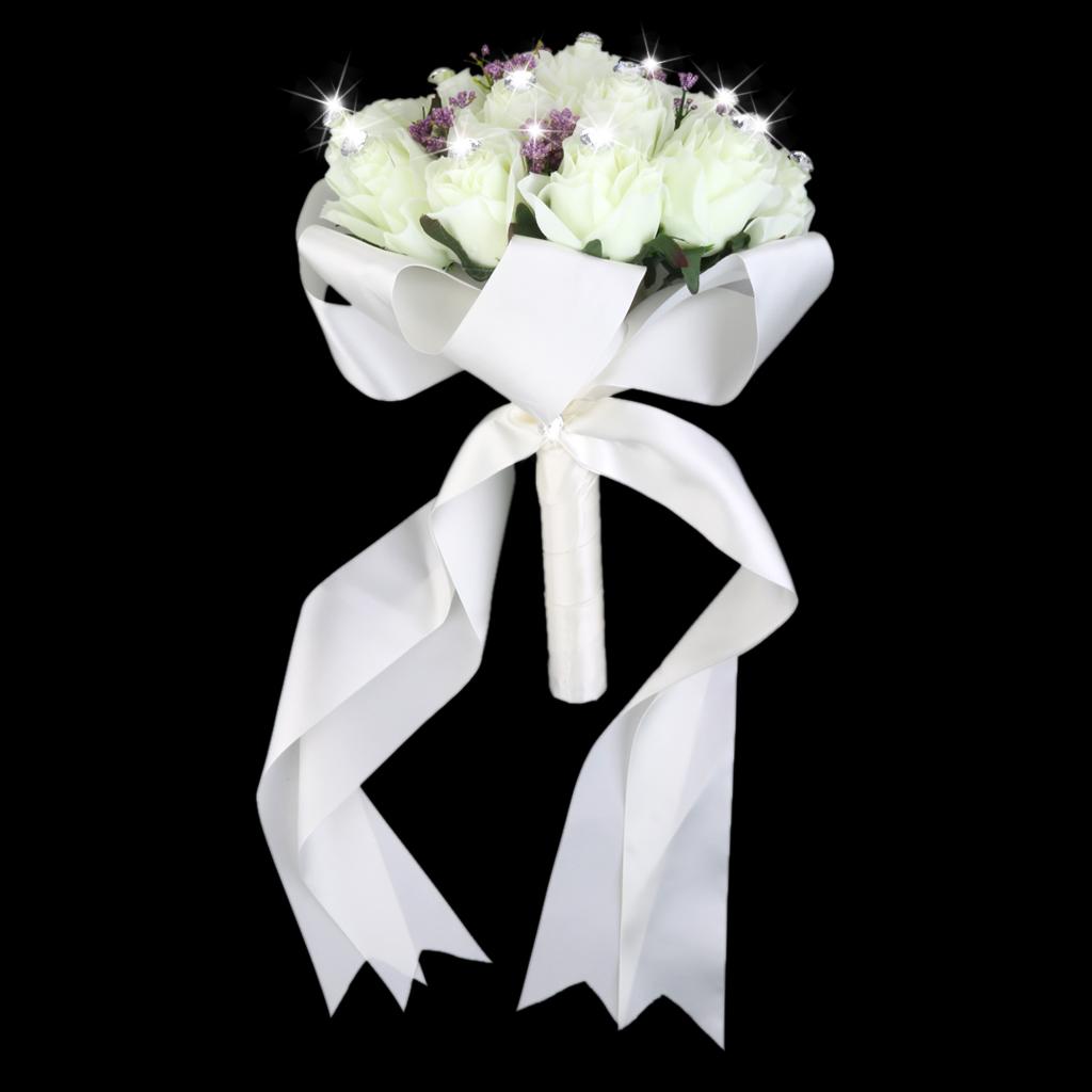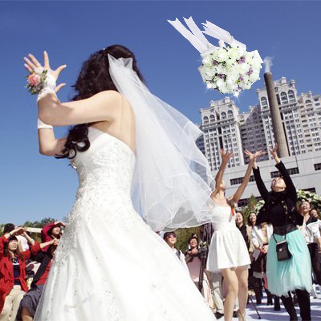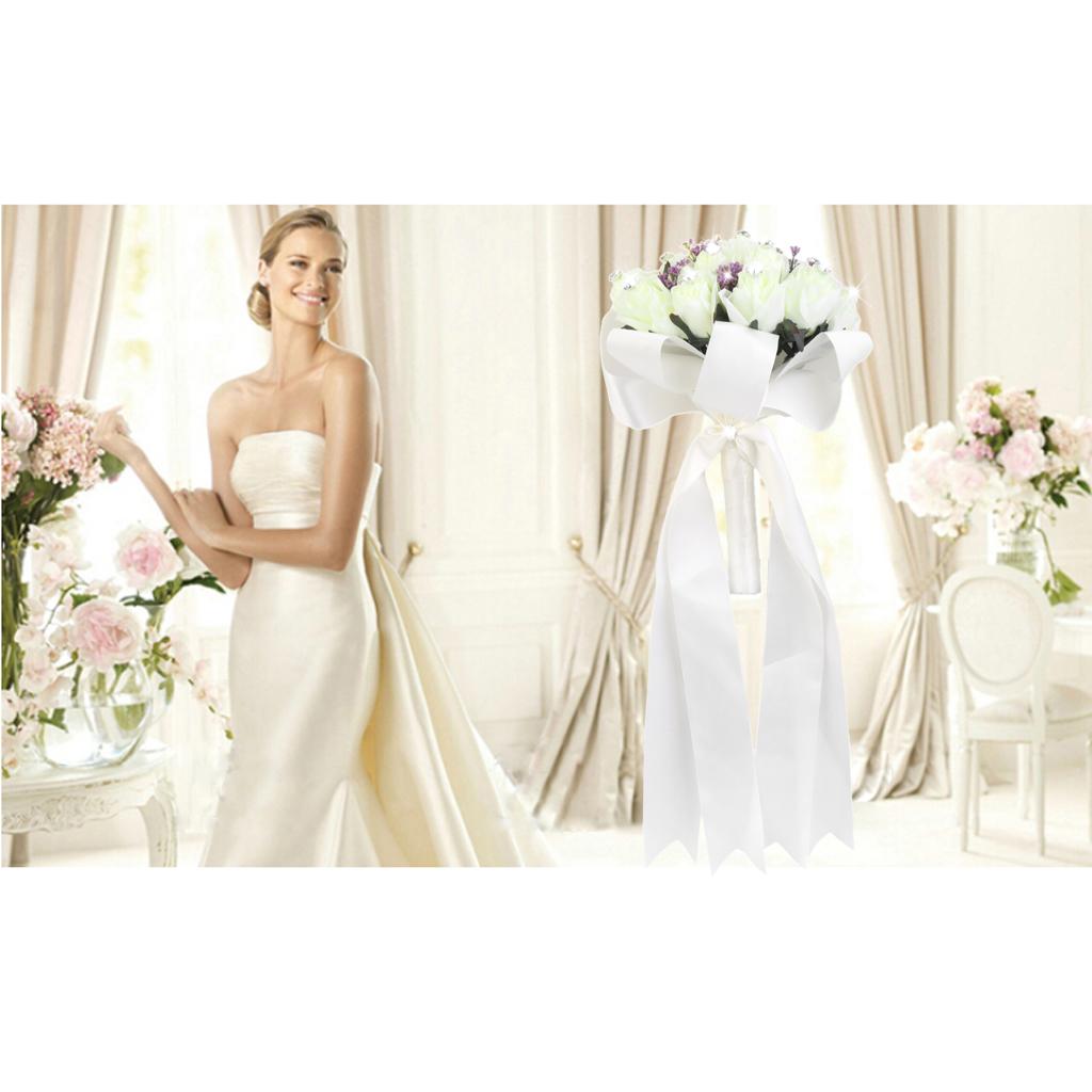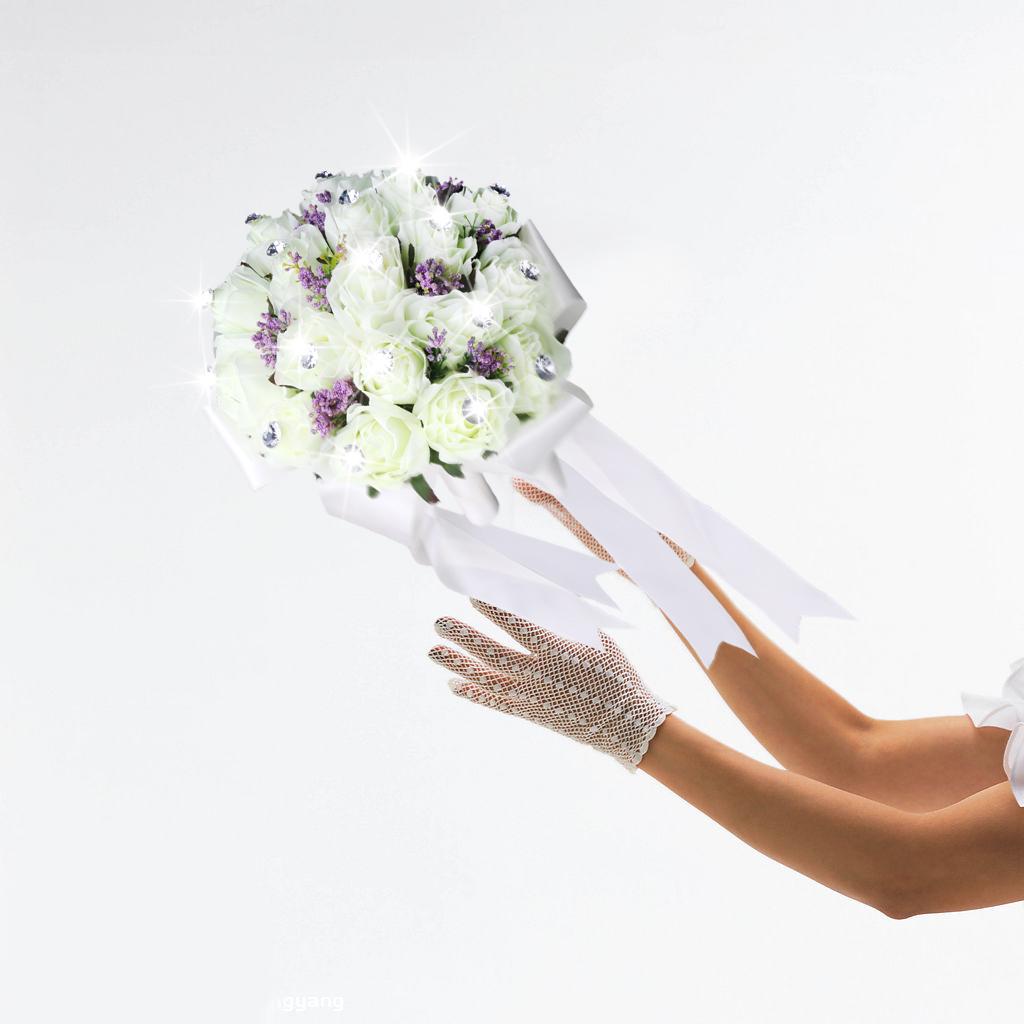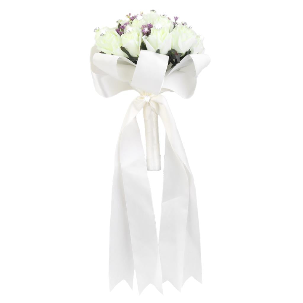 These beautiful wedding bouquets are crafted to the highest quality artificial roses and embellishing shiny rhinestone and purple little flower surrounded by delicate ivory ribbons.
