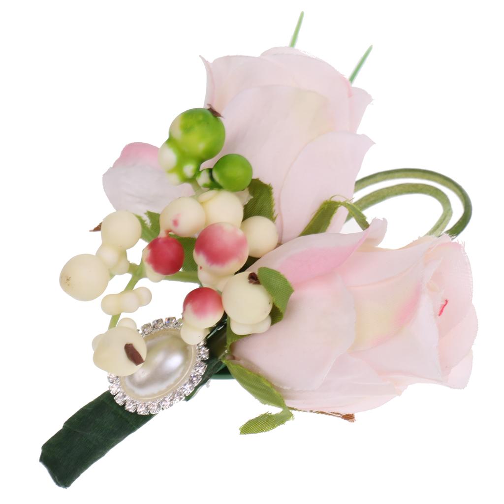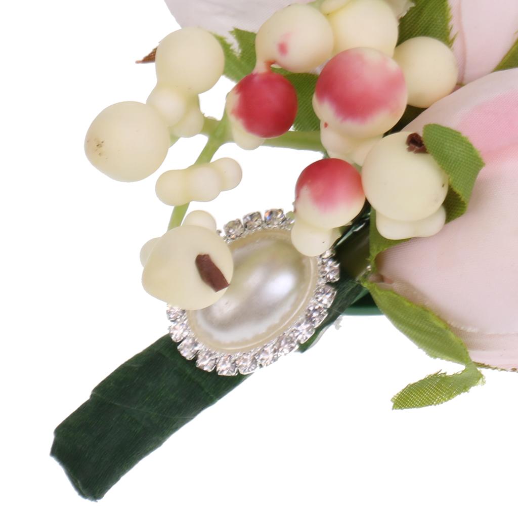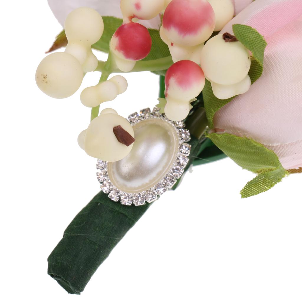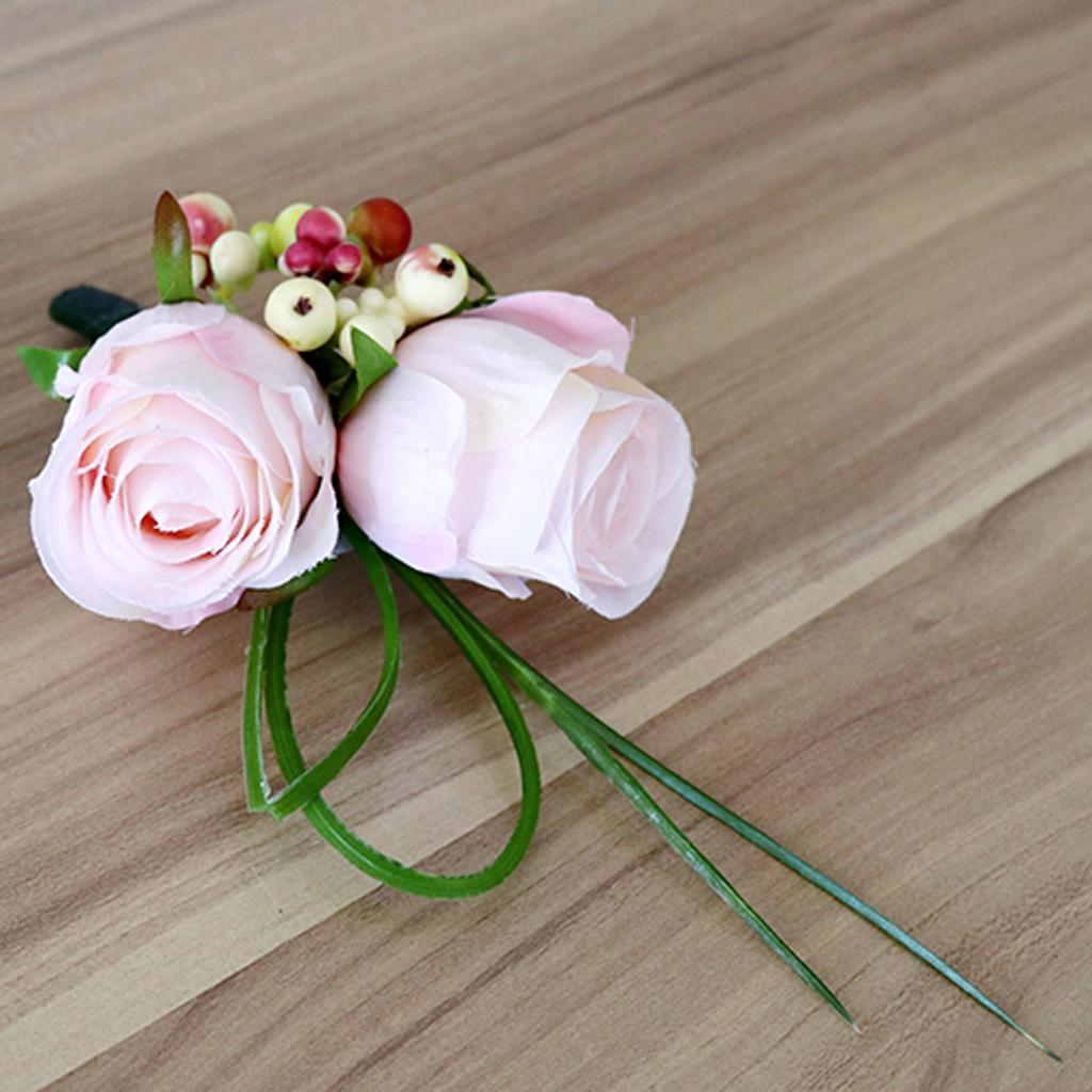 Artificial Rose Boutonniere Corsage Bride Groom Wedding Party Supplies Pink