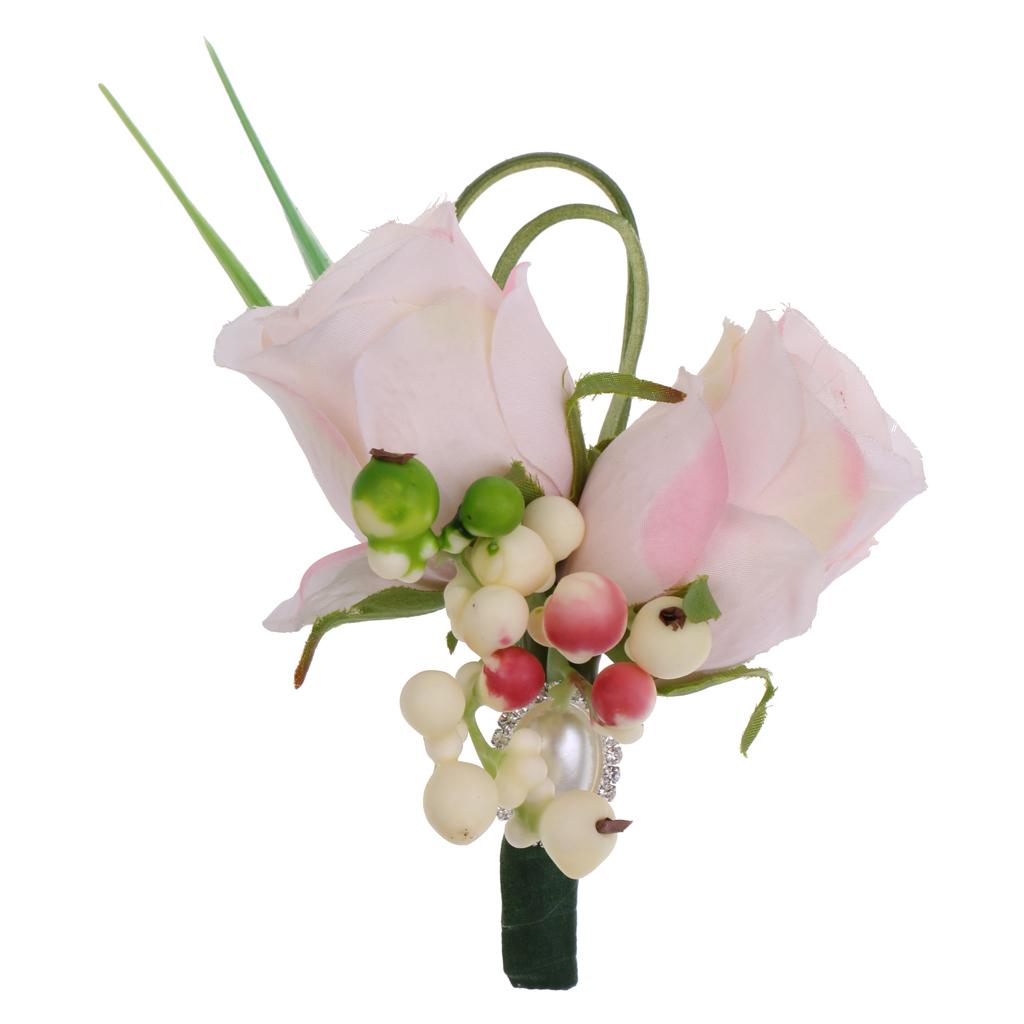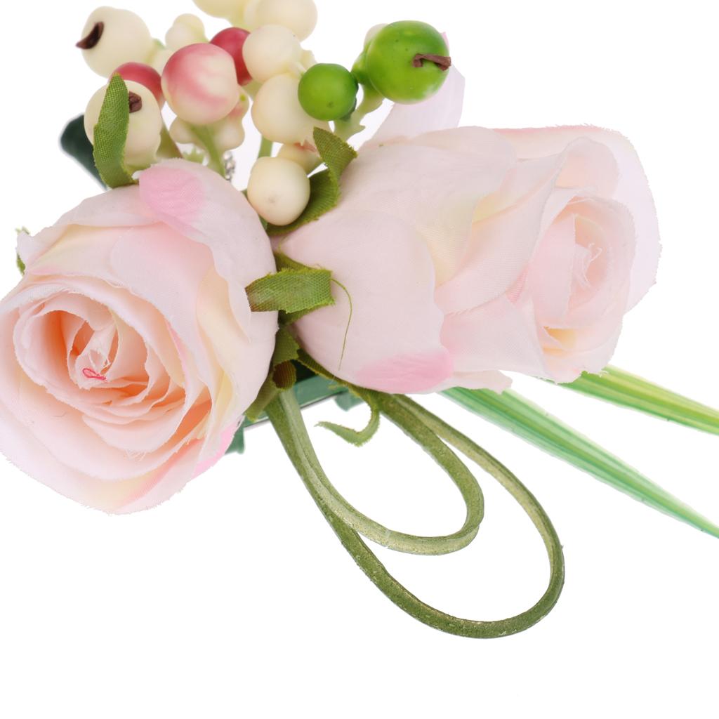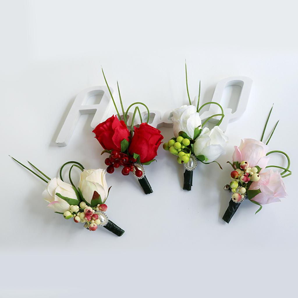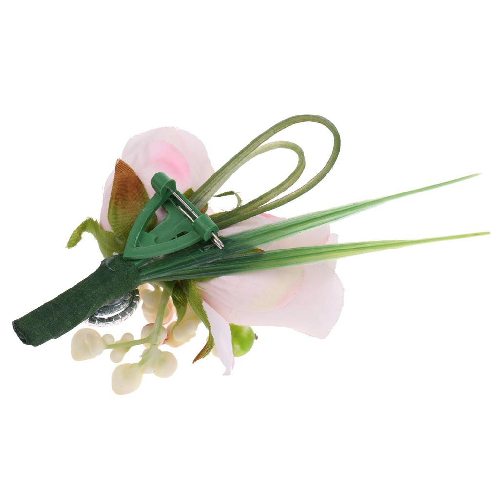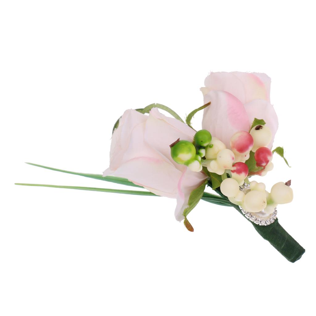 Artificial Rose Boutonniere Corsage Bride Groom Wedding Party Supplies Pink