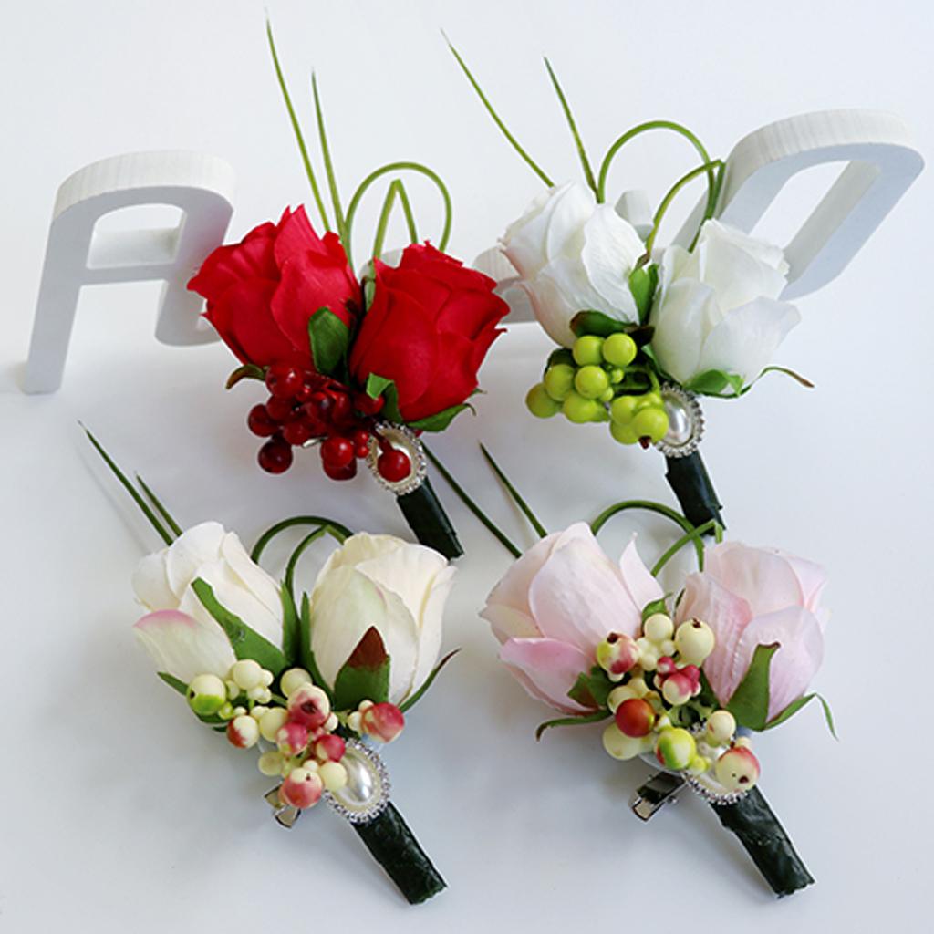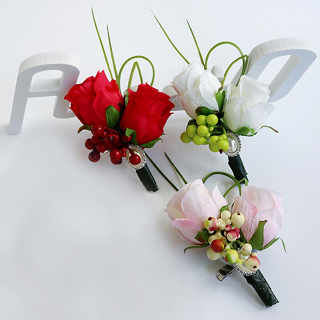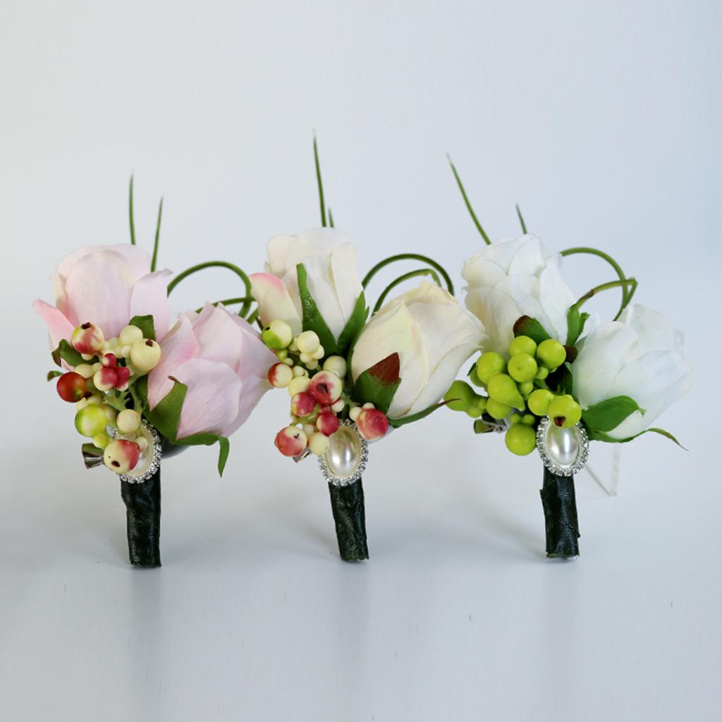 Elegant artificial rose corsage can be added to match your wedding theme.