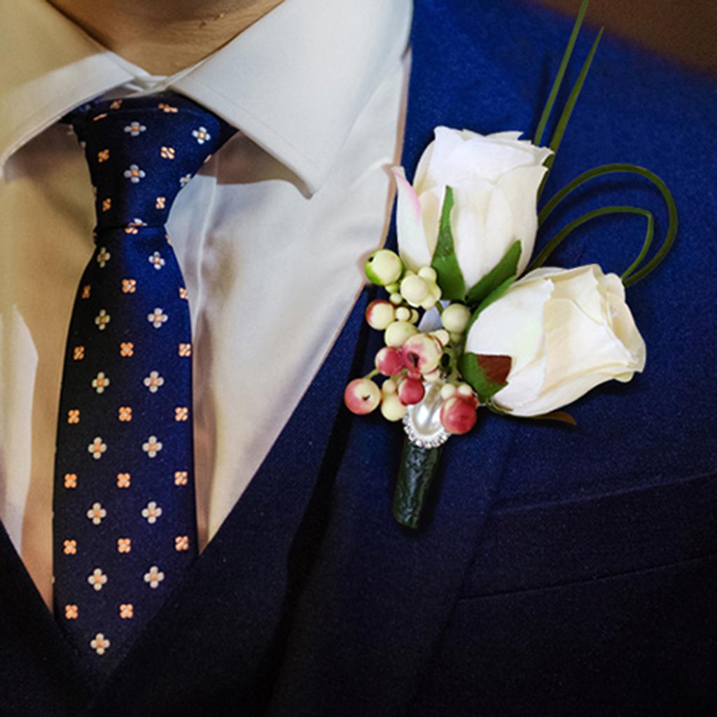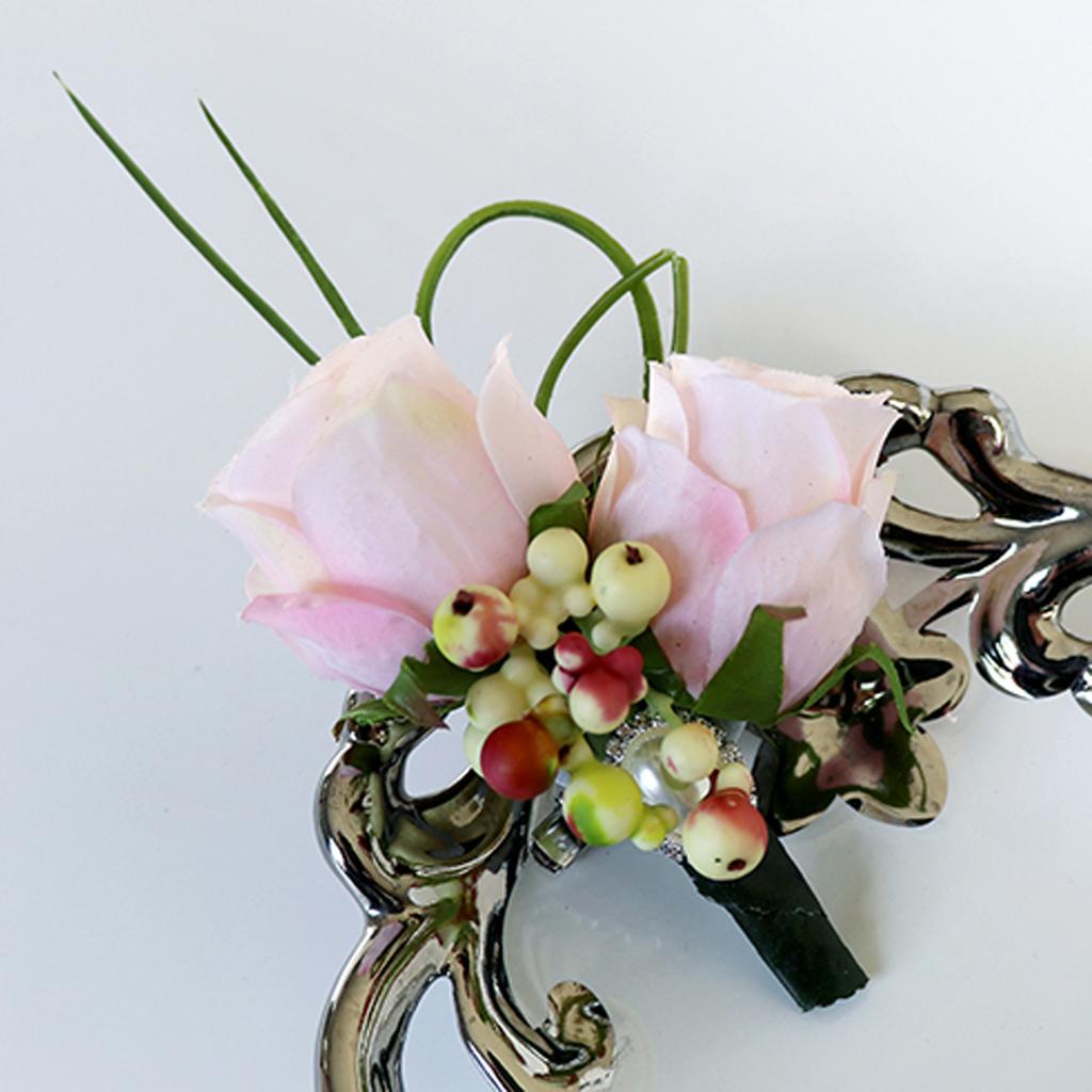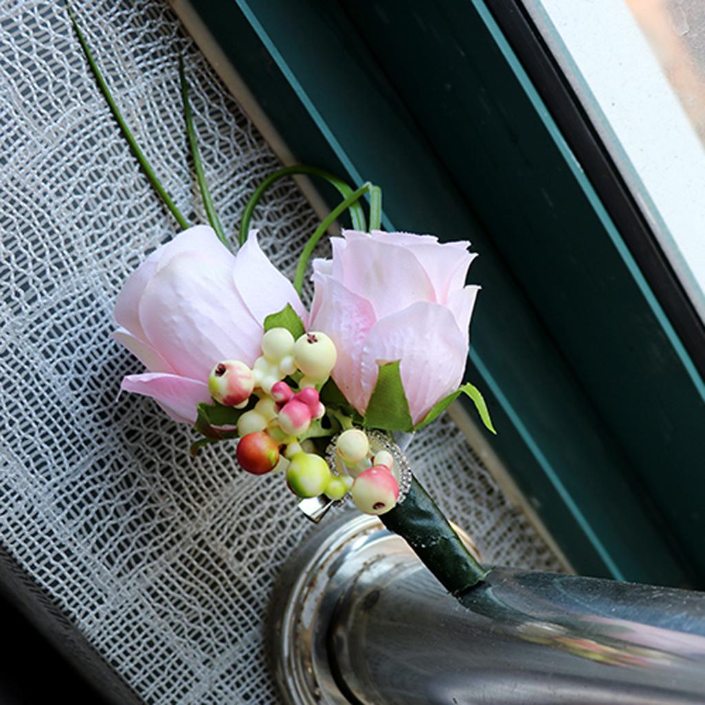 Elegant artificial rose corsage can be added to match your wedding theme.