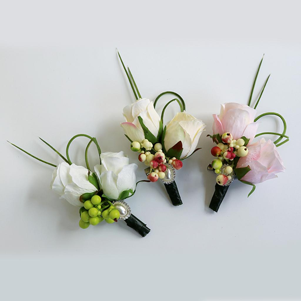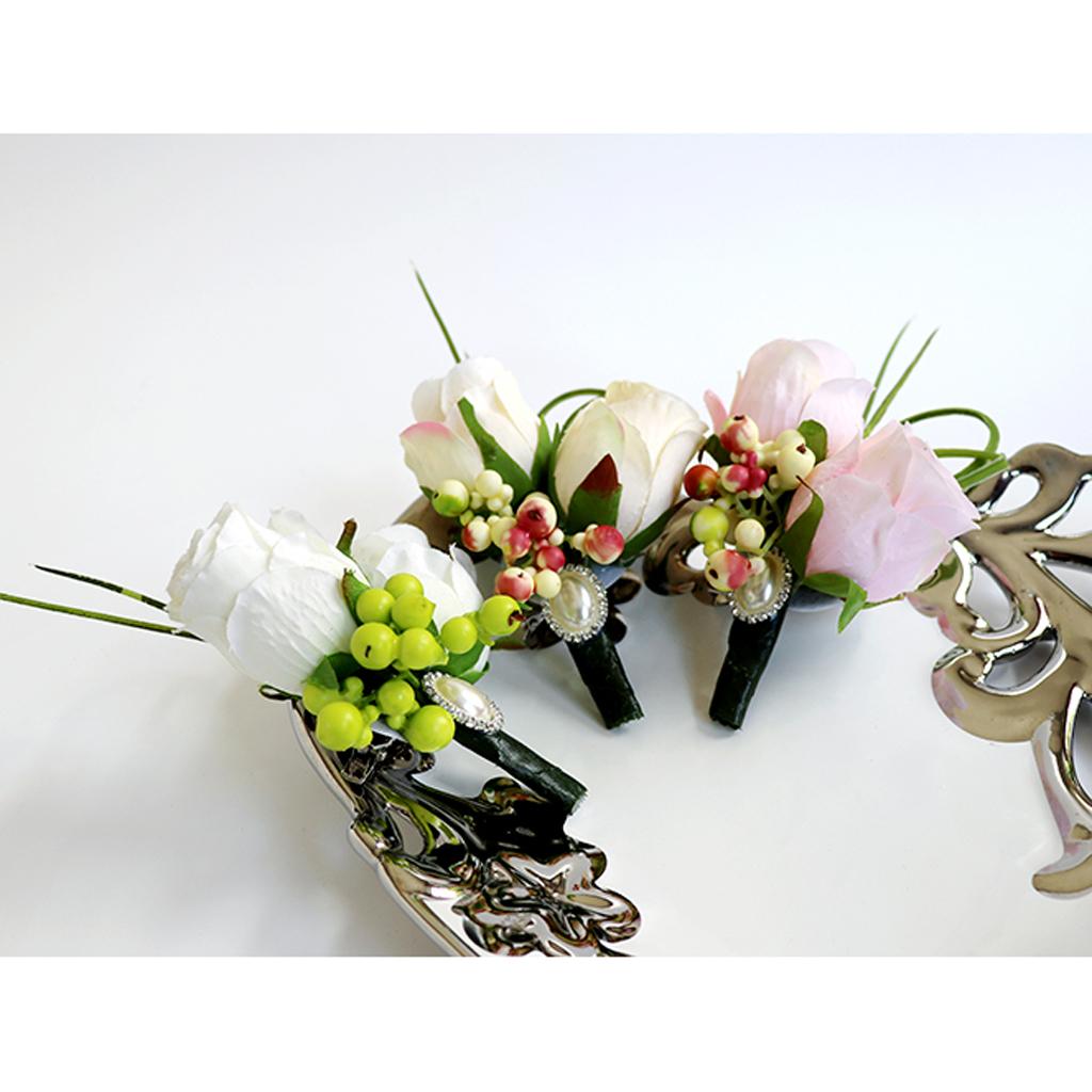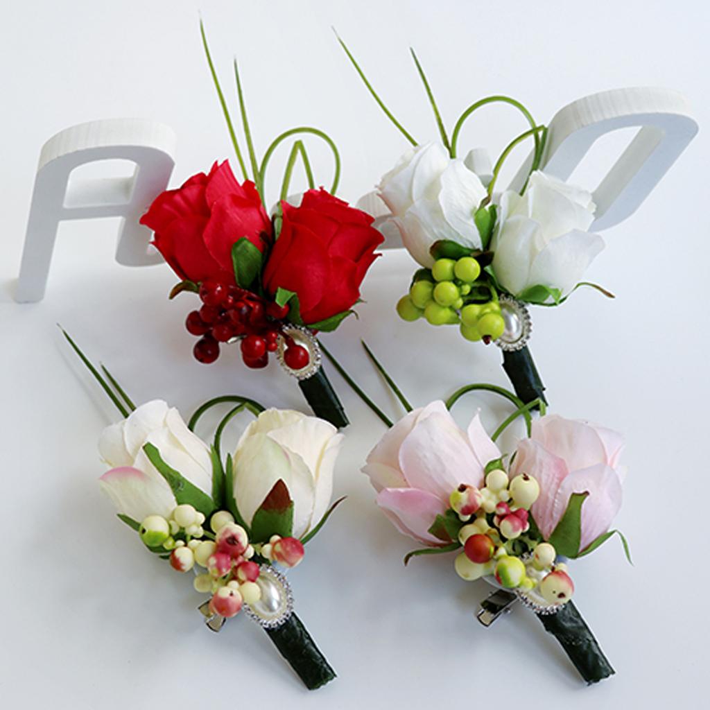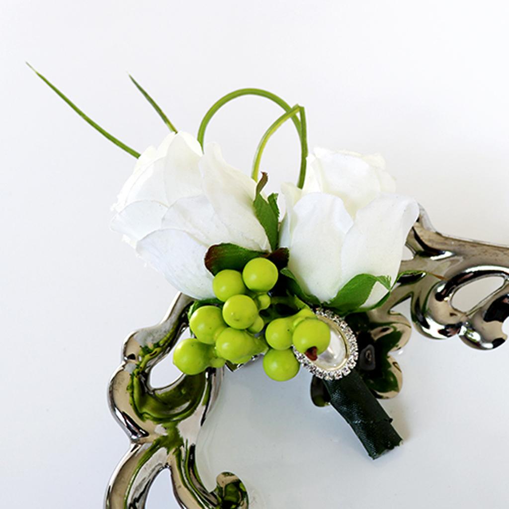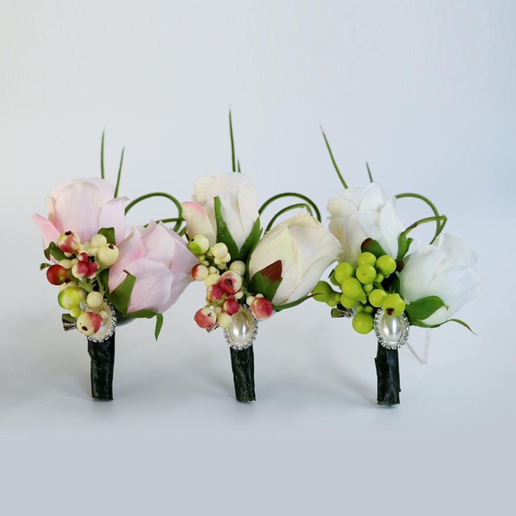 Elegant artificial rose corsage can be added to match your wedding theme.