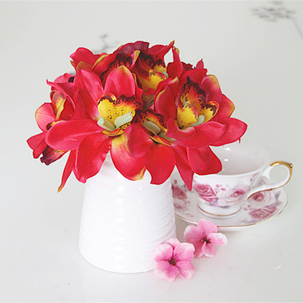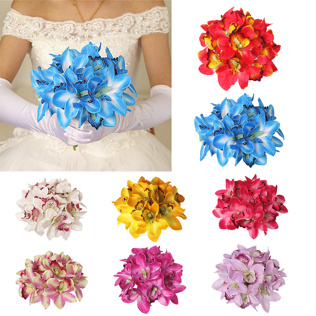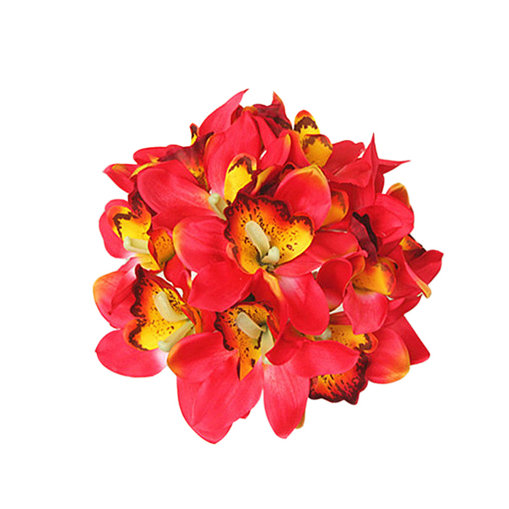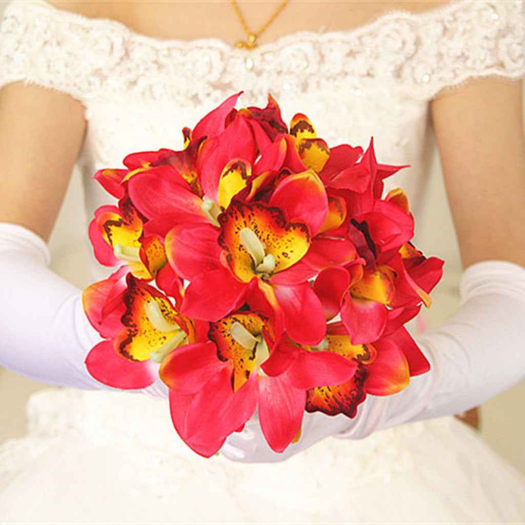 Artificial Silk Butterfly Orchid Bridal Bridesmaid Flower Girl Bouquet Red