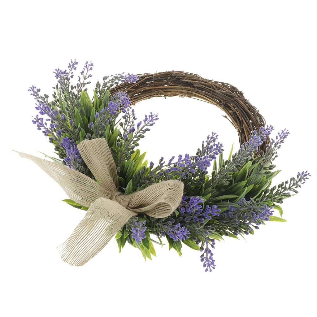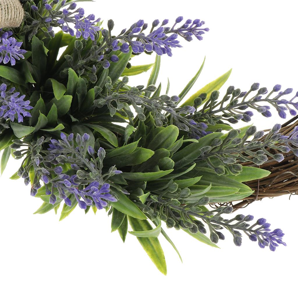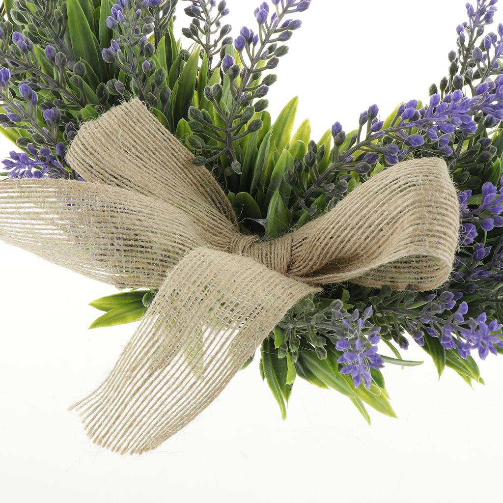 Rustic artificial simulation lavender wreath, vivid natural, embellished with jute bow.