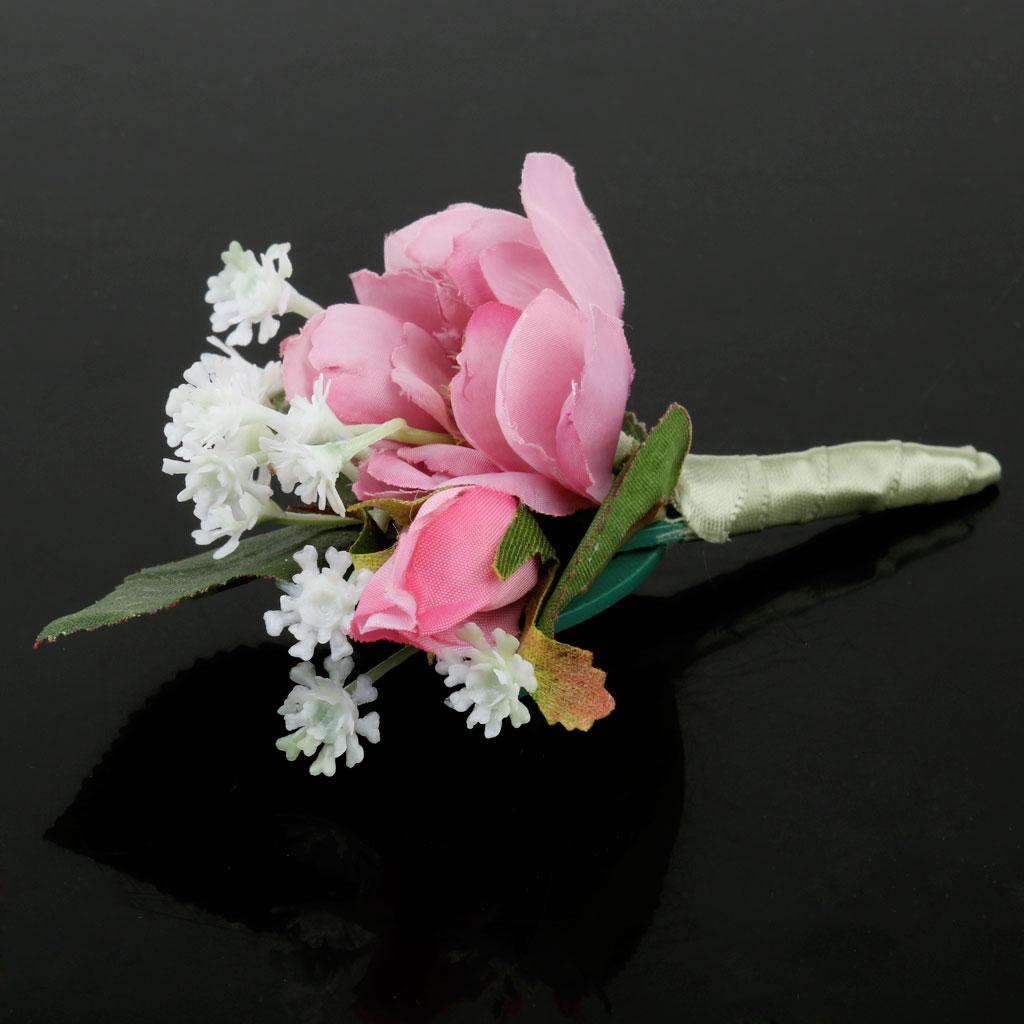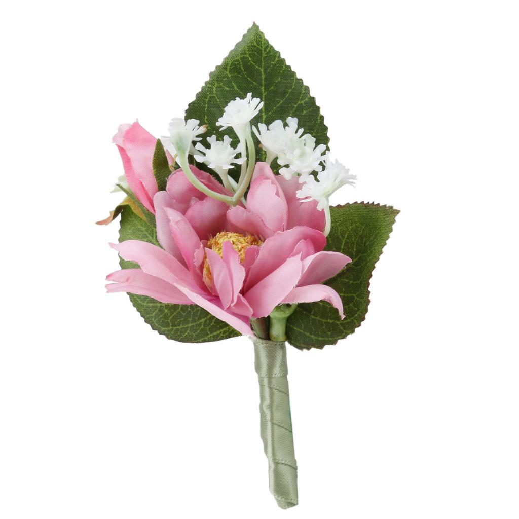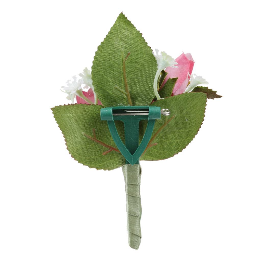 Artificial Wedding Bridal Groom Corsage Flower Brooch Pin Dark Pink