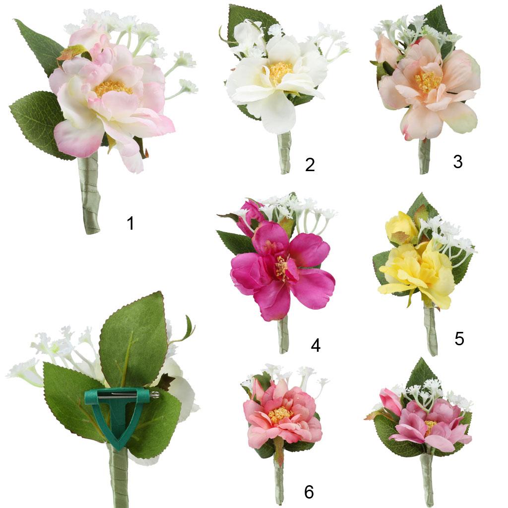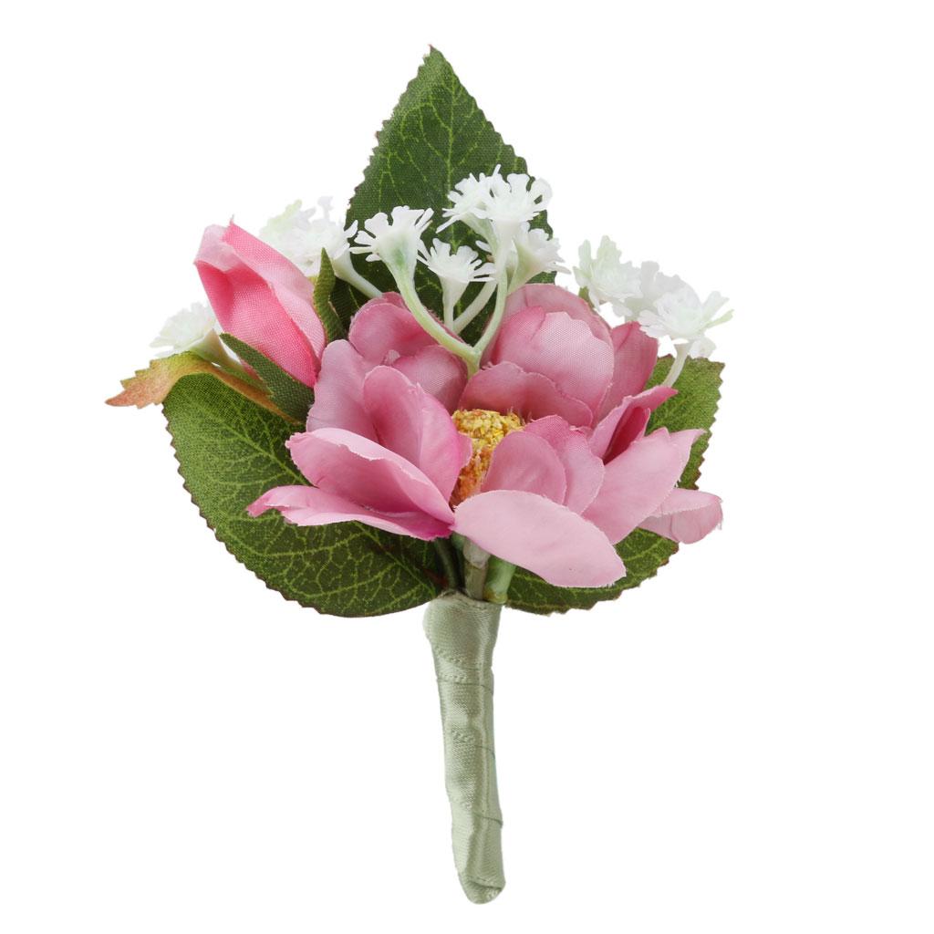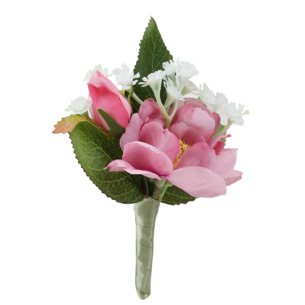 Artificial Wedding Bridal Groom Corsage Flower Brooch Pin Dark Pink