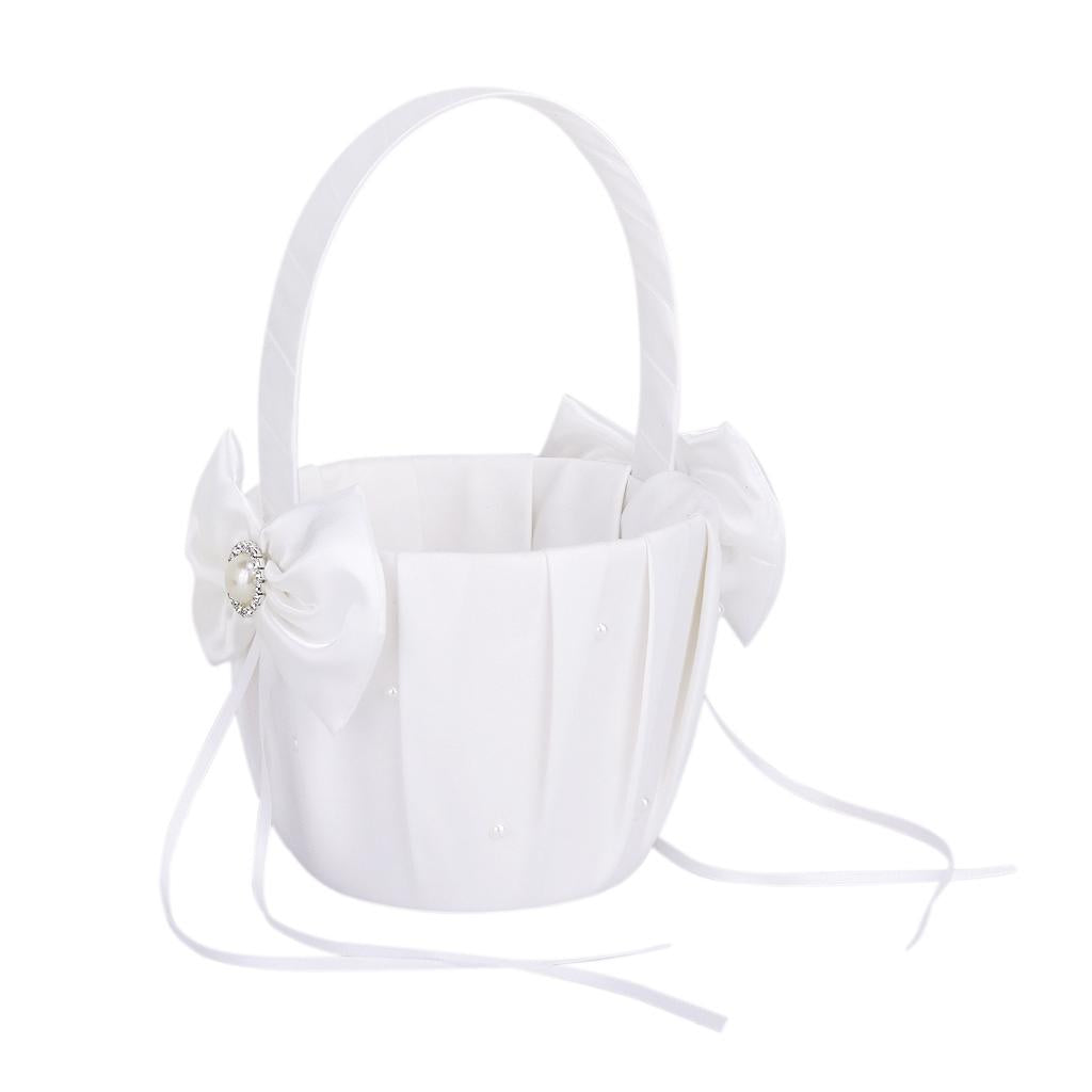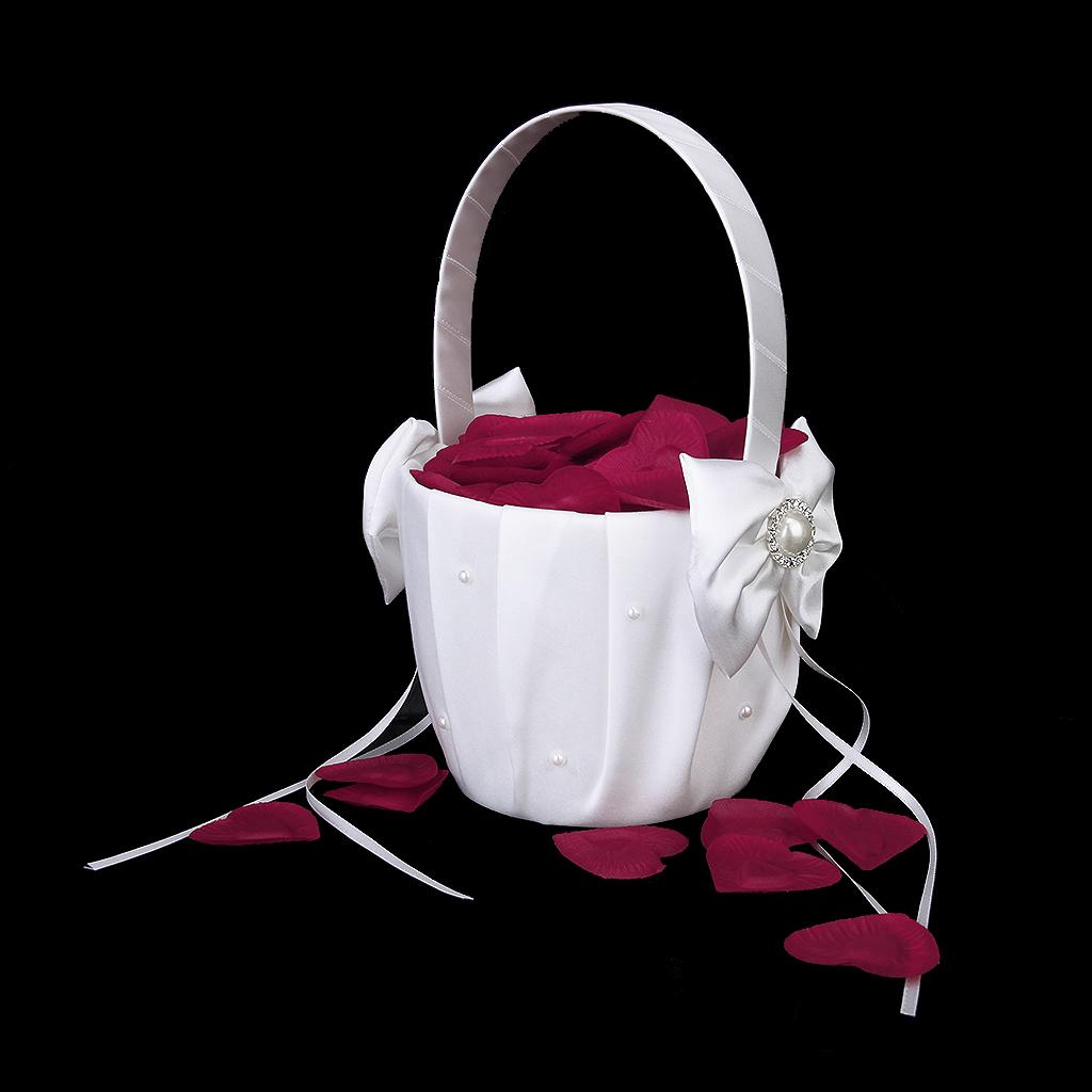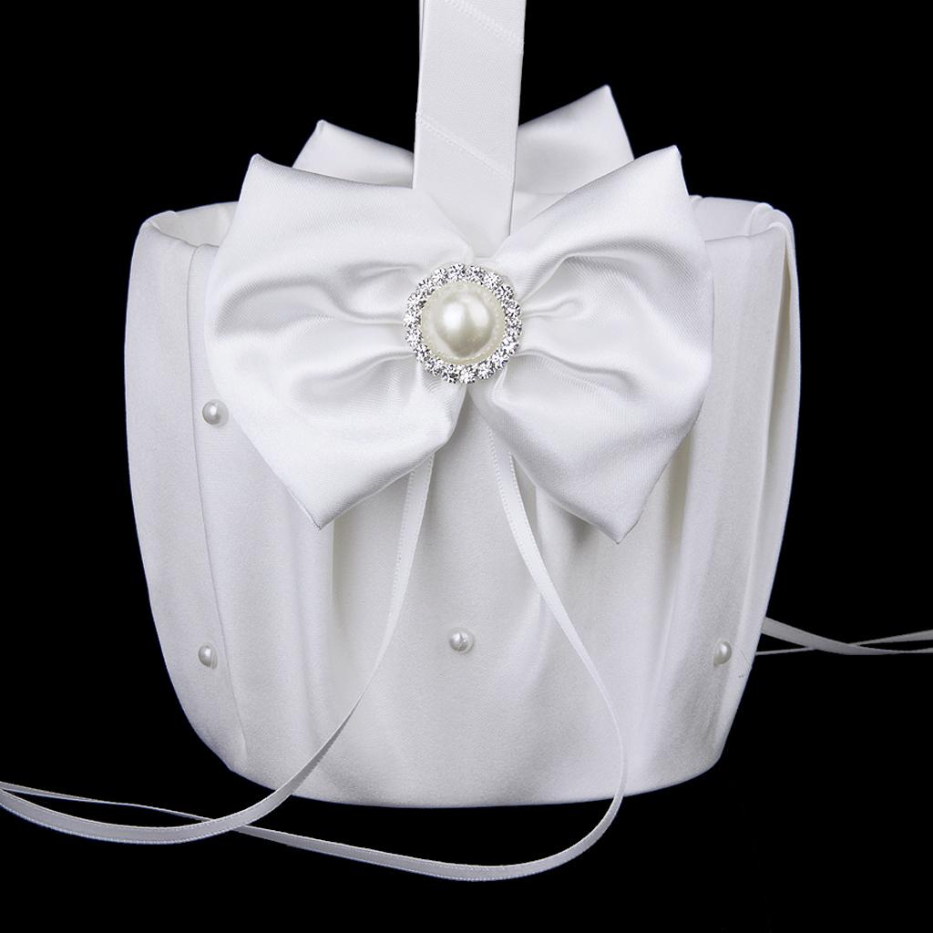 • Beige flowergirl basket with diamante and faux pearl embellishment