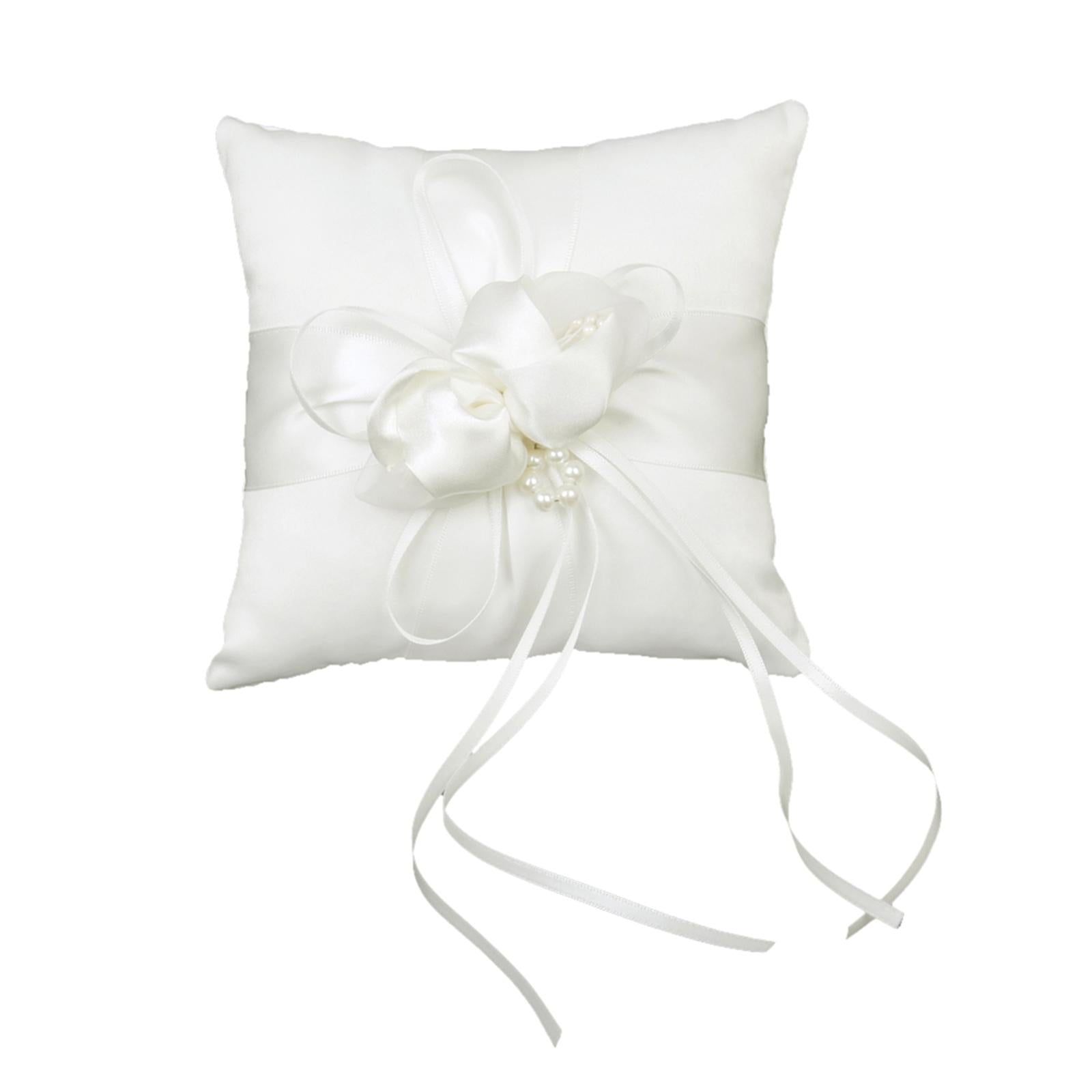 • Beige ring pillow decorated with satin ribbon and bud flower buckle to tie the ring