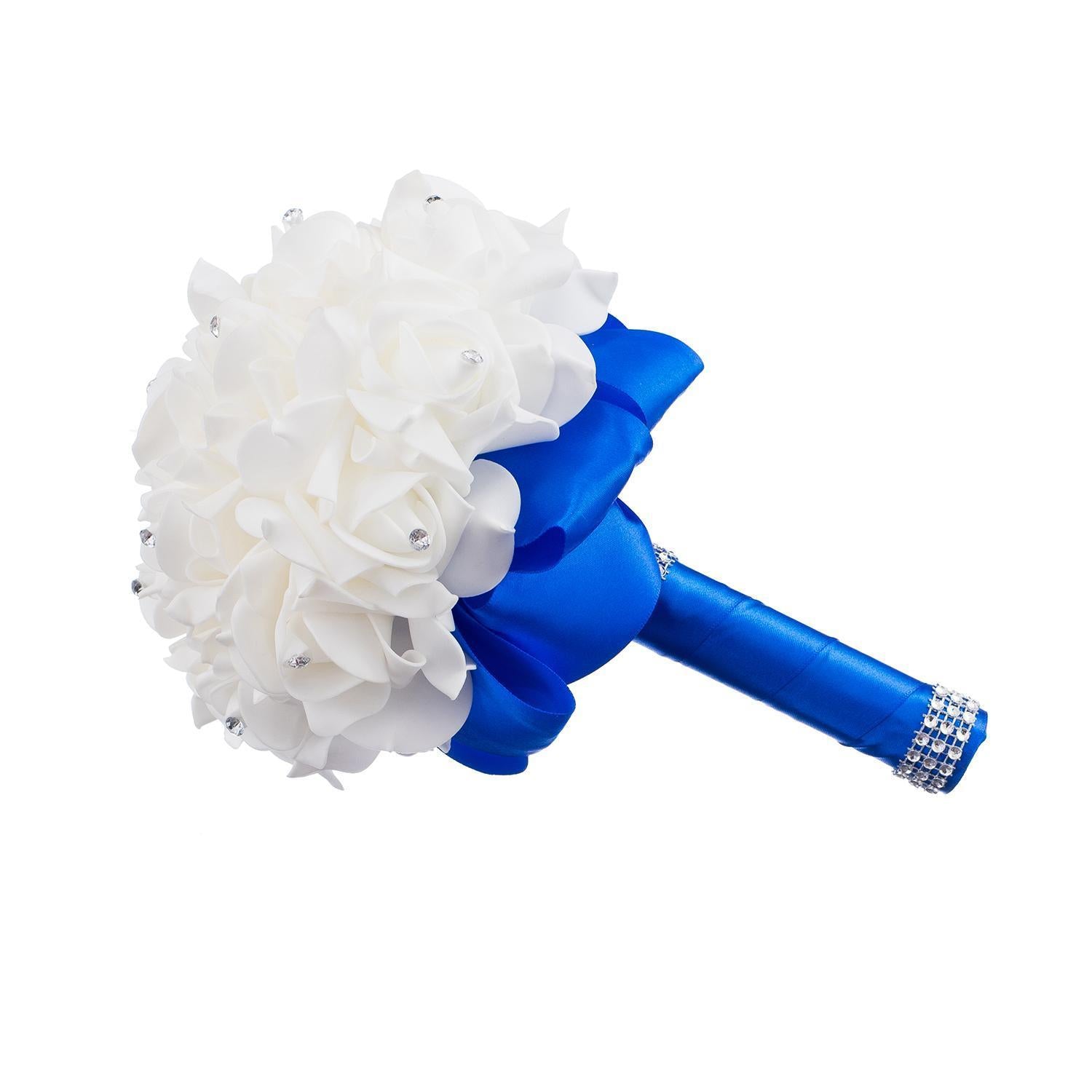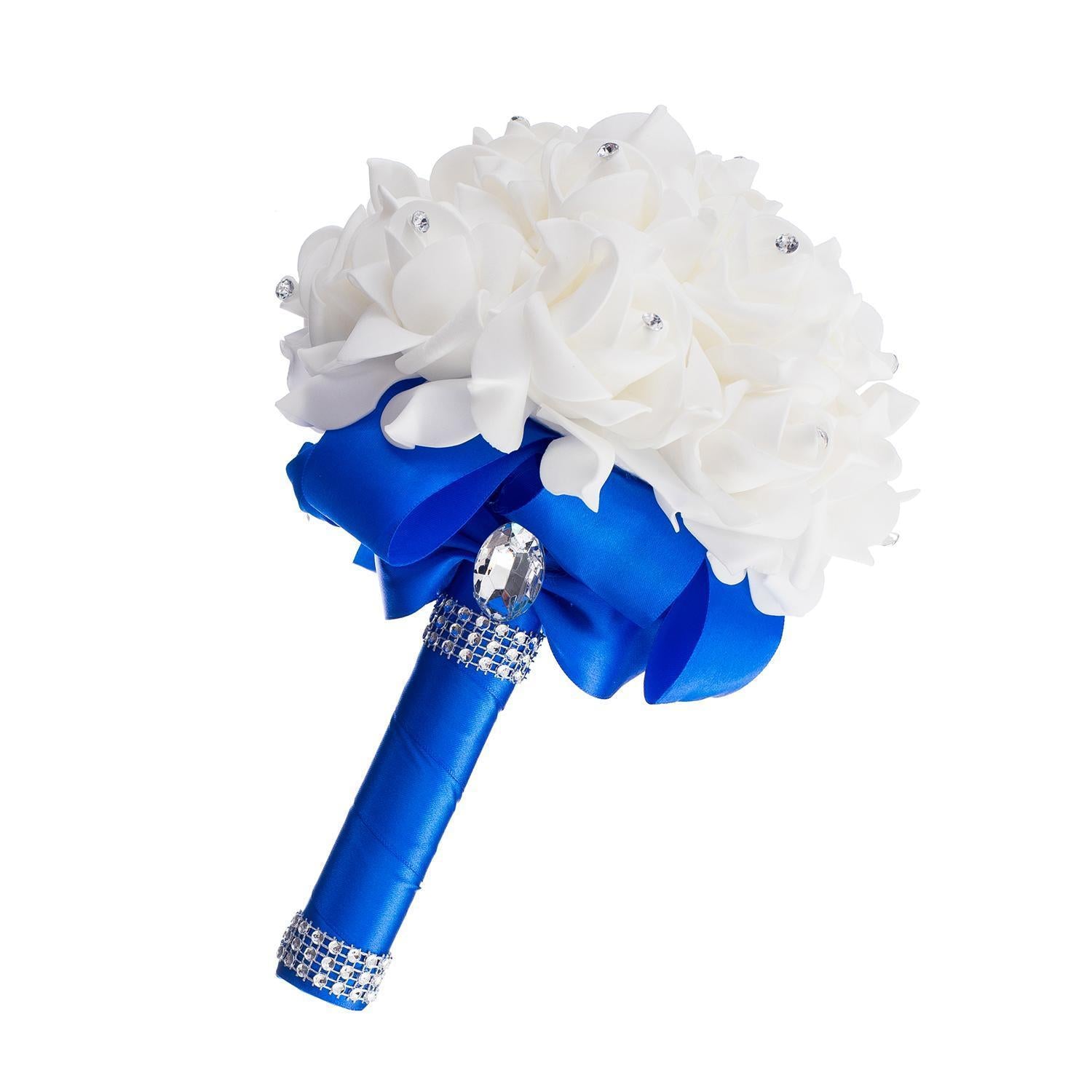Bridal Bouquet Rose Foam Crystal Wedding Bridesmaid Flower Blue Satin