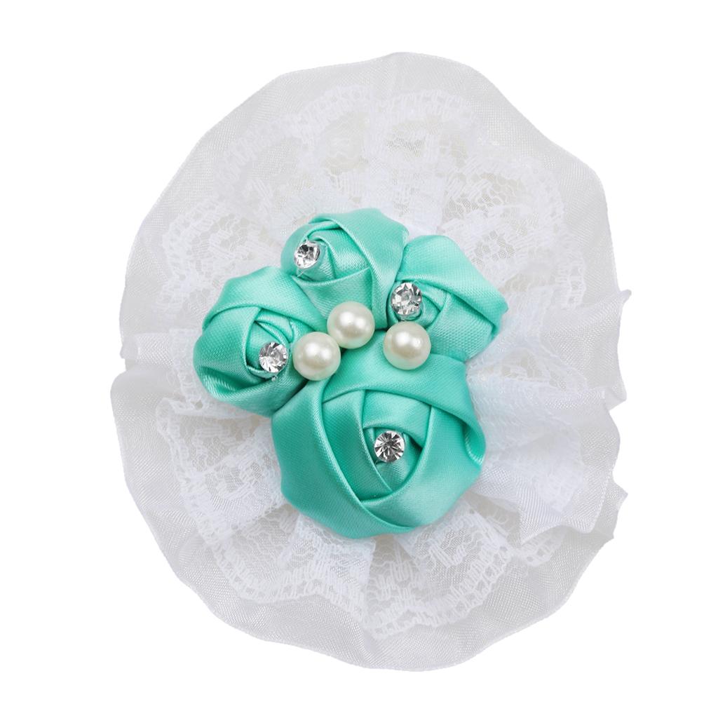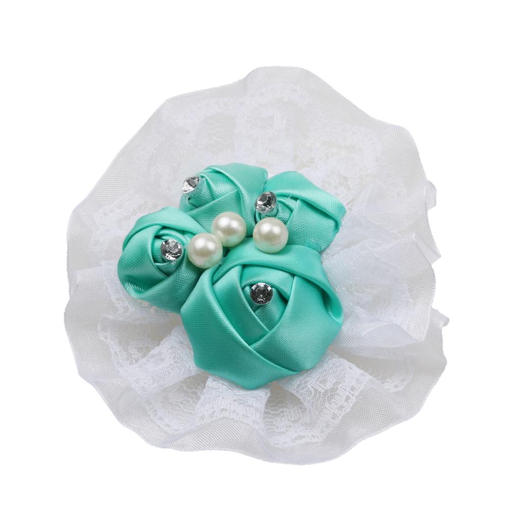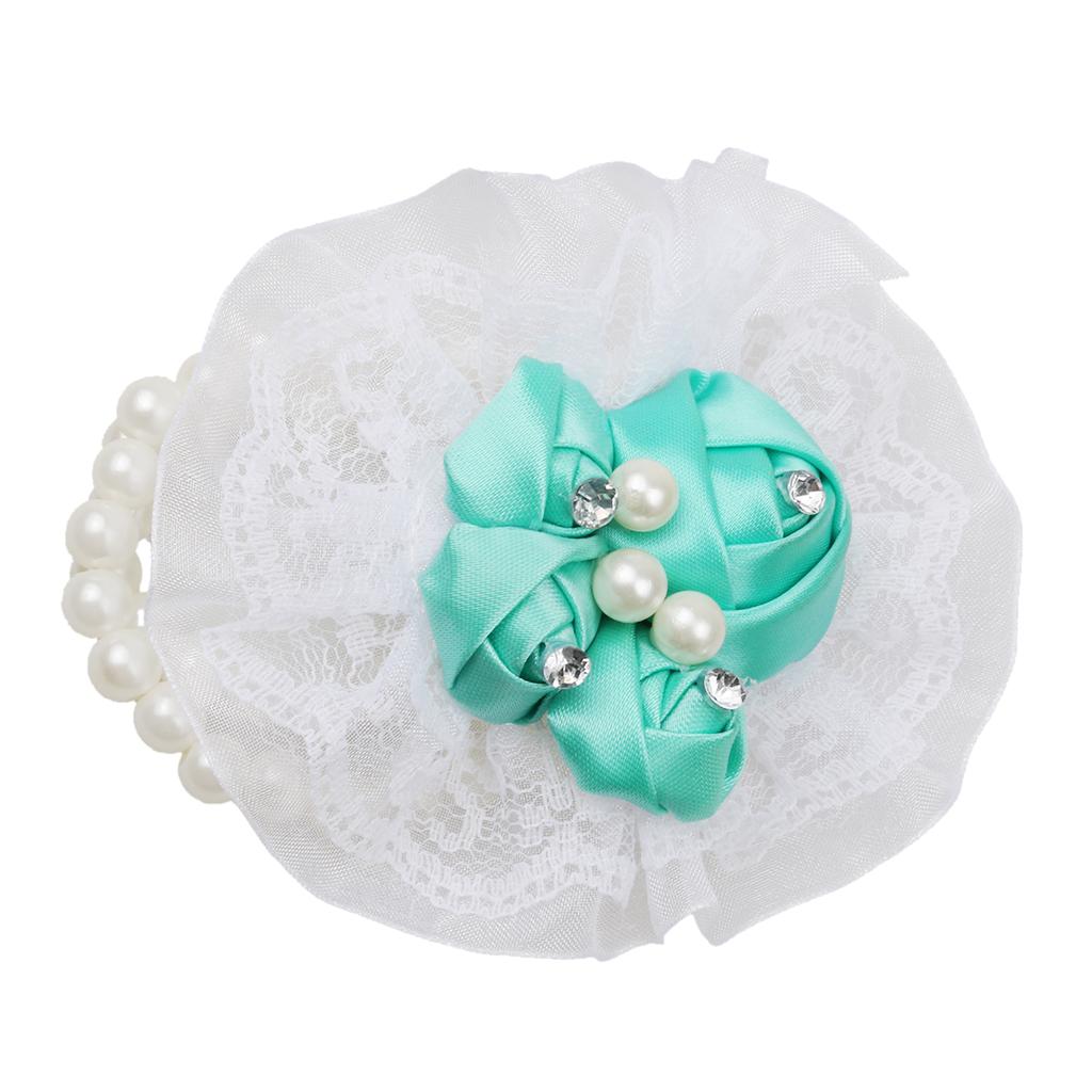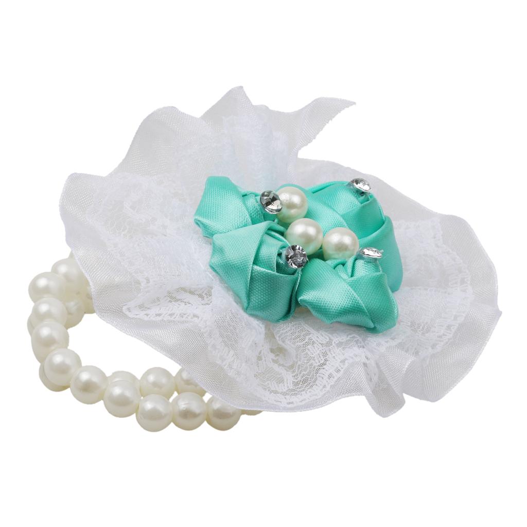 Bridal Prom Party Wrist Corsage Pearl Lace Bracelet Hand Flower Green