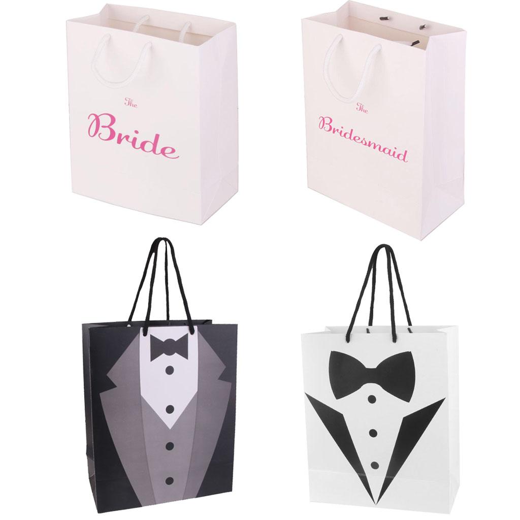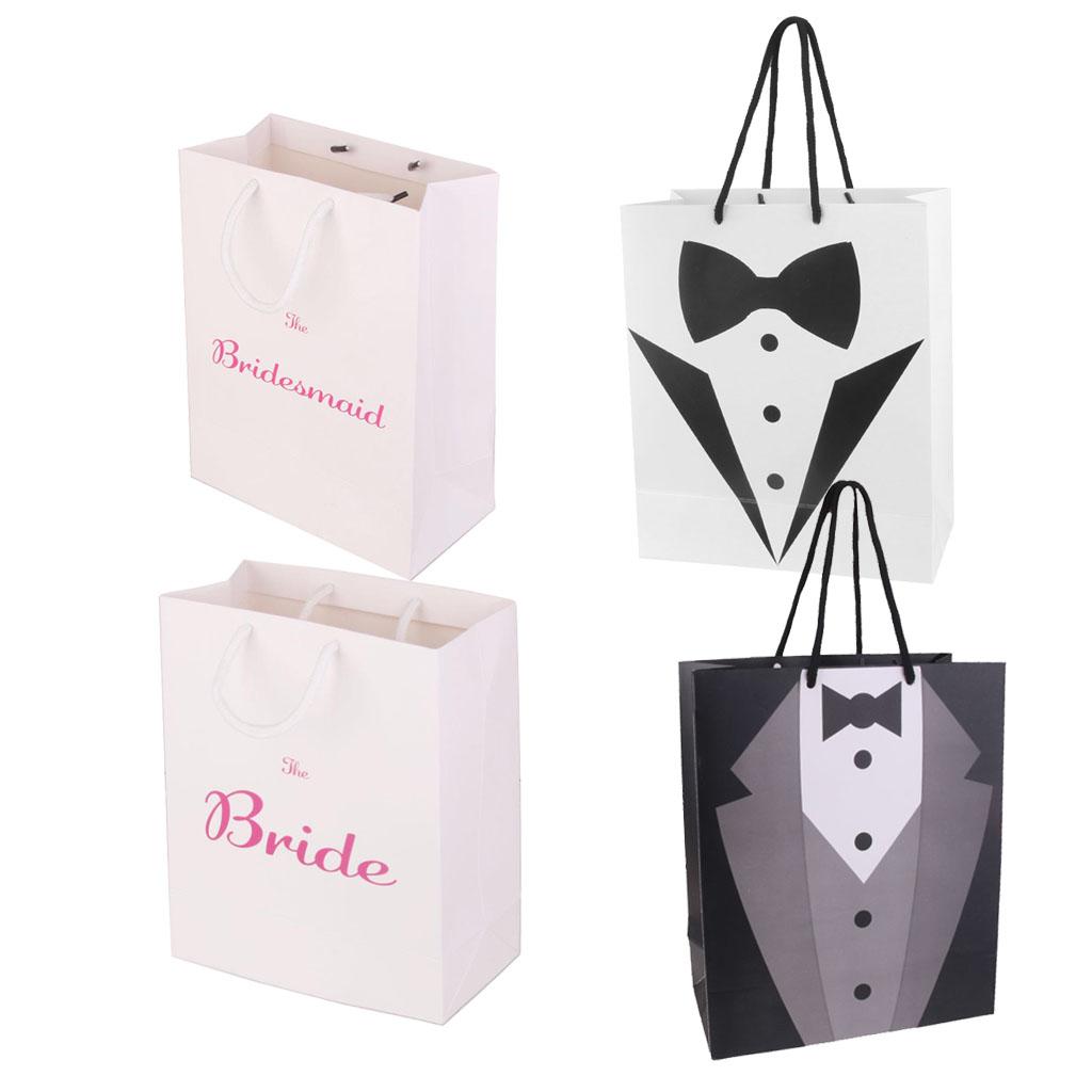 Bridesmaid Bride Bridegroom Tuxedo Wedding Party Paper Gift Favor Carry Bags
