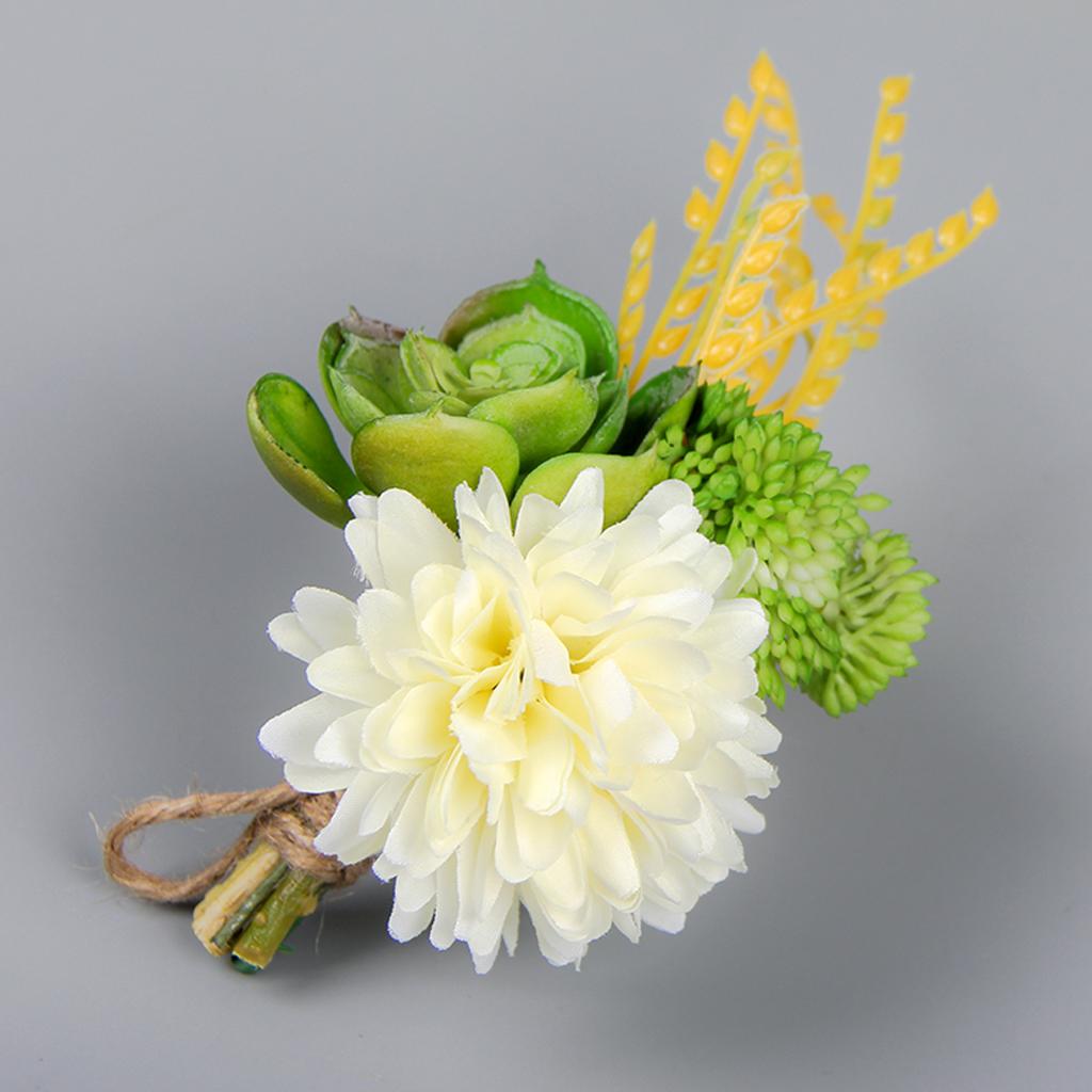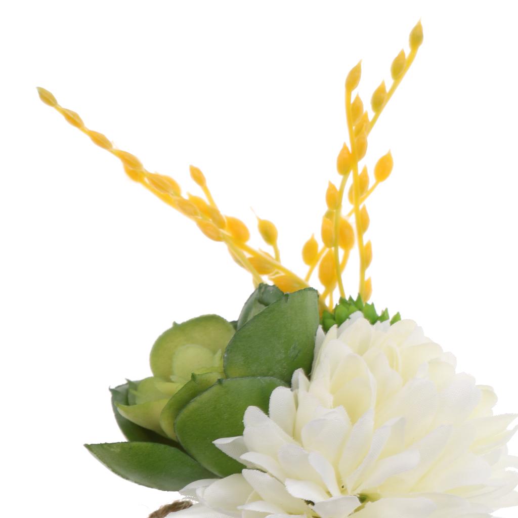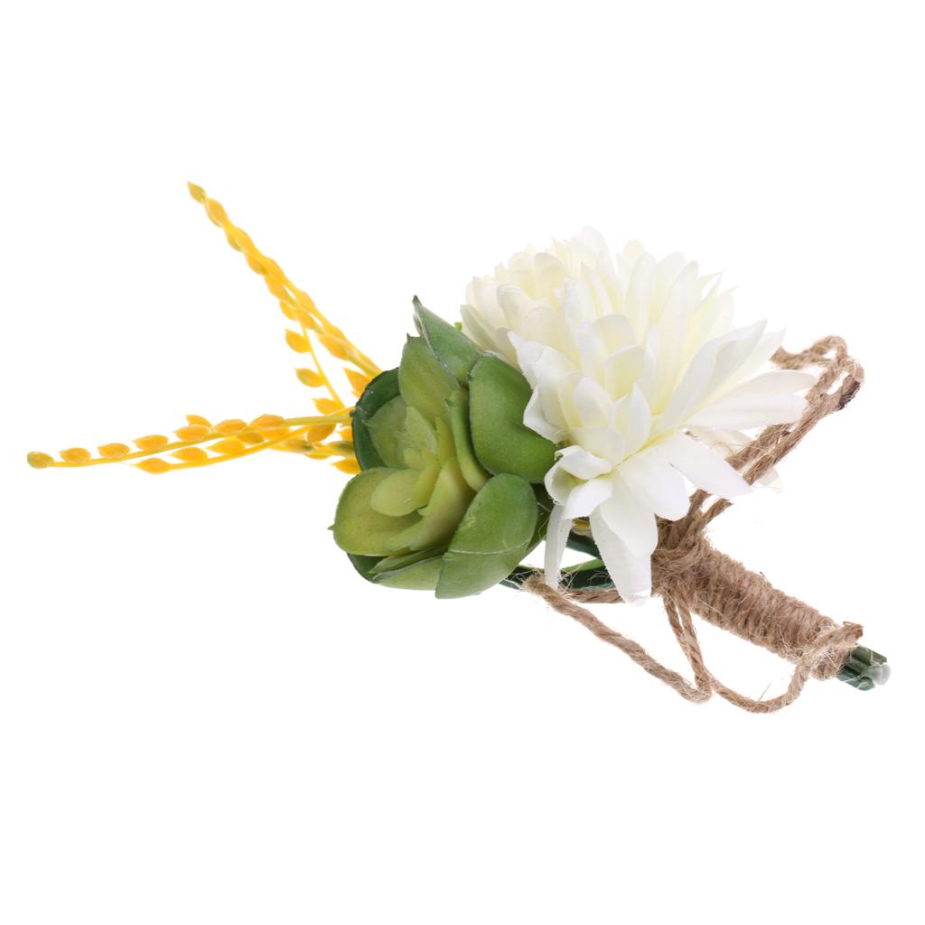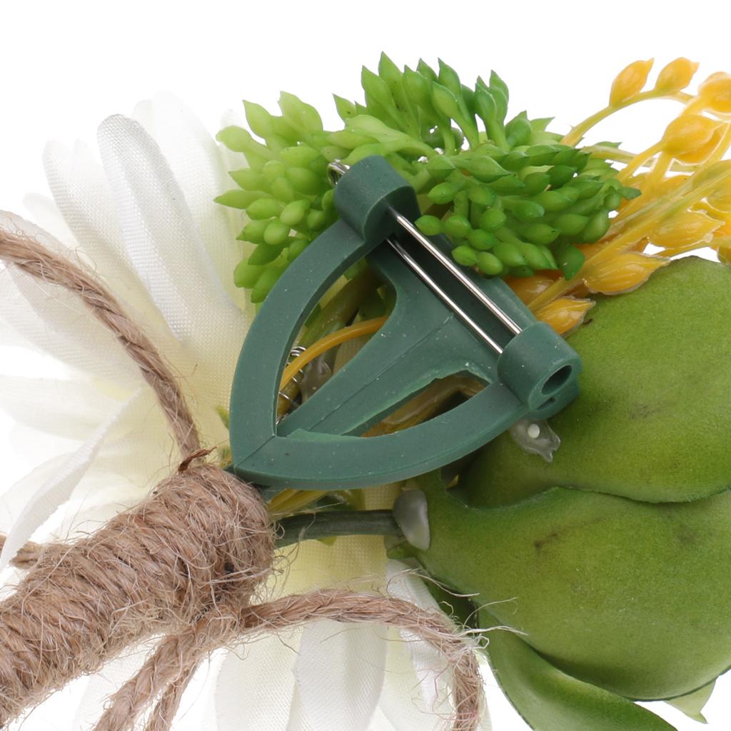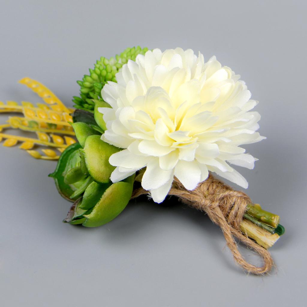 Artificial flower and leaf brooch corsage with twine rope decoration.