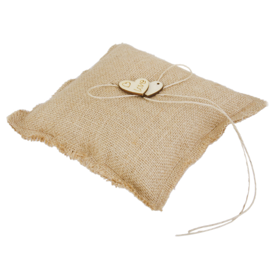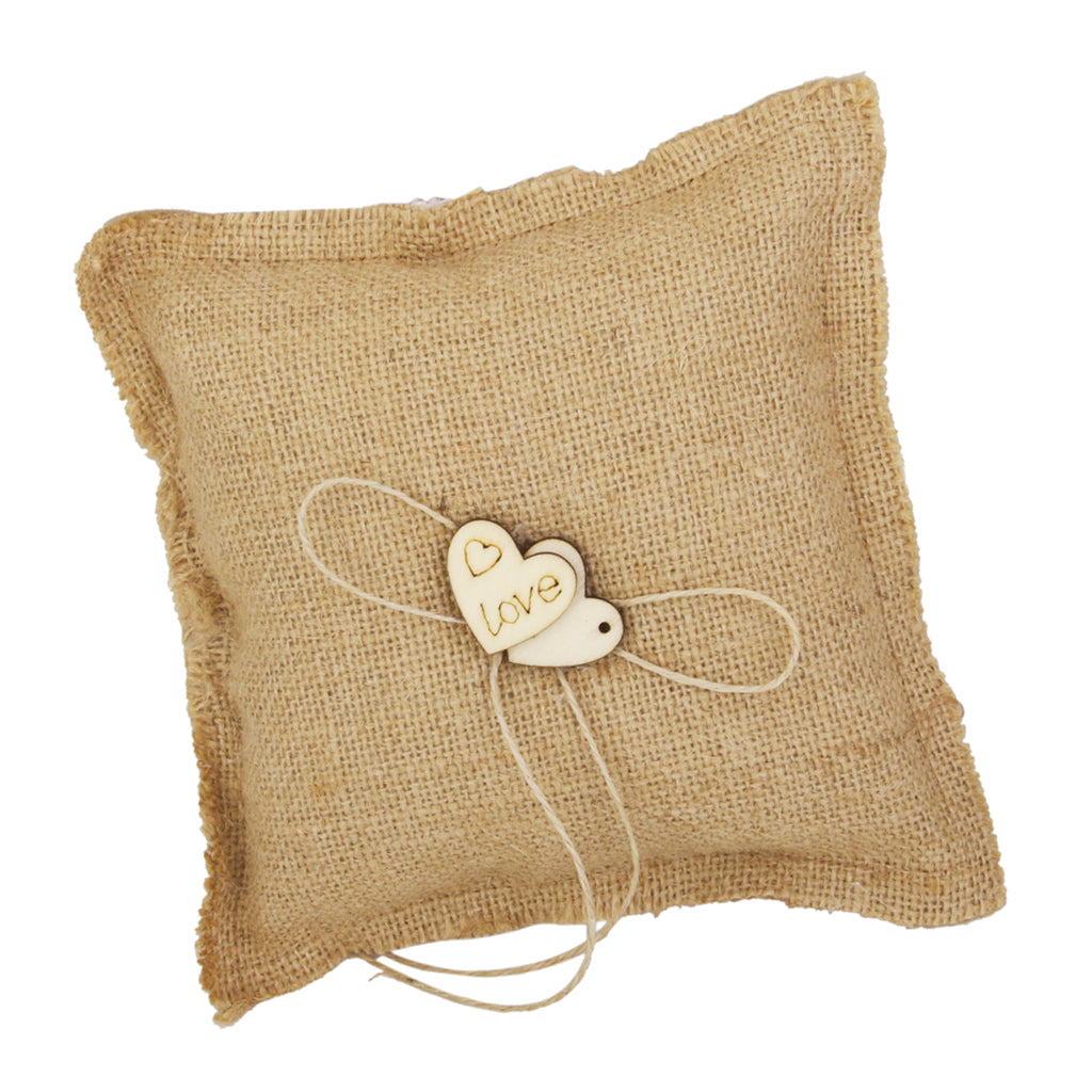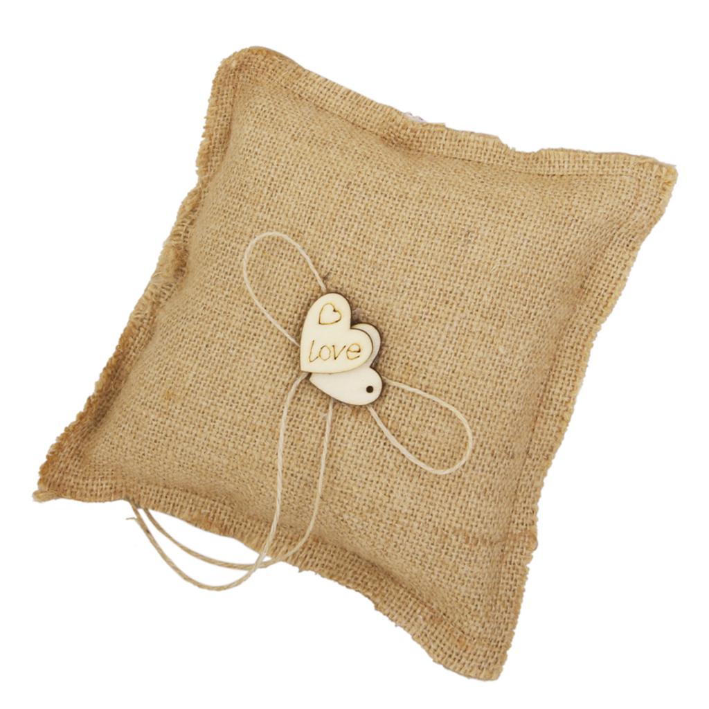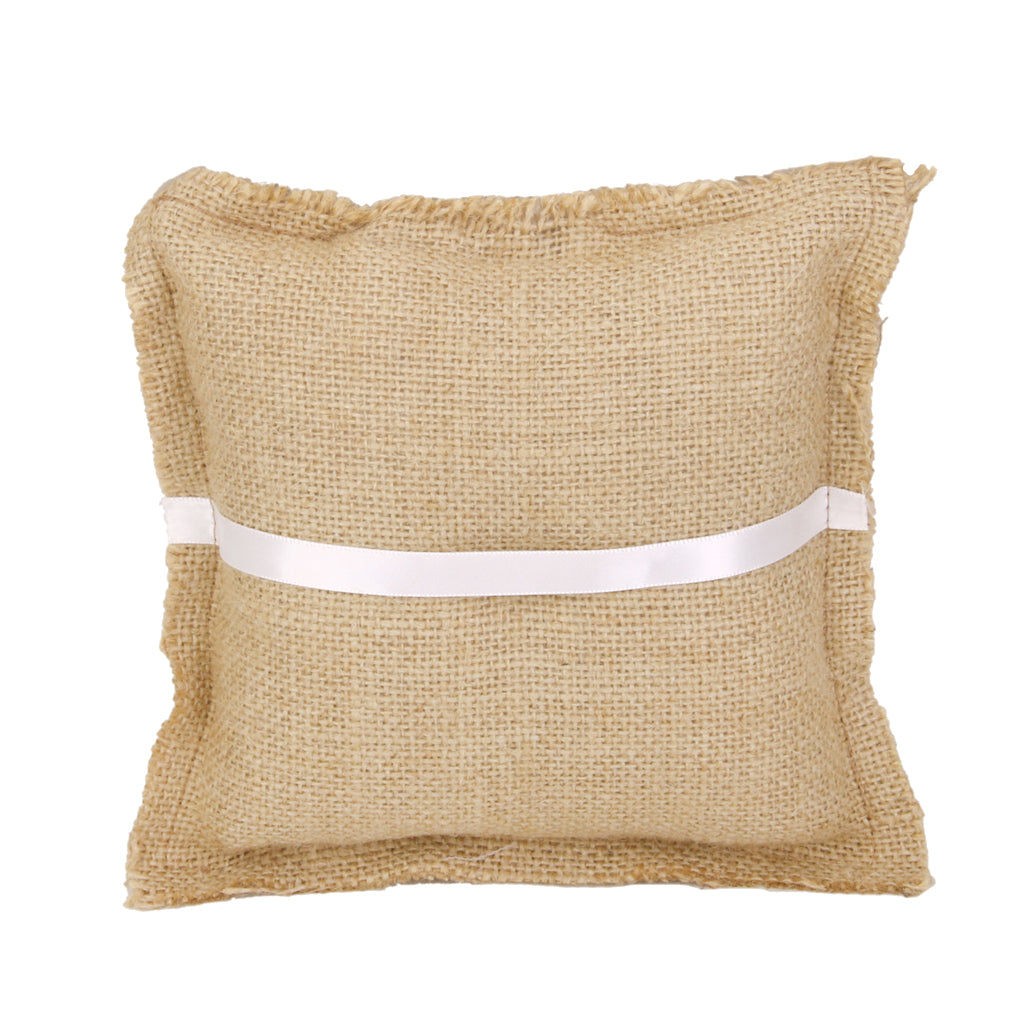 Burlap Hessian Ring Bearer Pillow Cushion Rustic Wedding Party 18cm