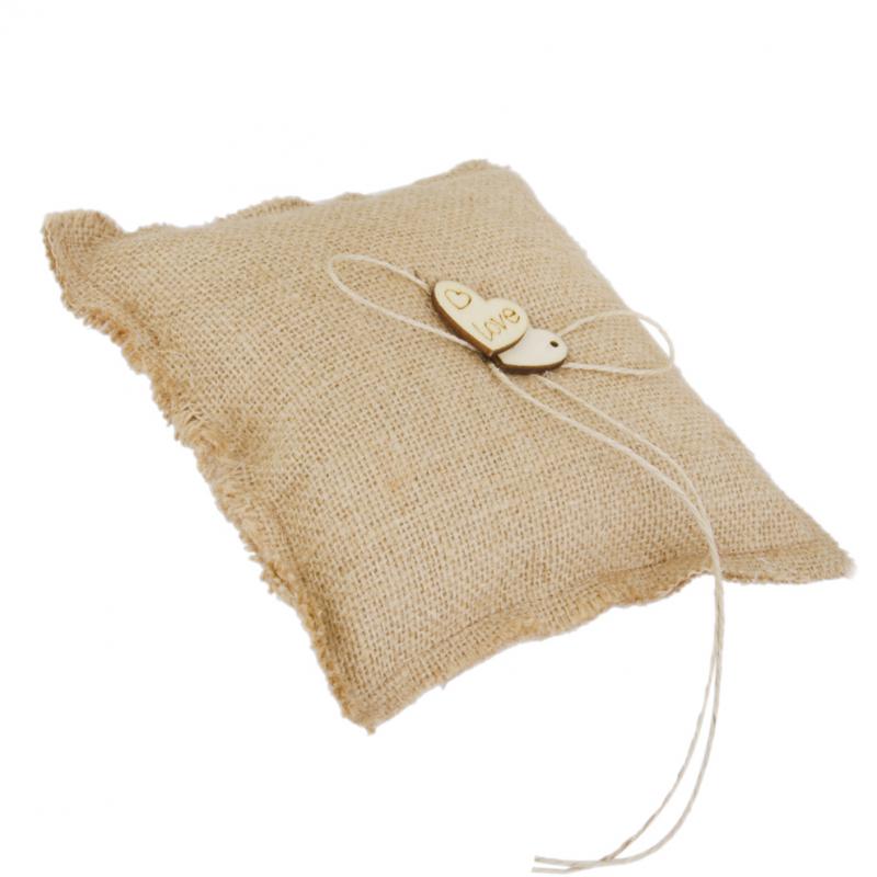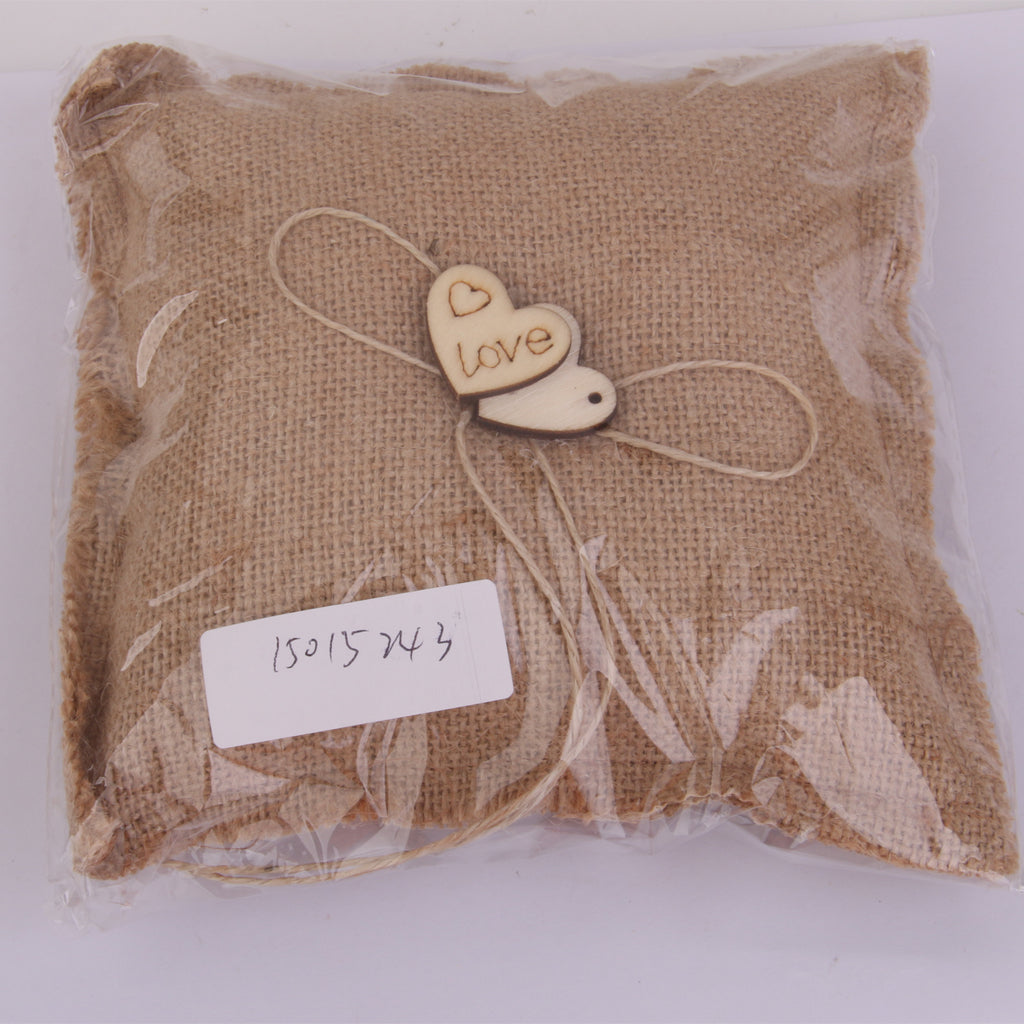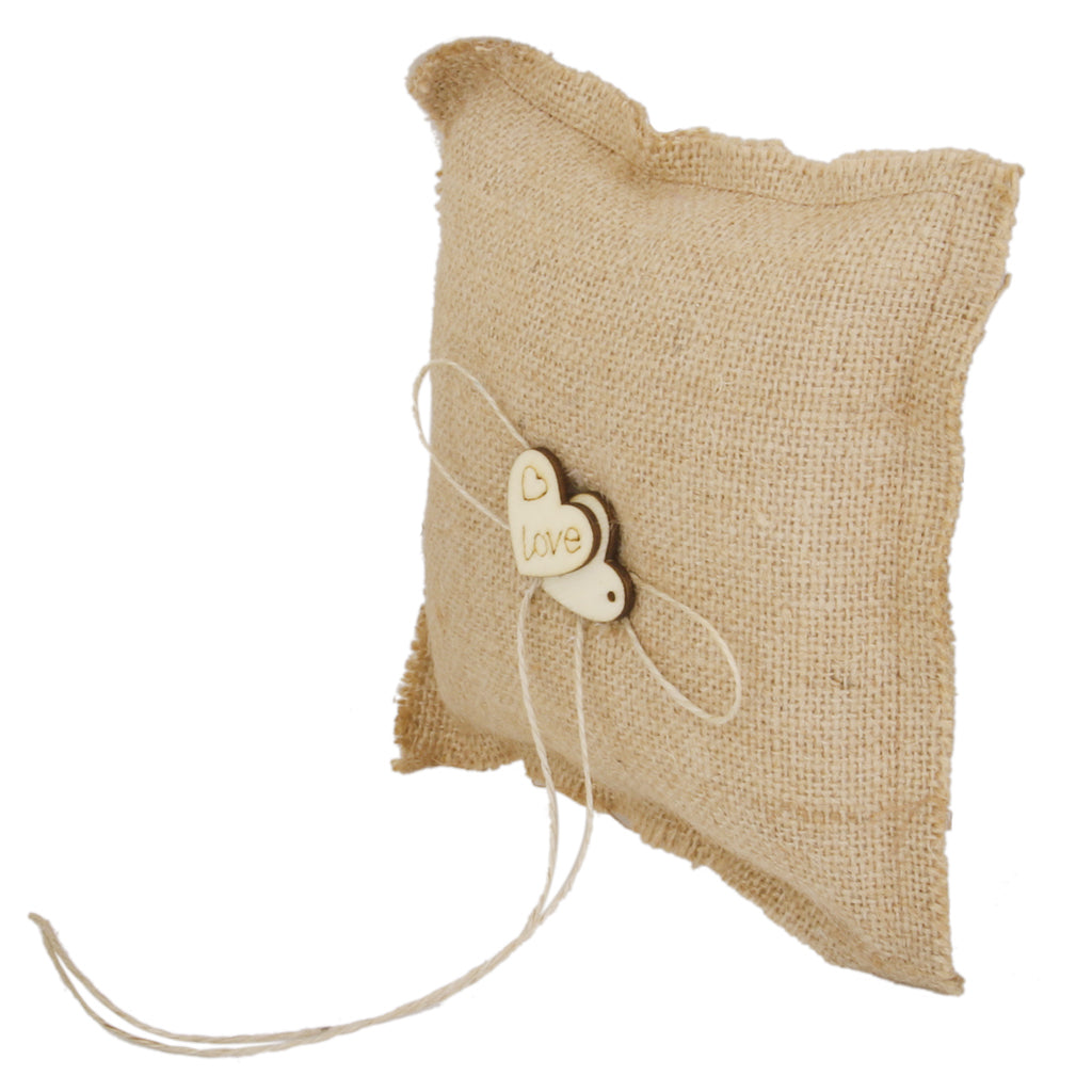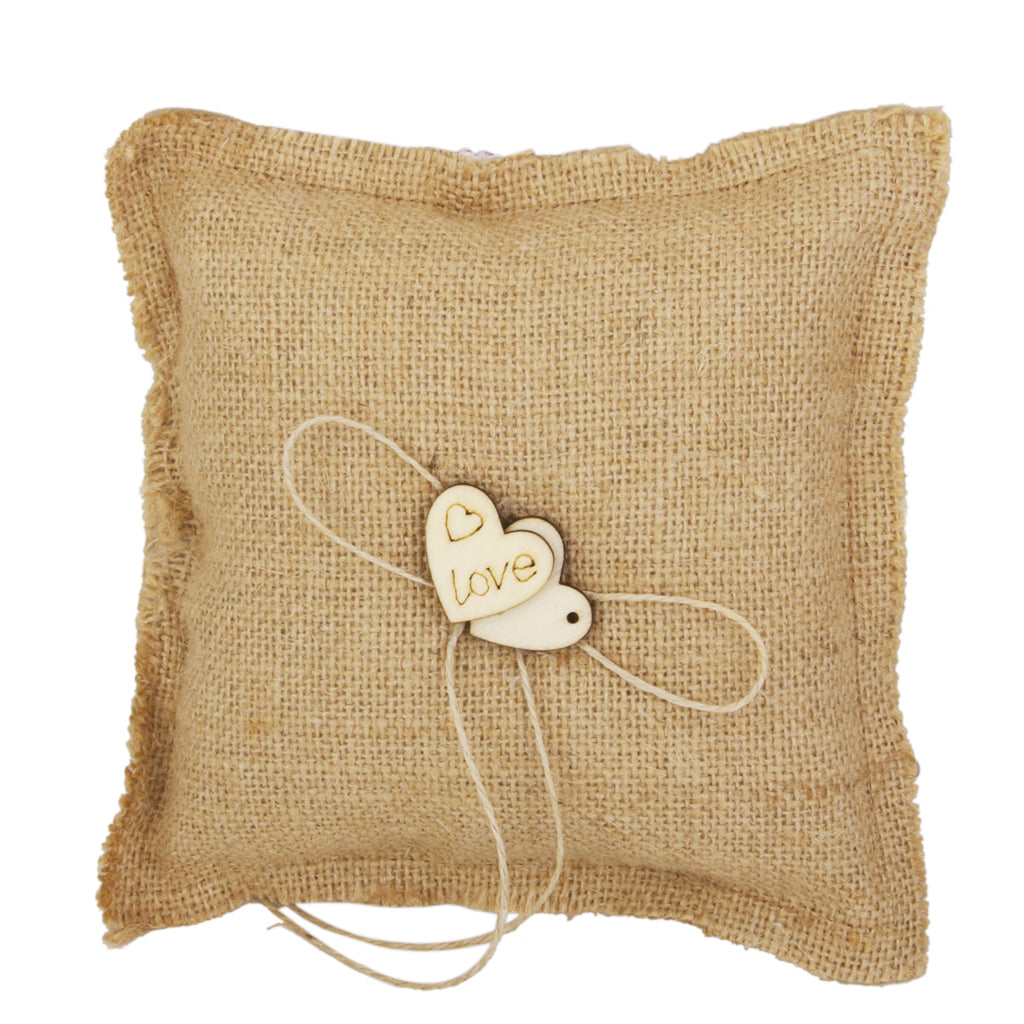 Burlap Hessian Ring Bearer Pillow Cushion Rustic Wedding Party 18cm