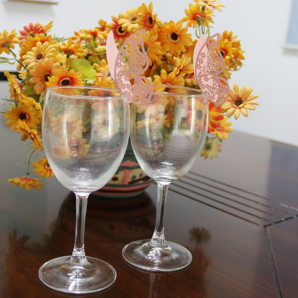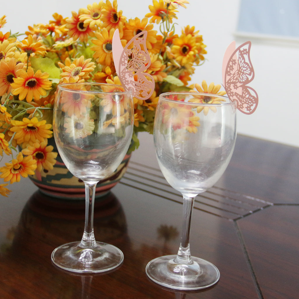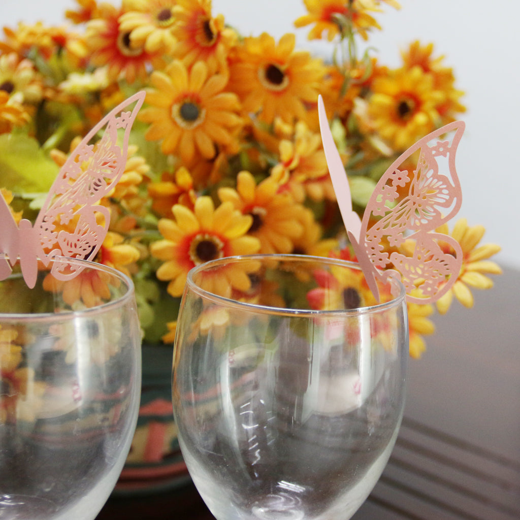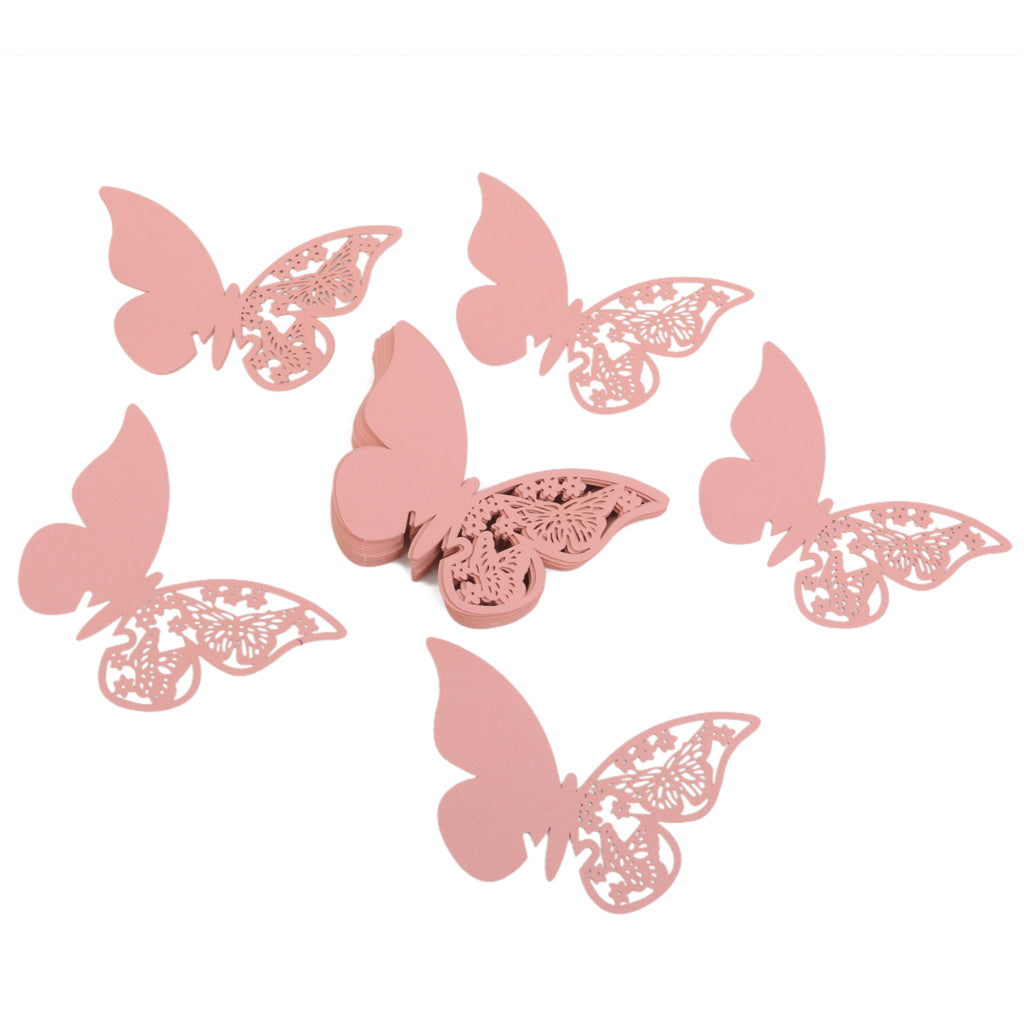 Butterfly Glass Place Cards Wedding Party Table Decor 50pcs Pink