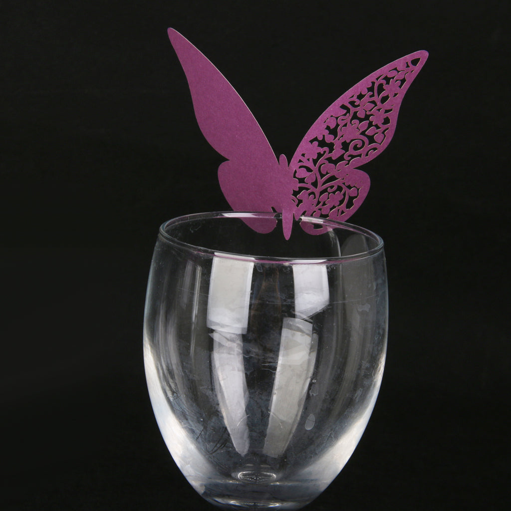 Butterfly Glass Place Cards Wedding Party Table Decor 50pcs Purple