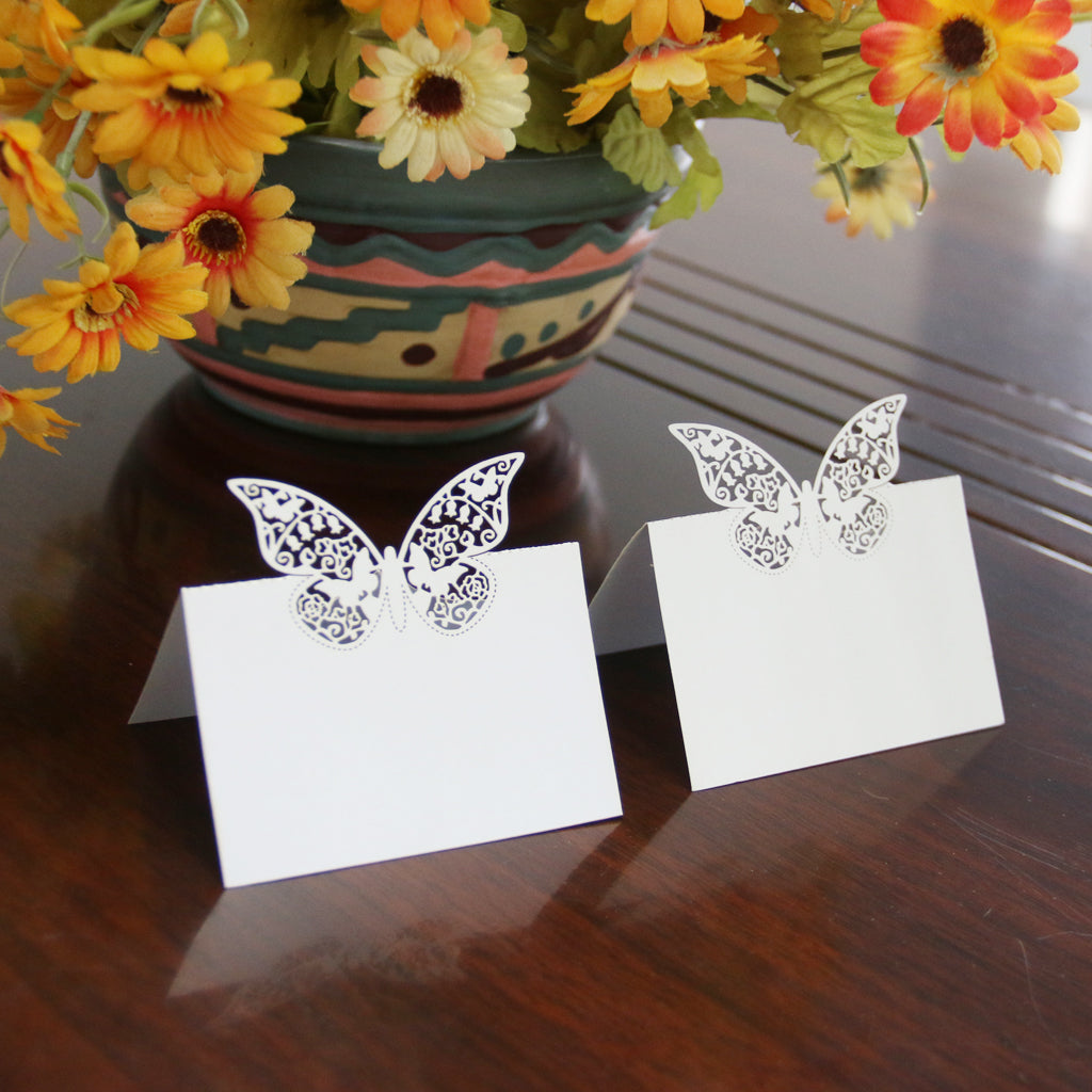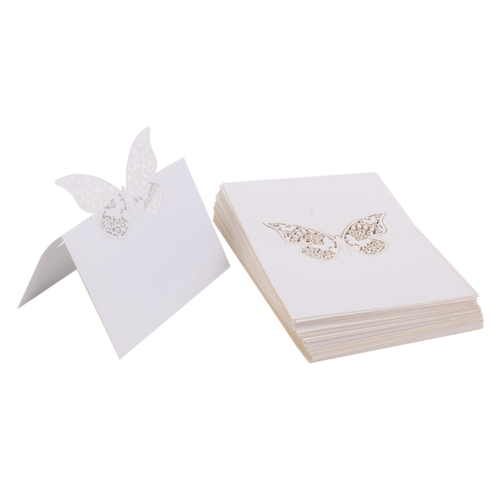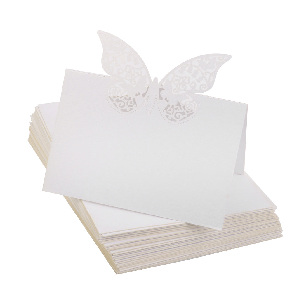 Butterfly Wedding Birthday Table Decoration Place Name Cards 50pcs White