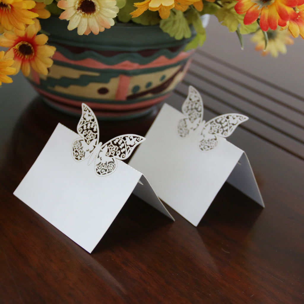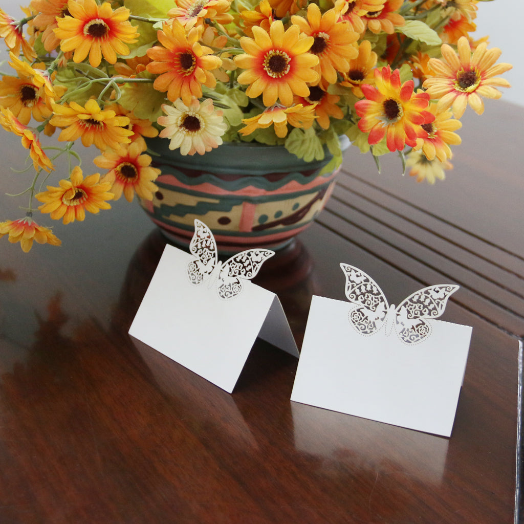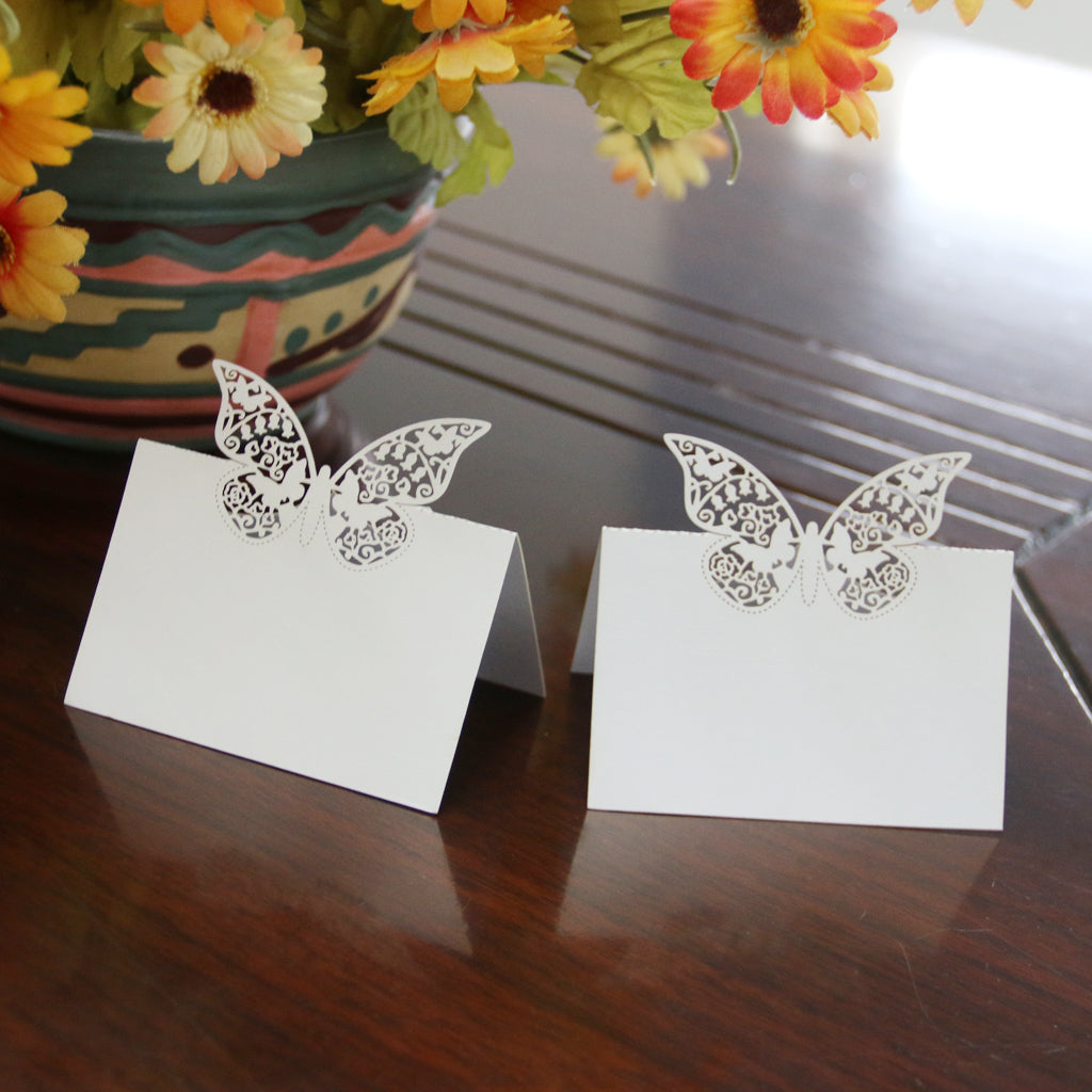Butterfly Wedding Birthday Table Decoration Place Name Cards 50pcs White