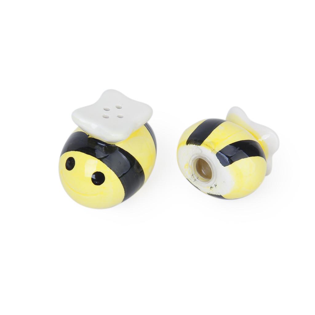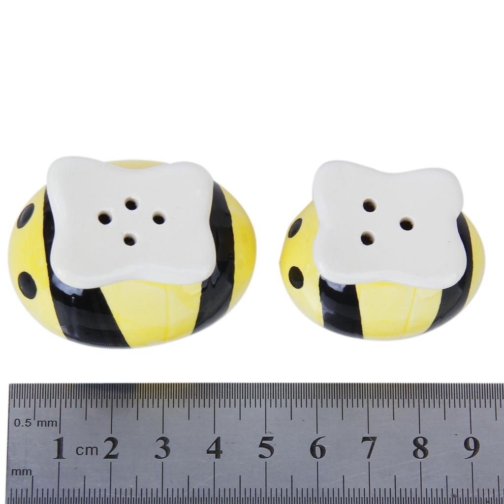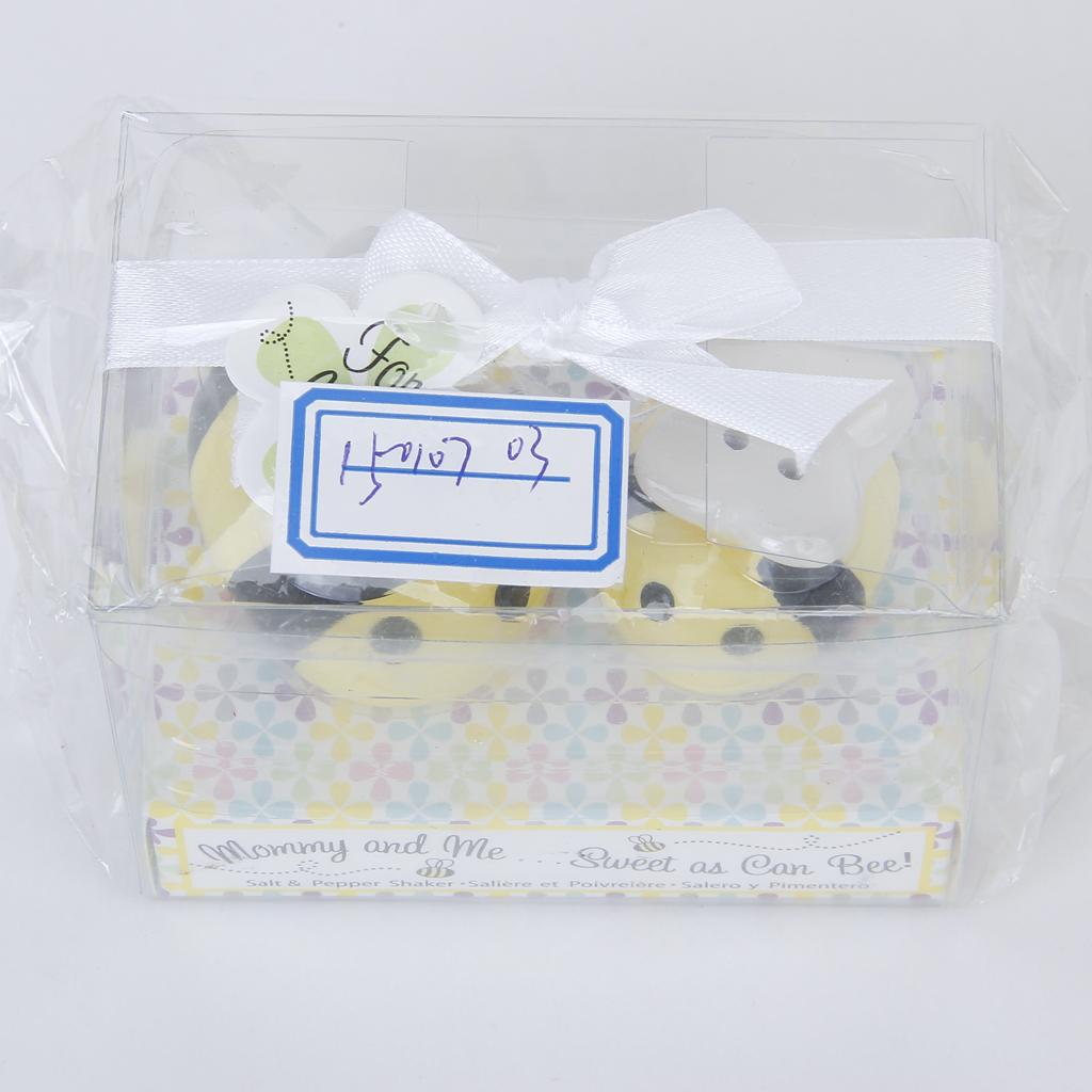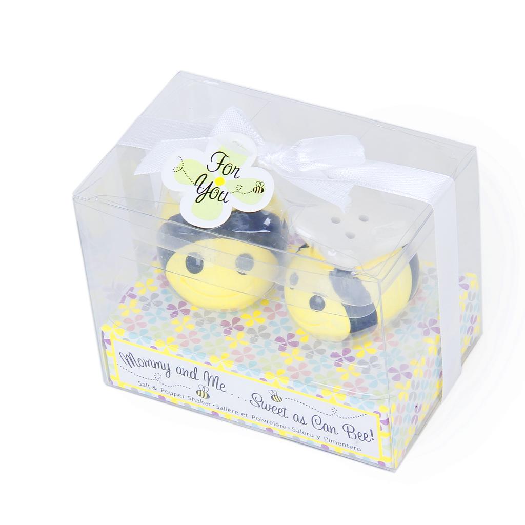 This set of "Mommy and Me" bee salt & pepper shakers is made of ceramic. There are small holes on the top and a big hole in the bottom, really a personalized salt & pepper shaker. Vividly and lifelike, great wedding favors as you can imagine!
