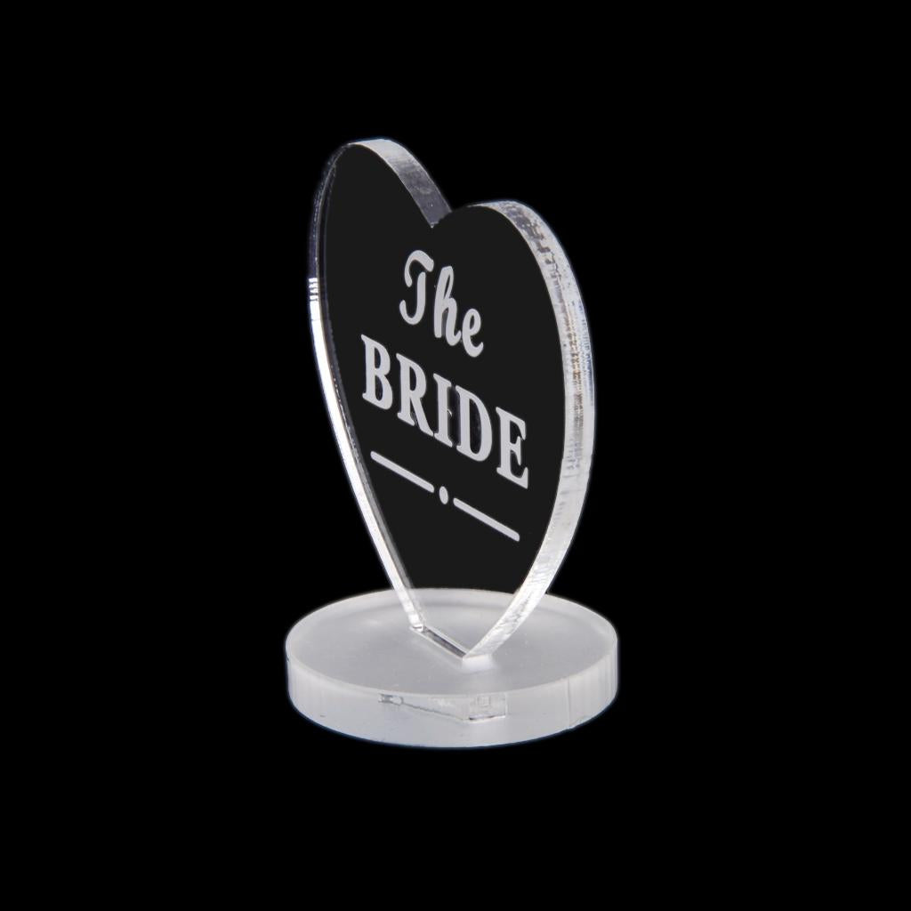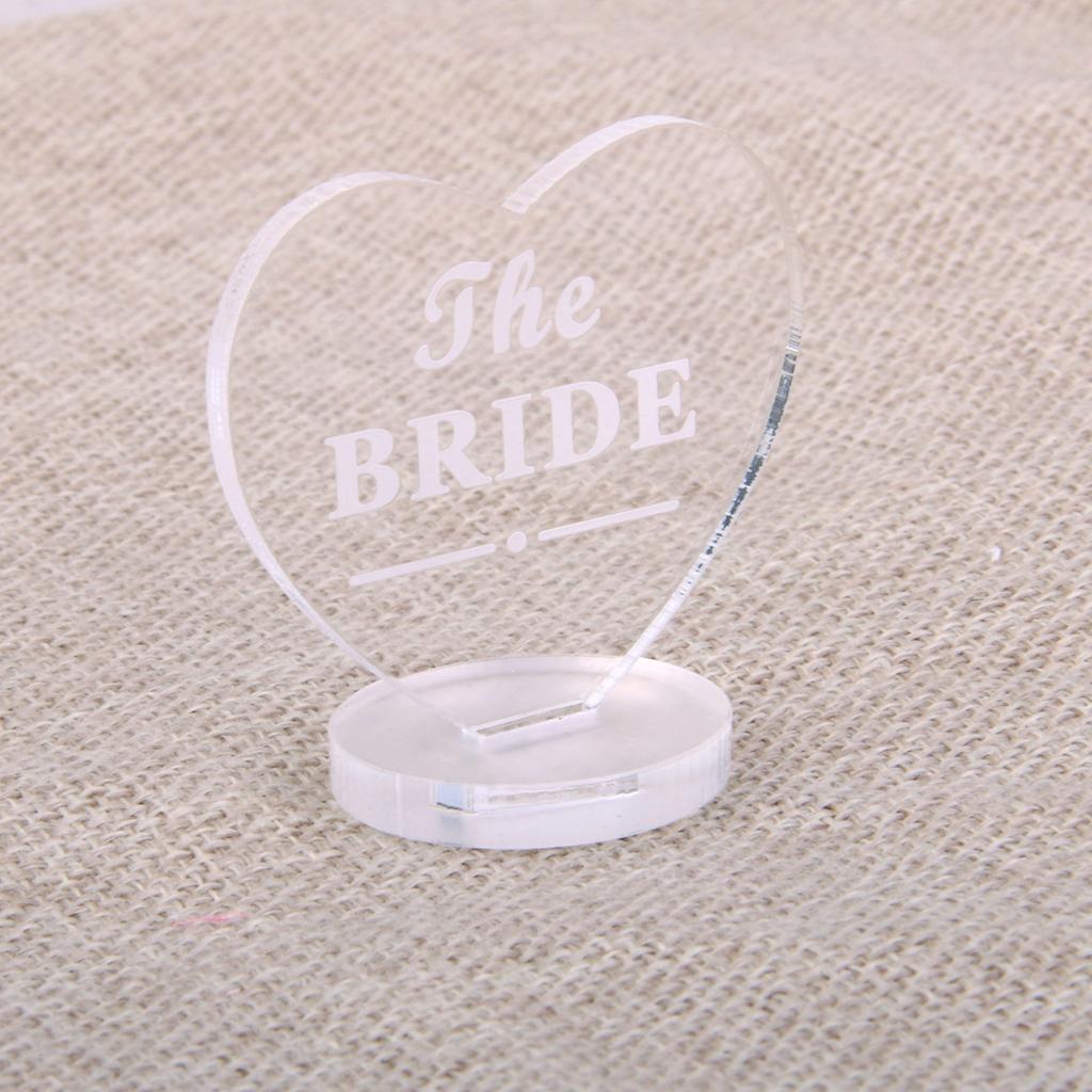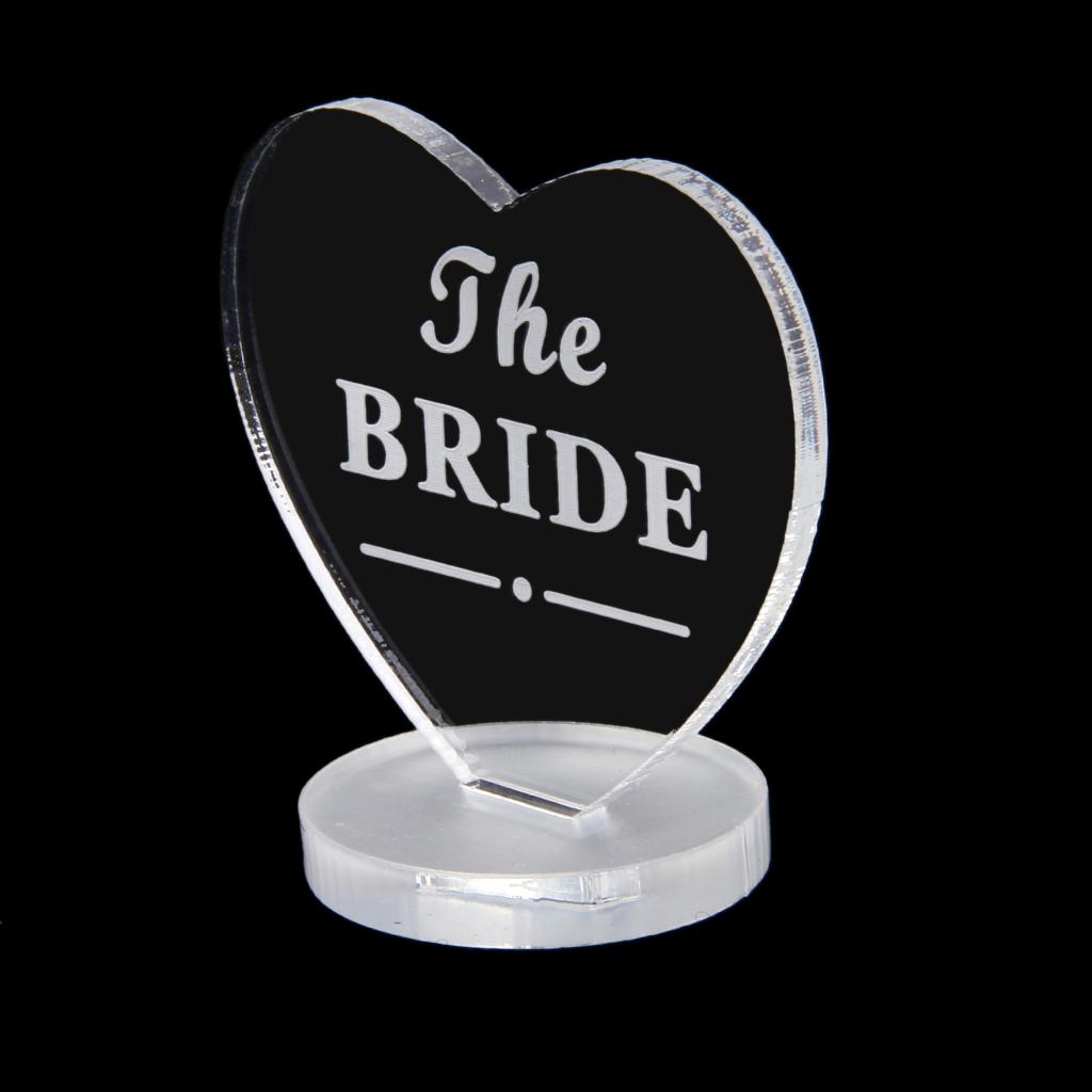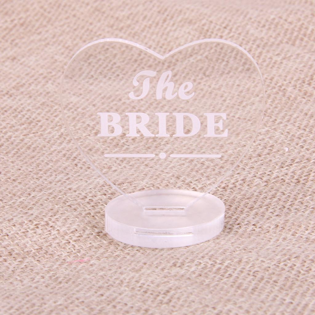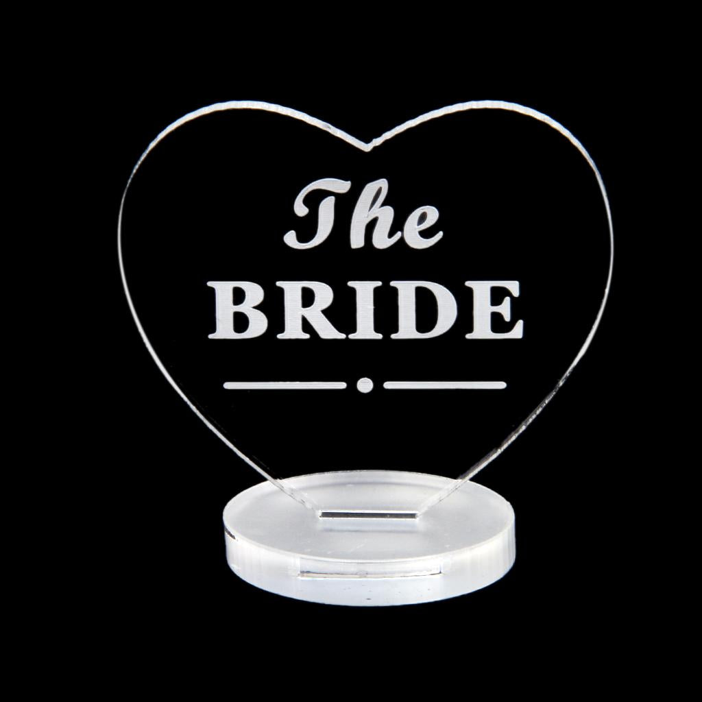 Clear Acrylic Love Heart Wedding Table Centerpiece -The Bride Name Plaque