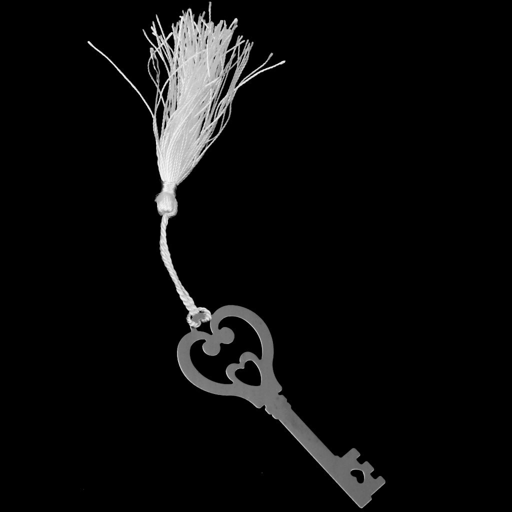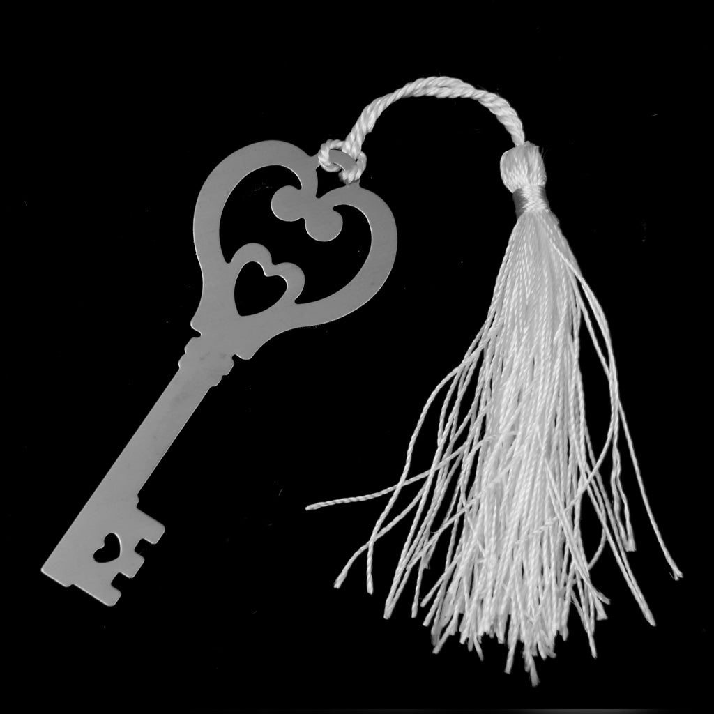 This key bookmark attached with tassels is made of stainless steel, with hollow out design, delicate and practical. Really good gifts for friends or used as wedding favors.