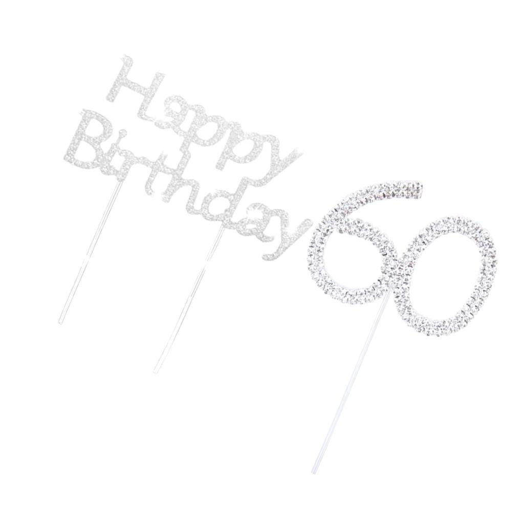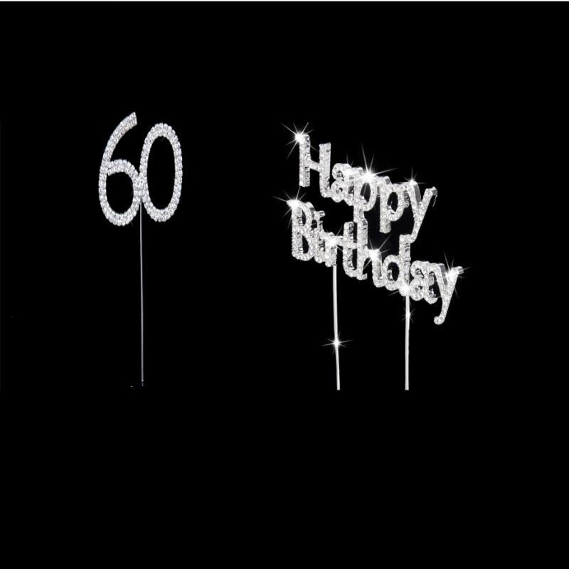 Crystal Happy Brithday + 60th Cake Toppers Bday Anniversary Cake Decor