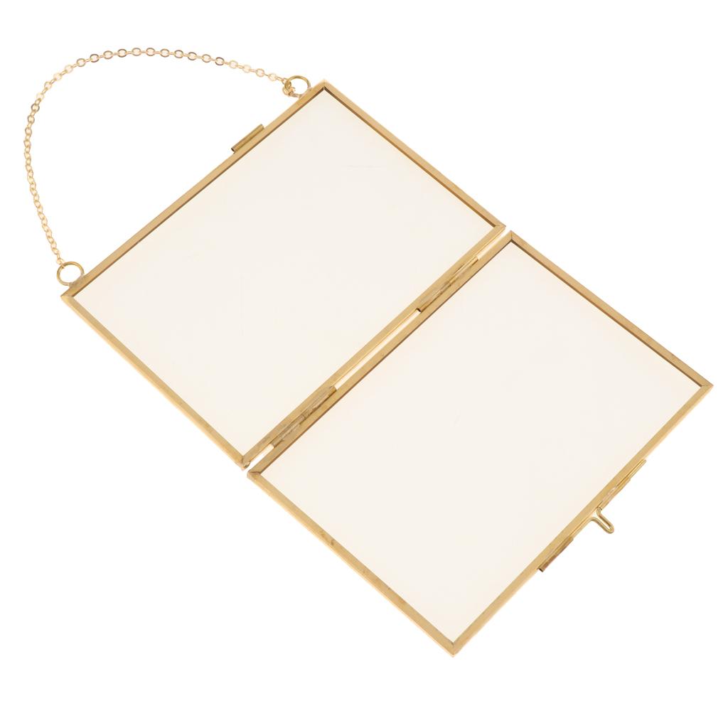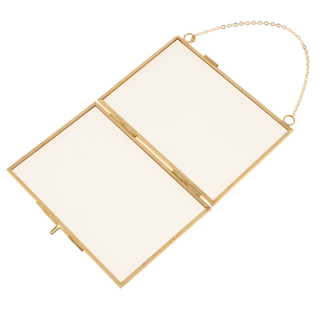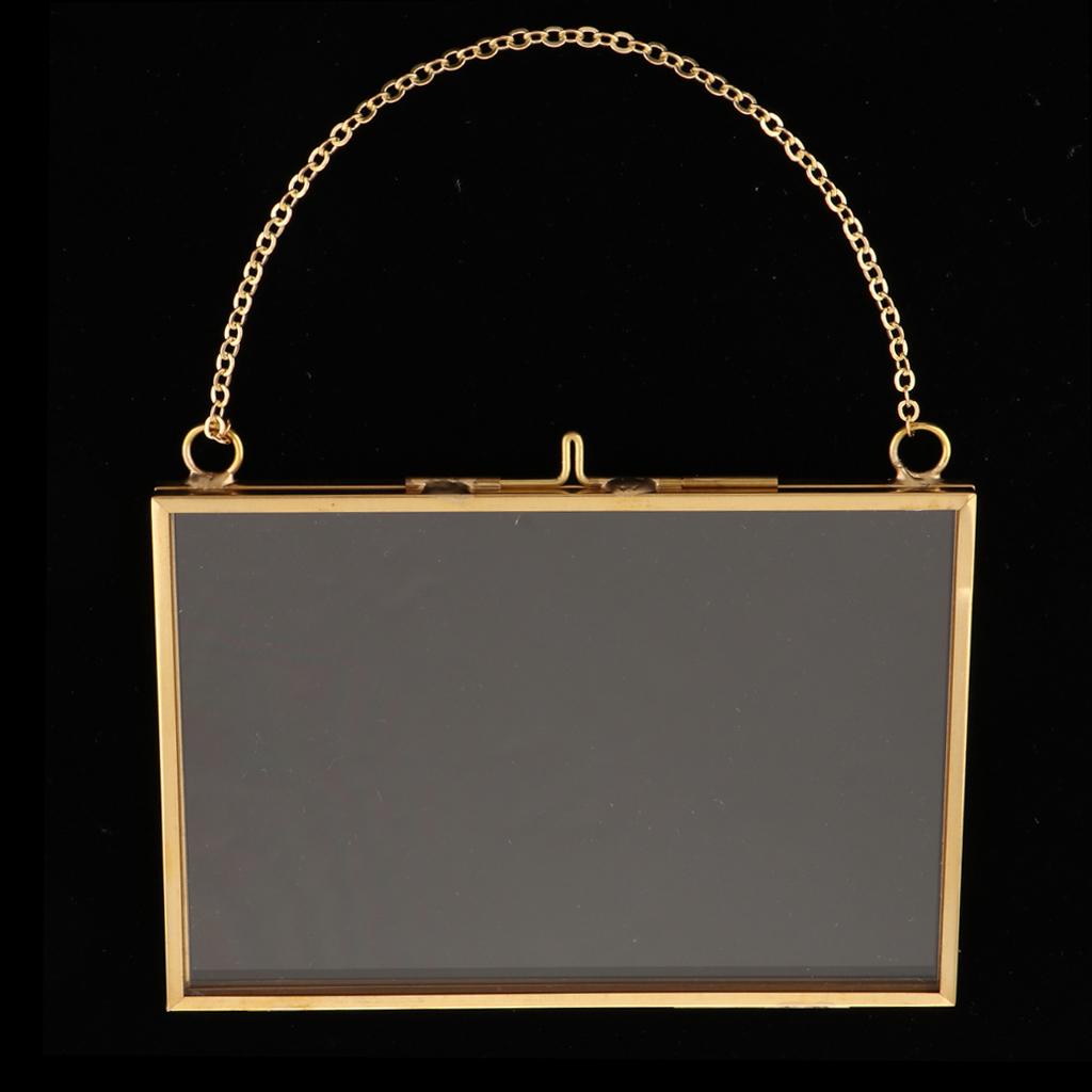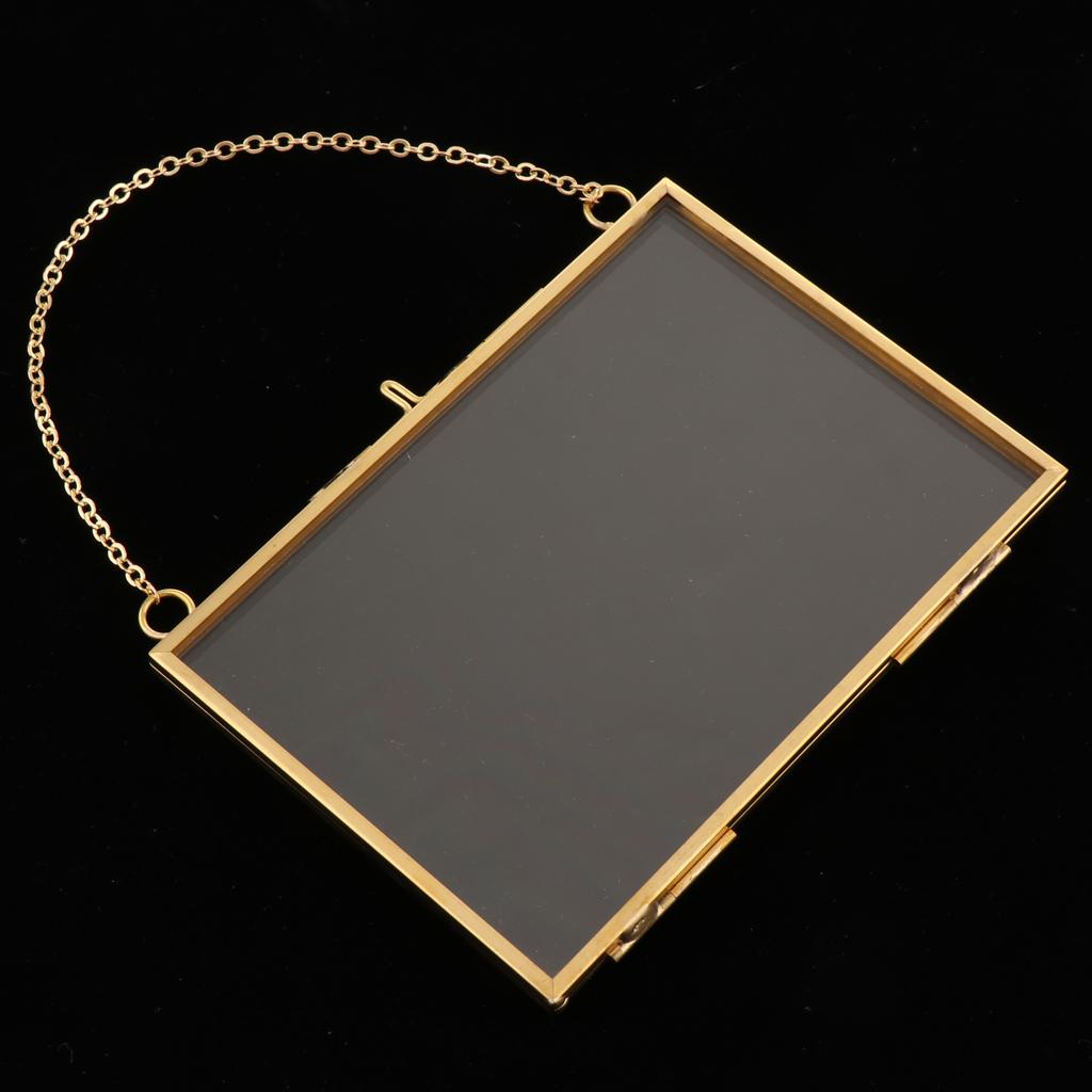 Double Side Glass Wall Hanging Photo Picture Frame Golden 13 x 9cm