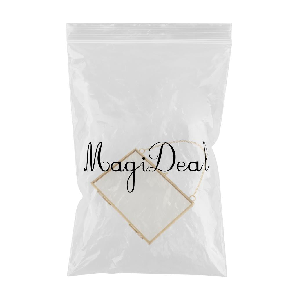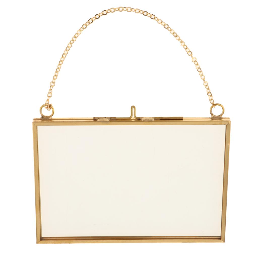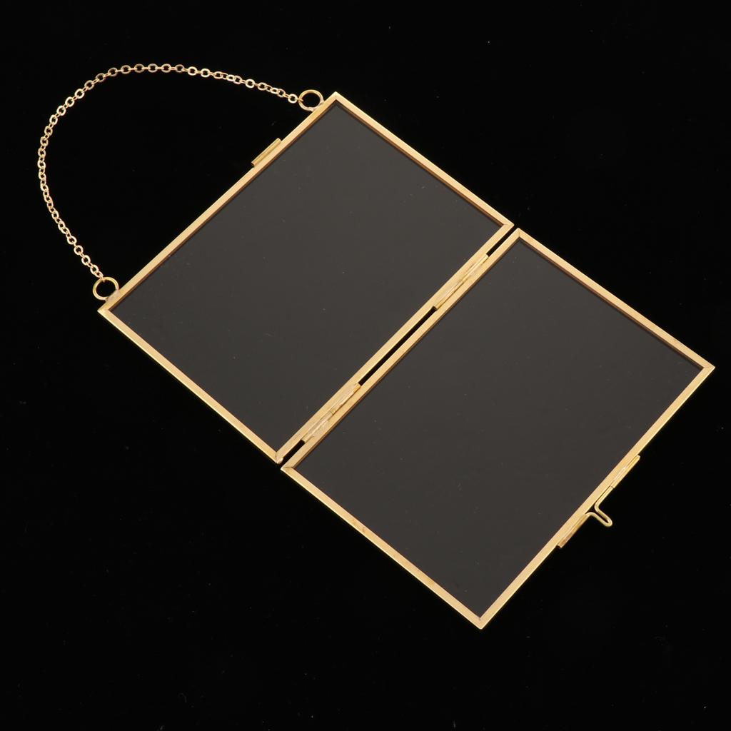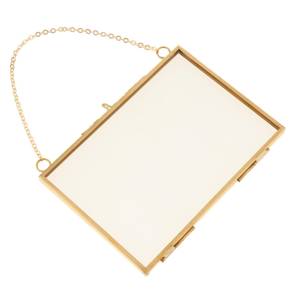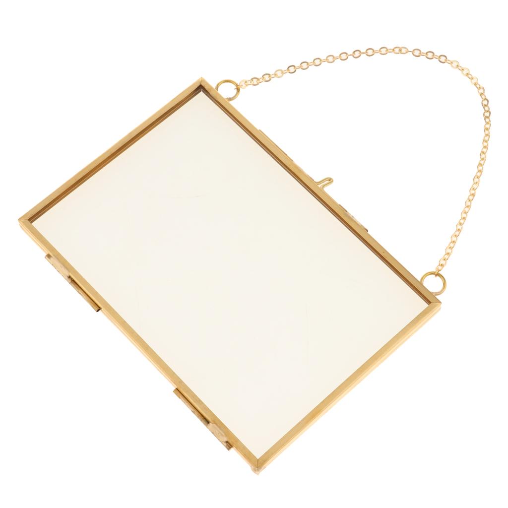 Double Side Glass Wall Hanging Photo Picture Frame Golden 13 x 9cm