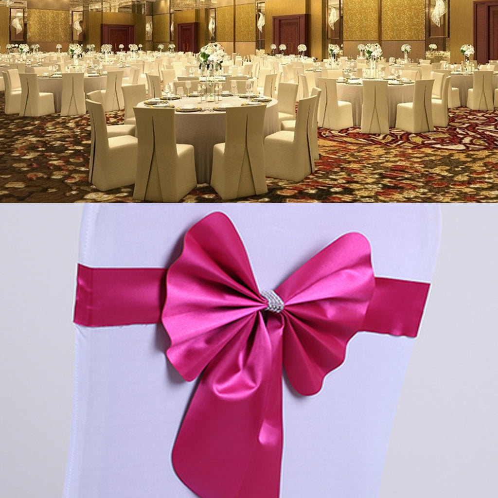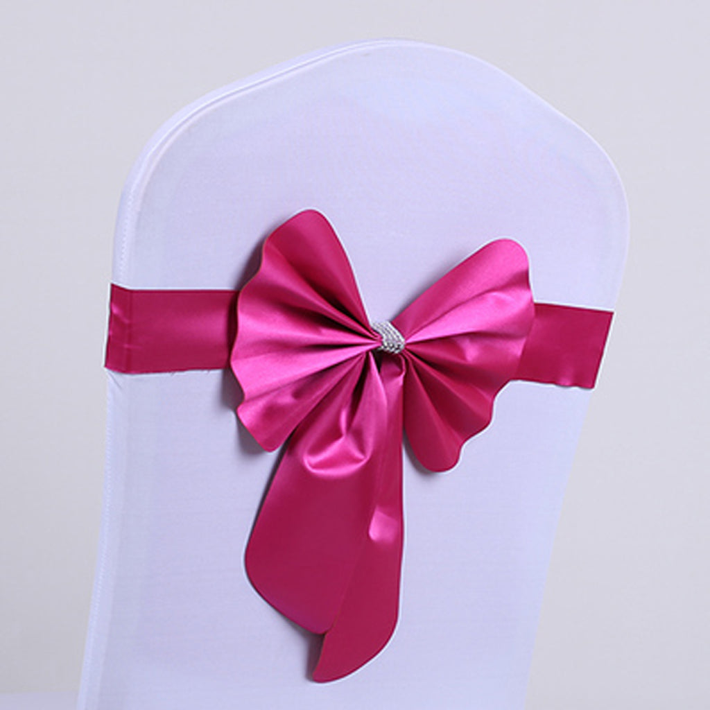 Elastic Sash Band Chair Back Wedding Bowknot Bow Ribbon Decoration for Hotel Restaurant Wedding Party Chair Decor Rose Red