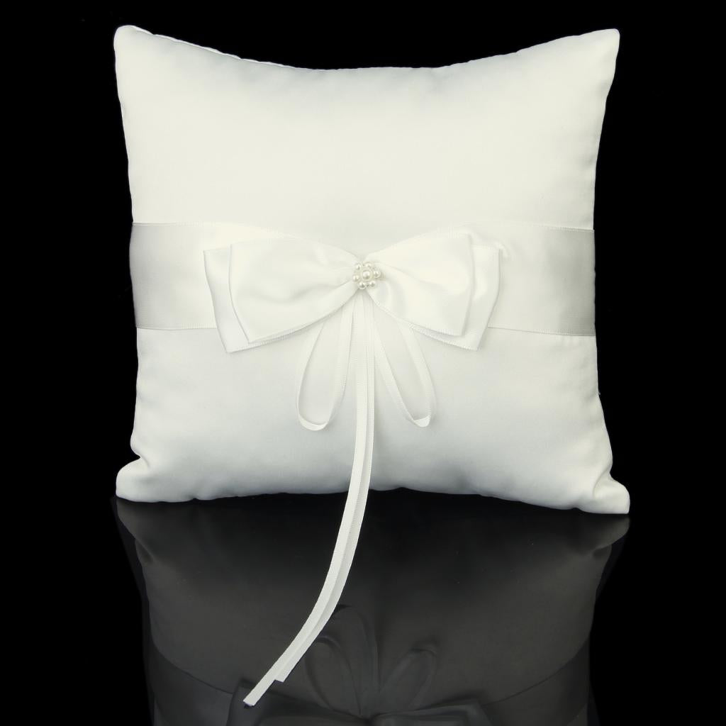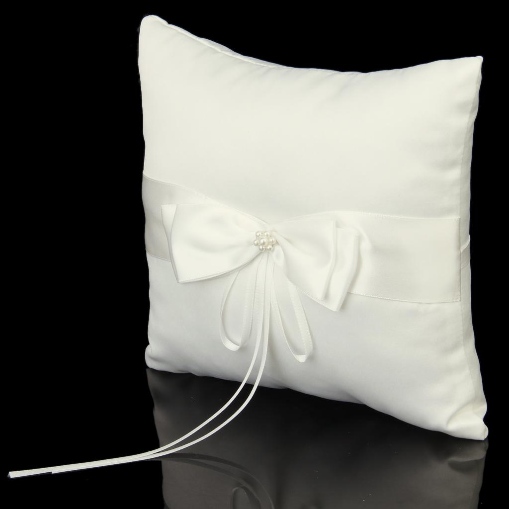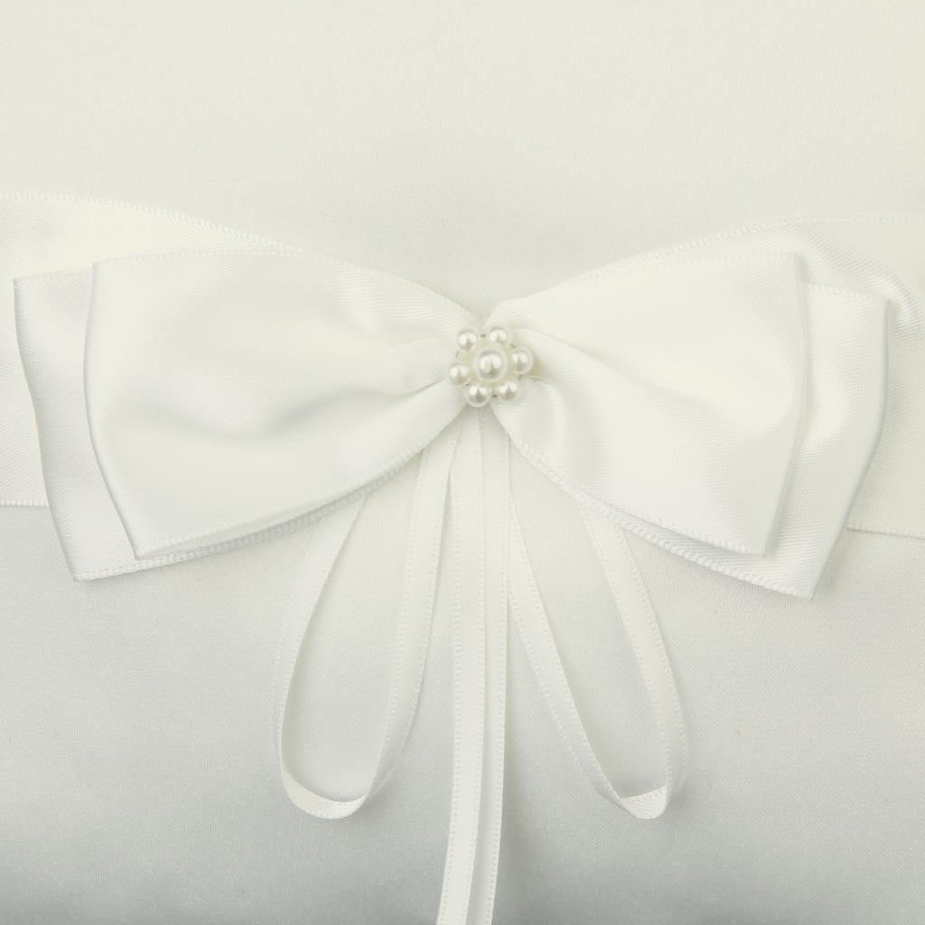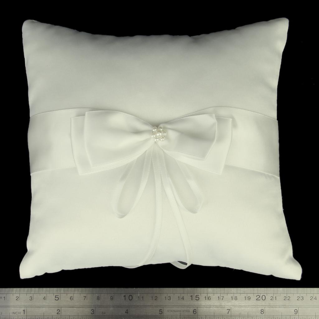 White ring pillow decorated with satin ribbon and sparking diamante buckle to tie the ringPackage Includes: