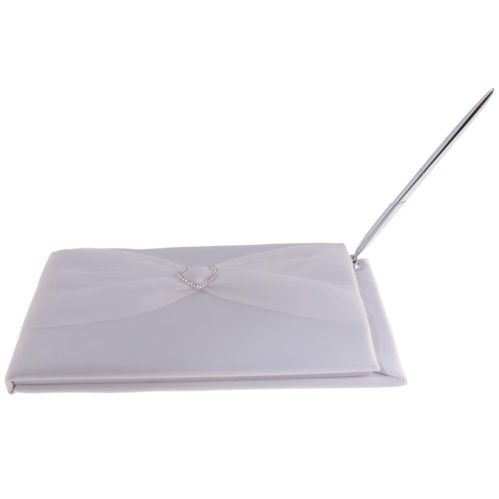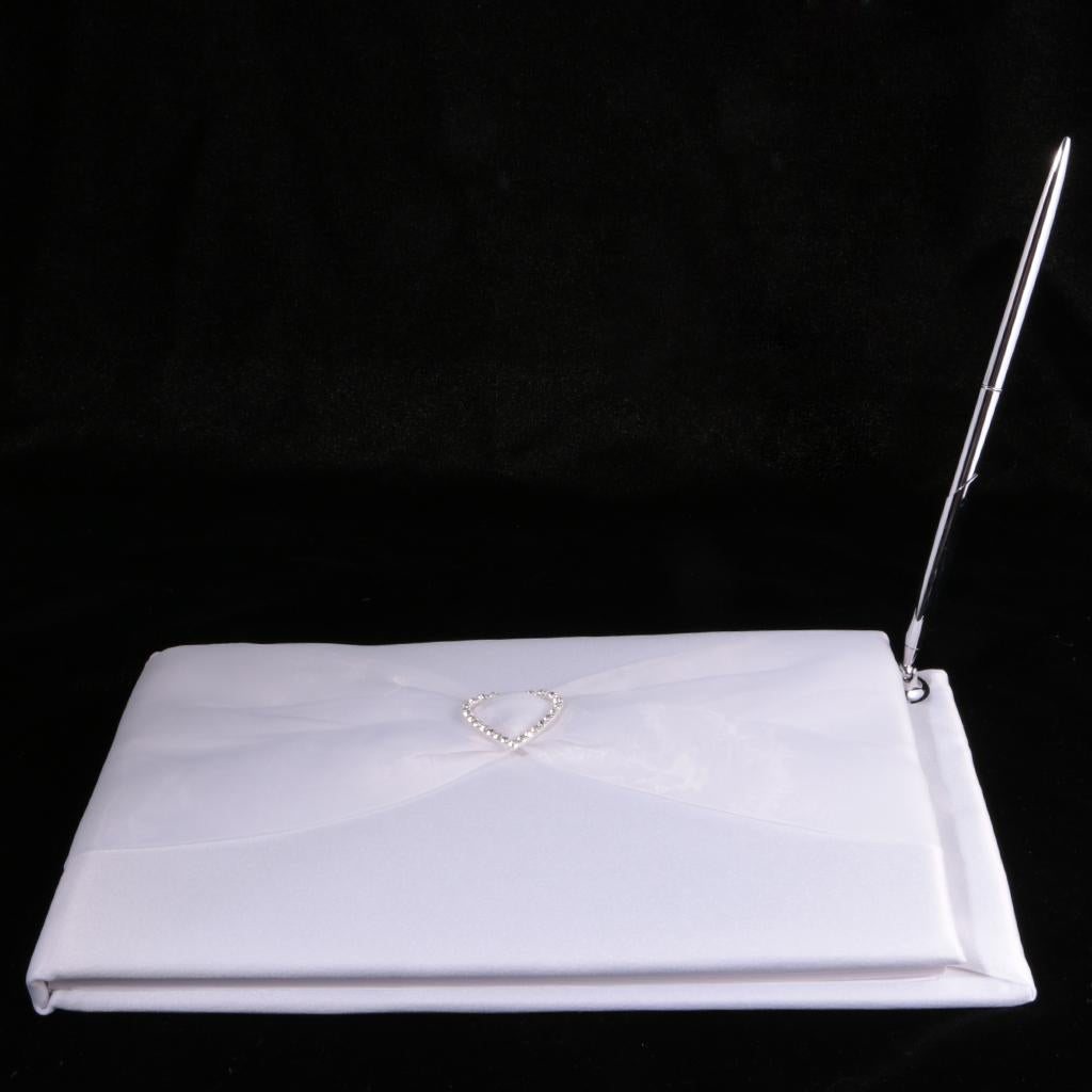 Elegant wedding guest book and pen set with tulle and love heart rhinestones decorations