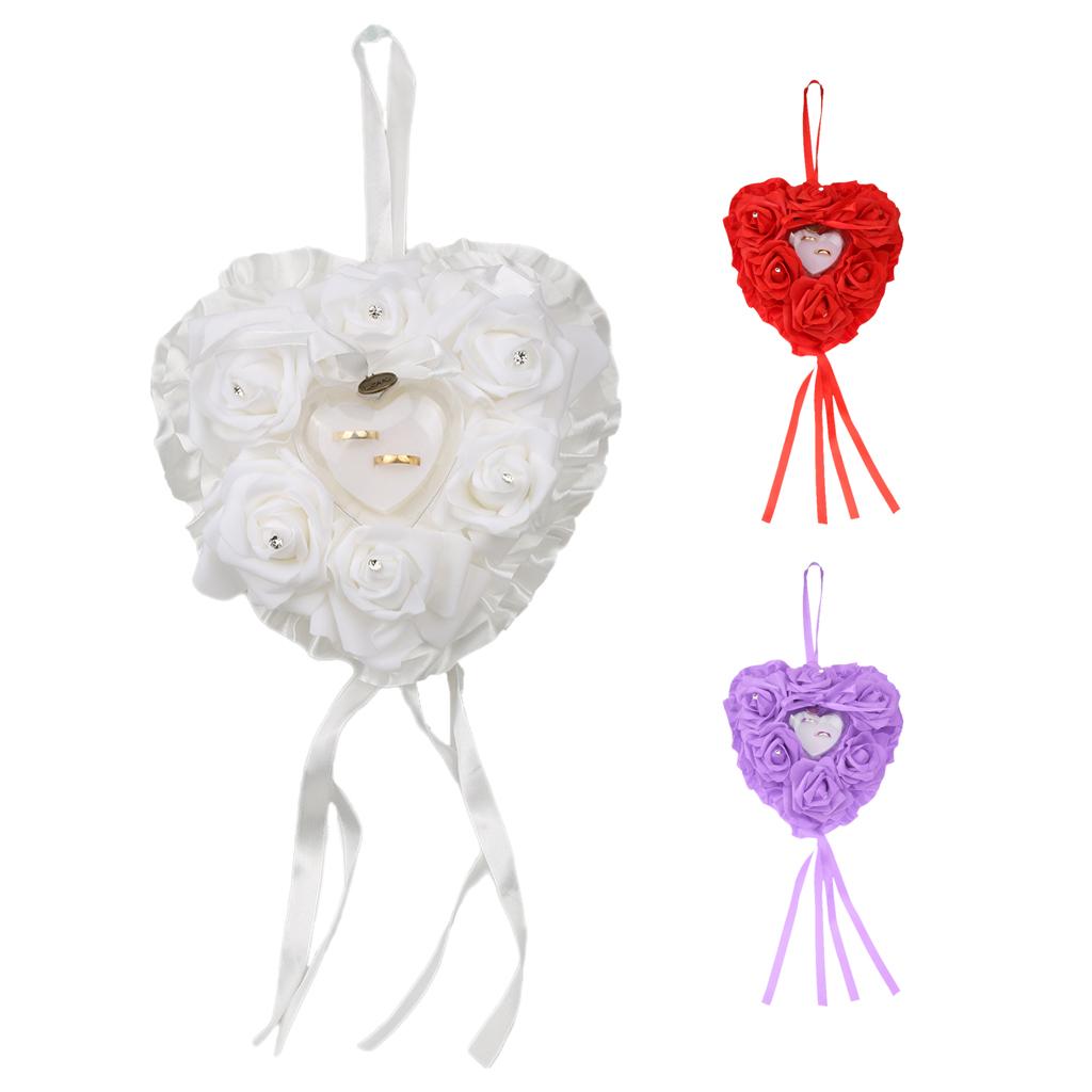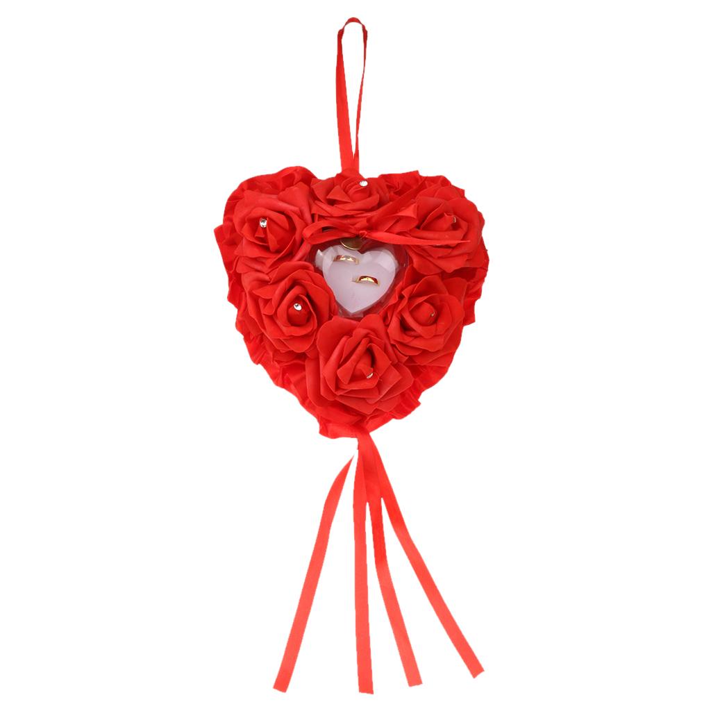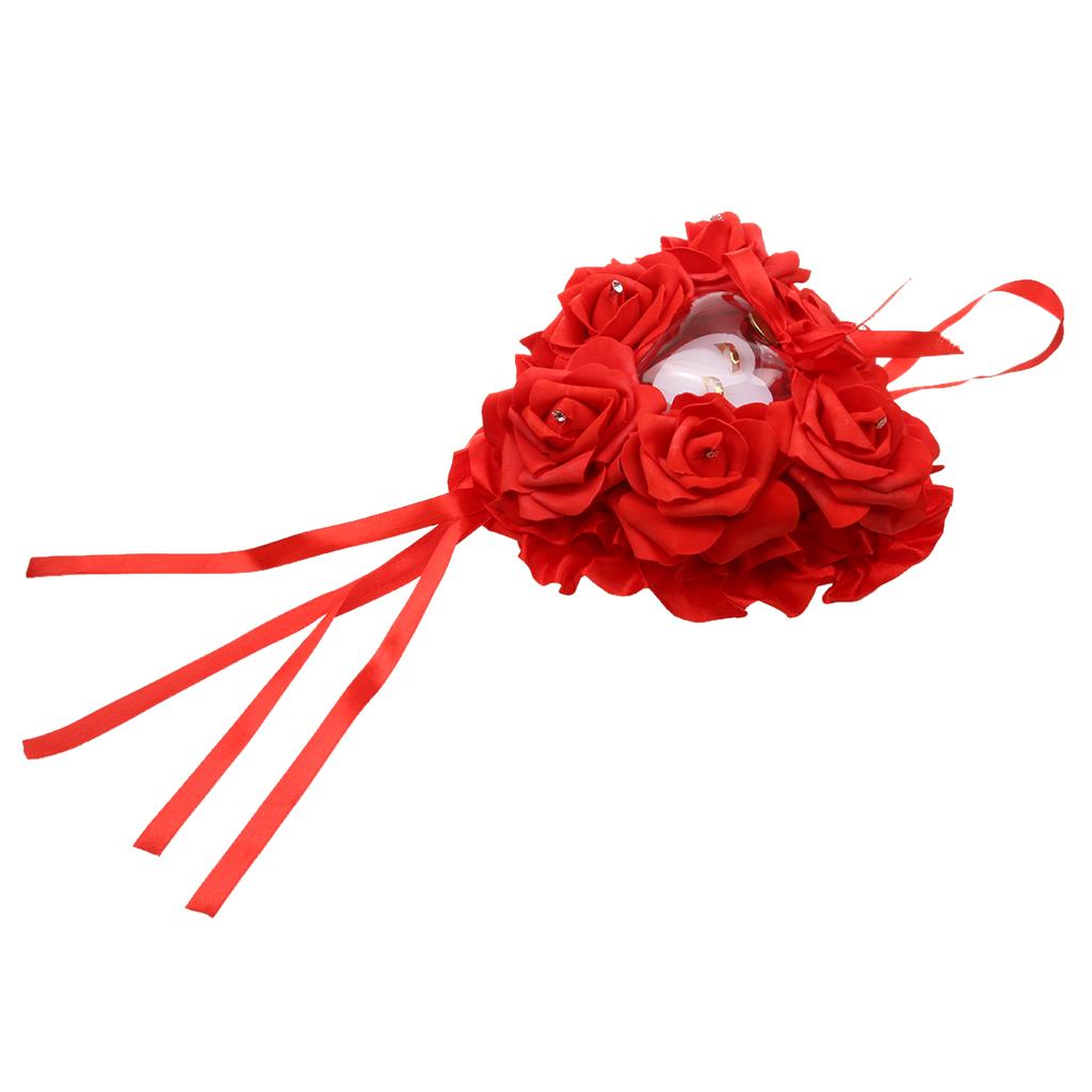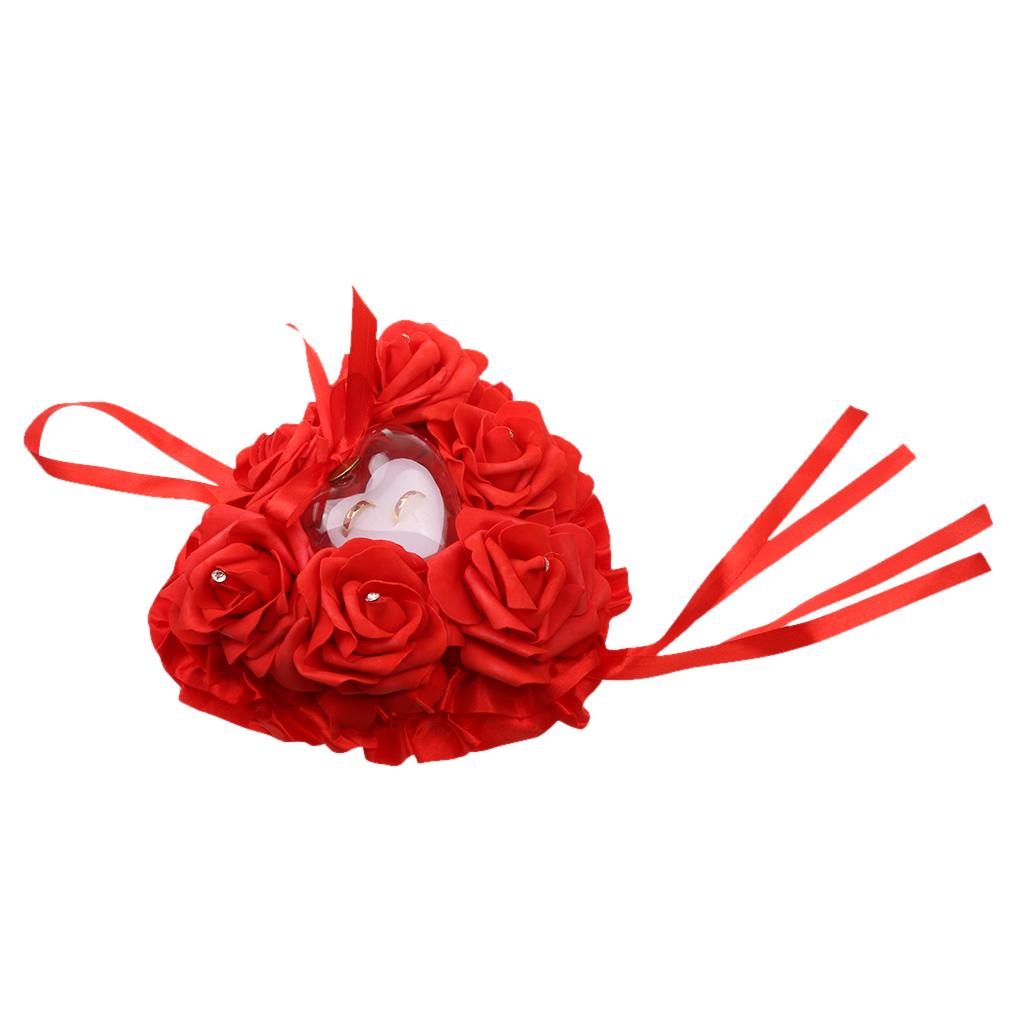 European Style Heart Shaped Flower Wedding Ring Pillow Wedding Favors Red