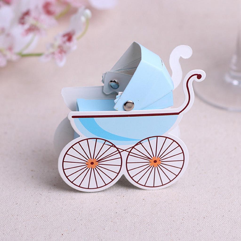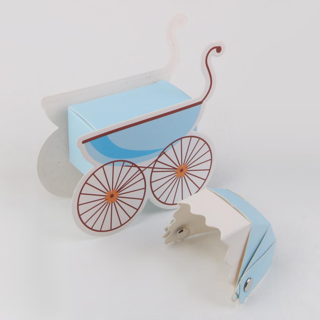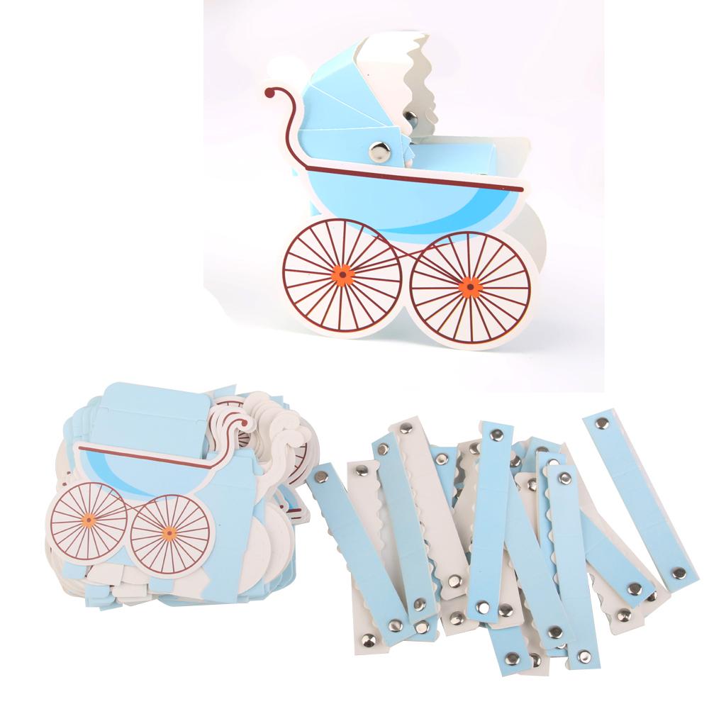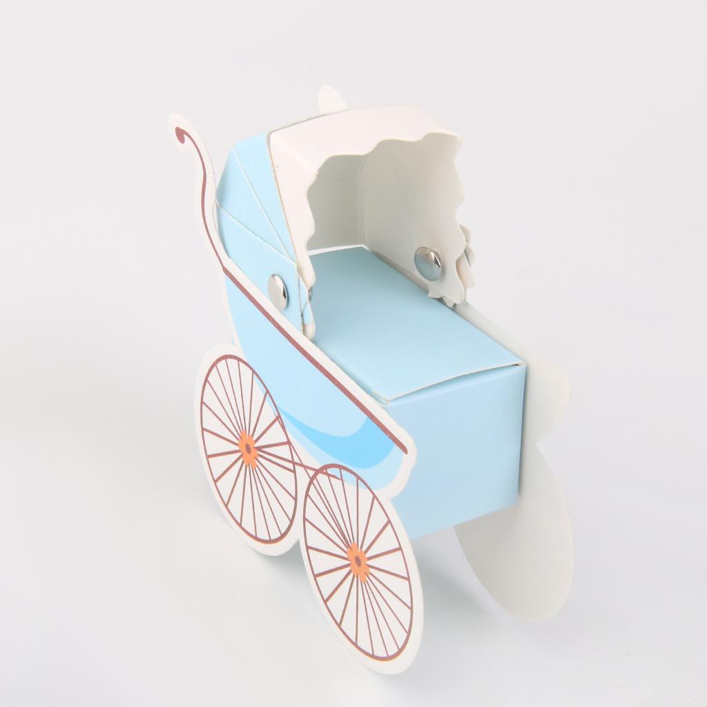 Fashionable Stroller Shape Baby Shower Party Supplies Candy Chocolate Sweet Holder Box Gift Pack of 10PCS Blue