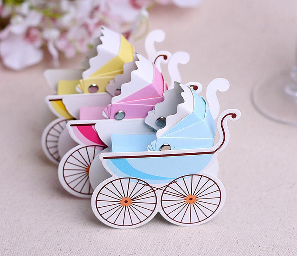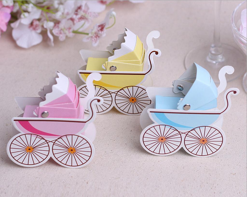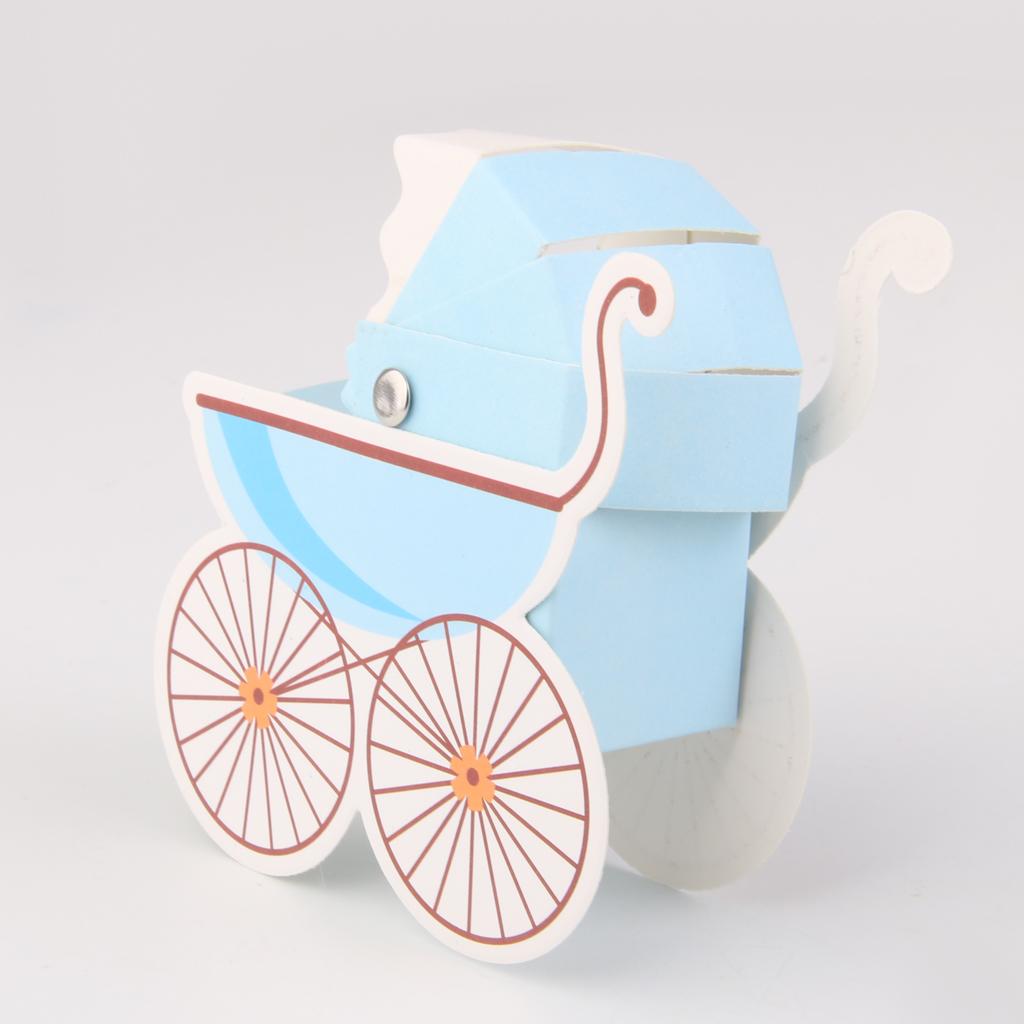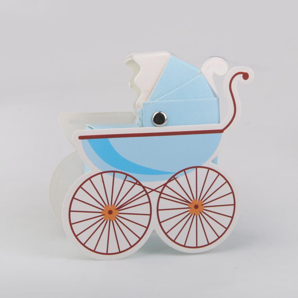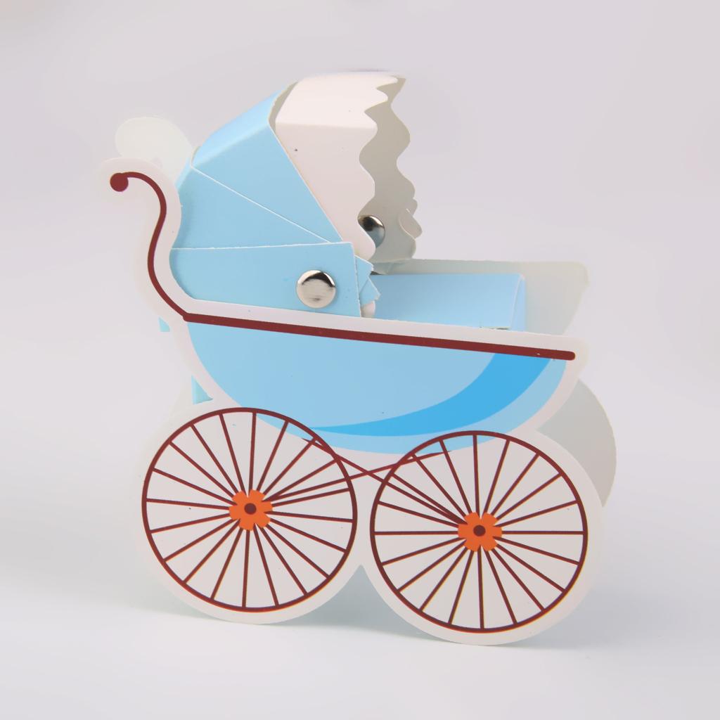 Fashionable Stroller Shape Baby Shower Party Supplies Candy Chocolate Sweet Holder Box Gift Pack of 10PCS Blue