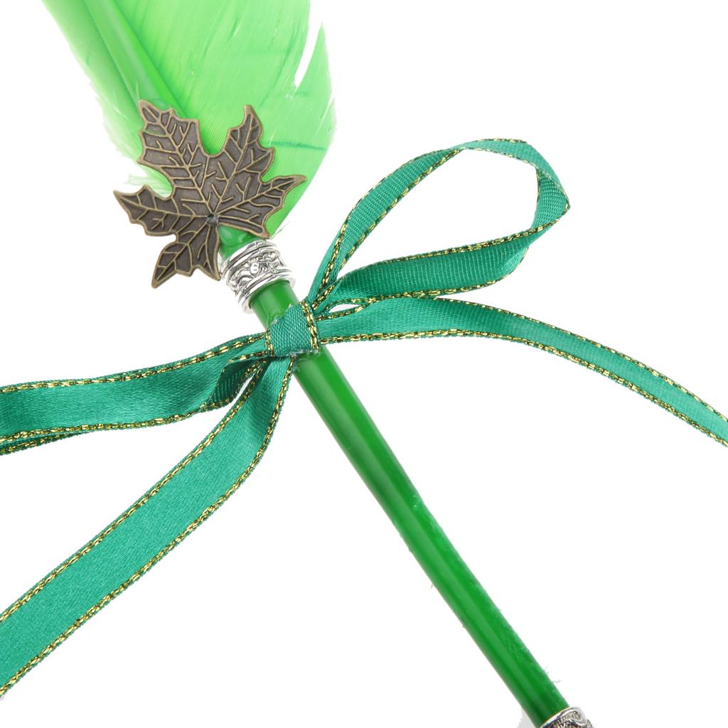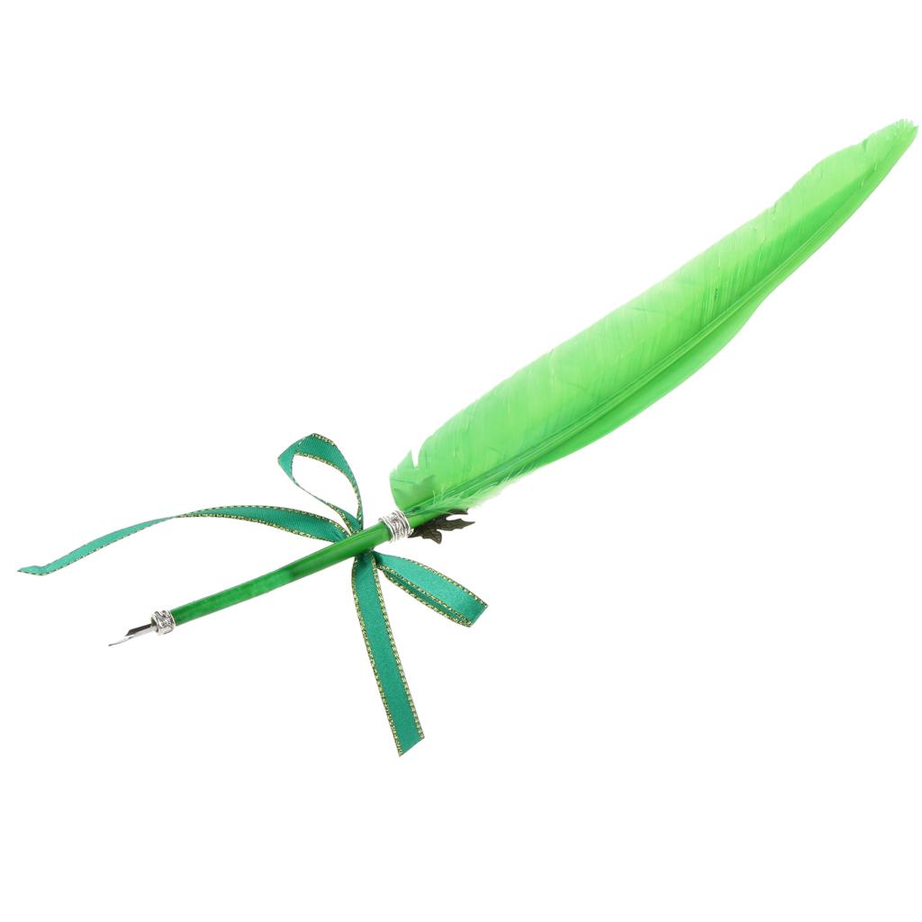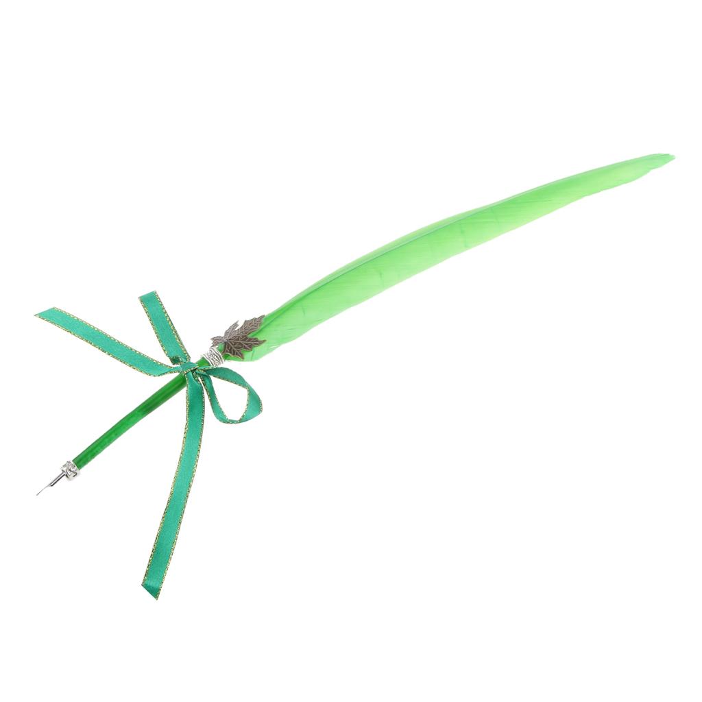 Feather Quill Writing Pen Dip Ink Pen Manuscript for Guest Book Light green