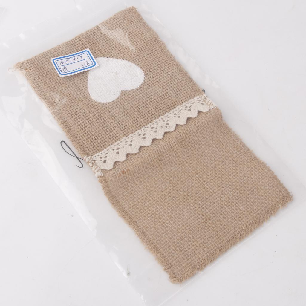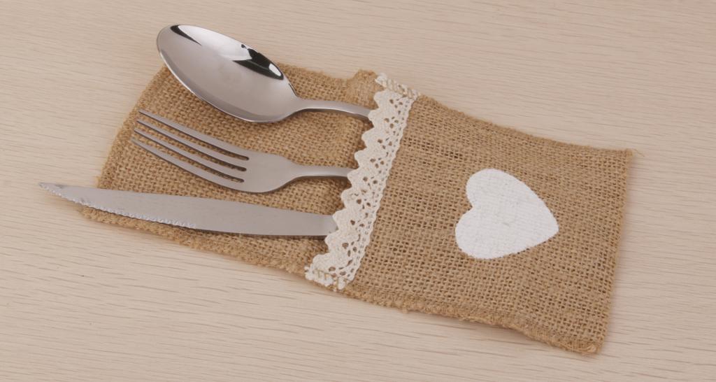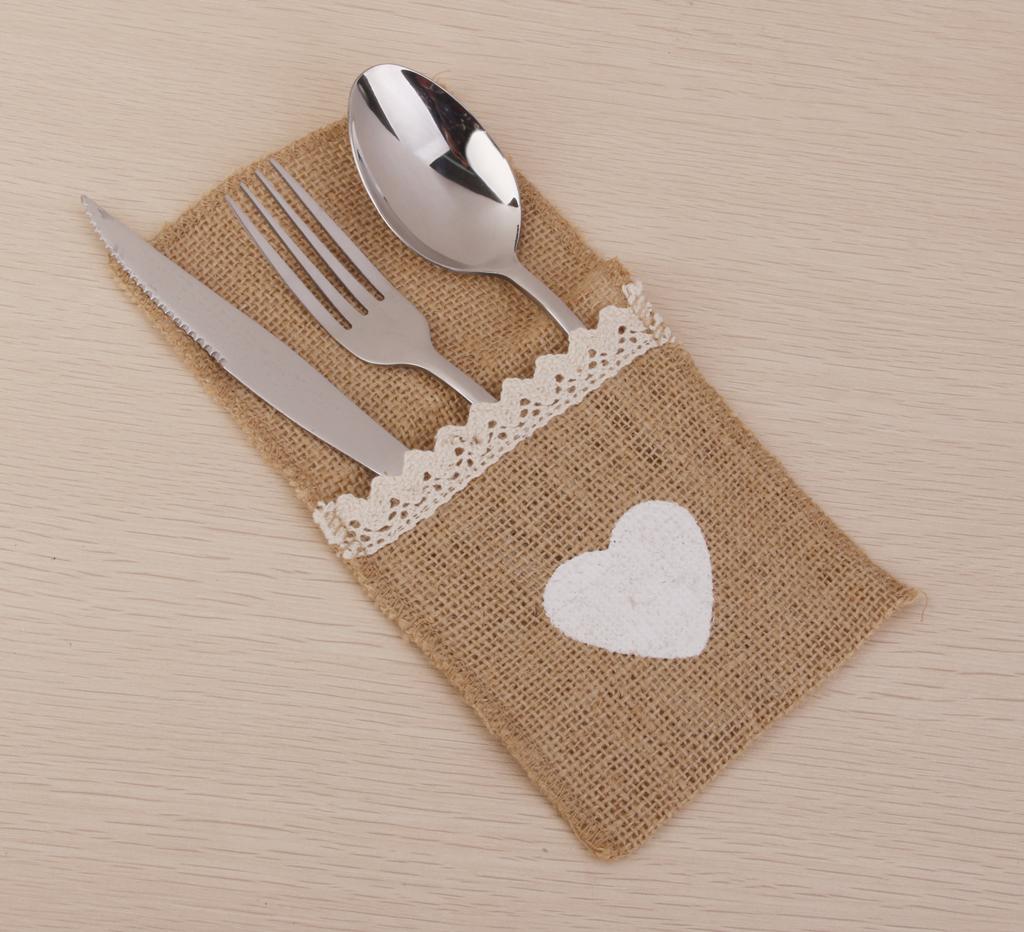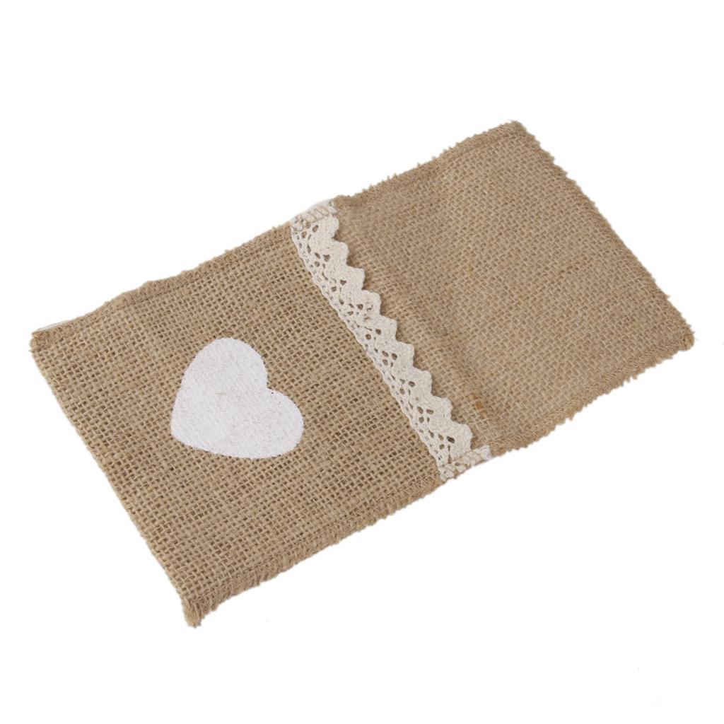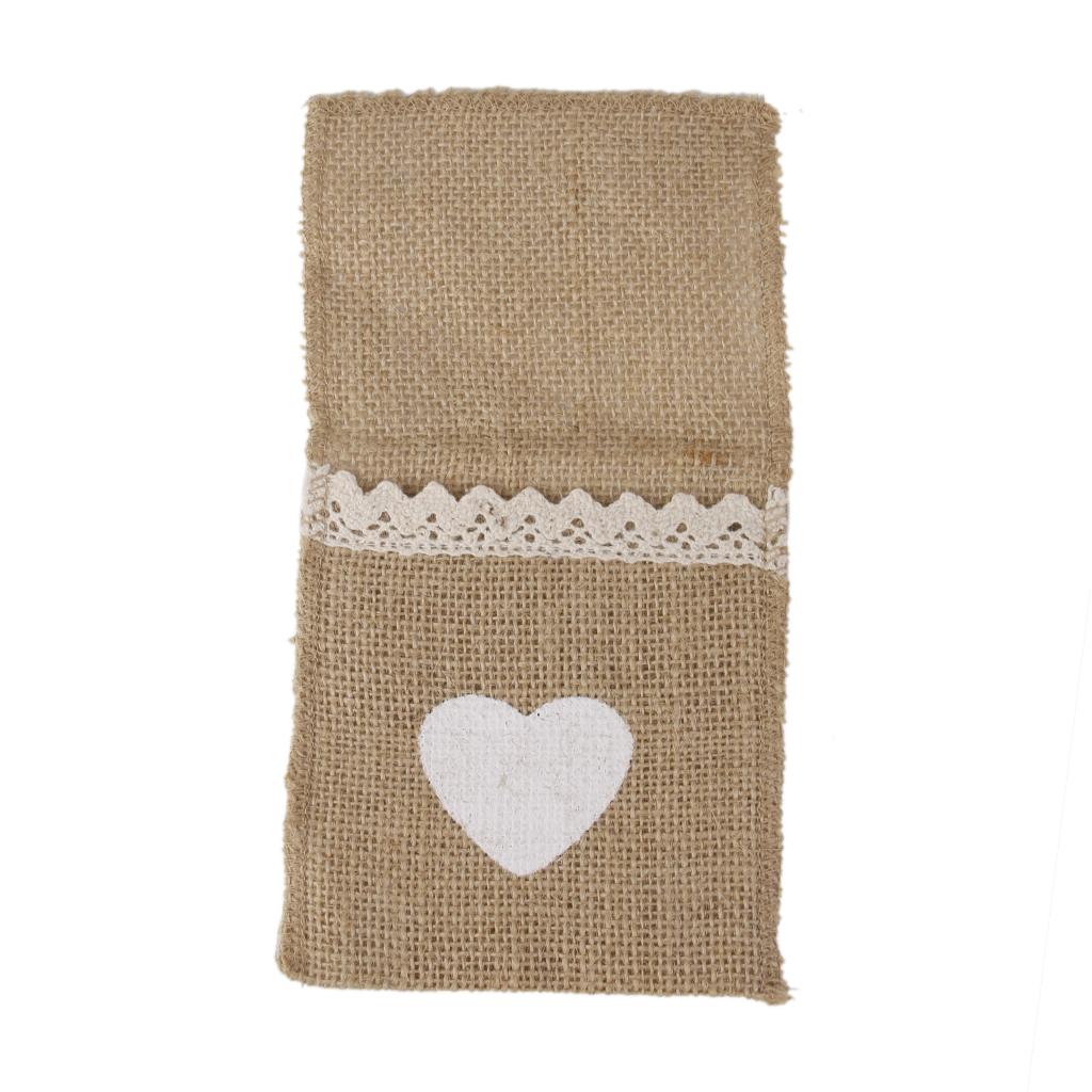 These burlap cutlery holders are made from natural burlap with a white heart at the front which is hand-painted with acrylic paint.
