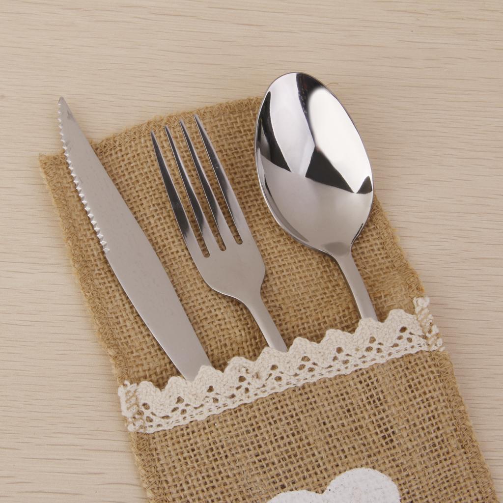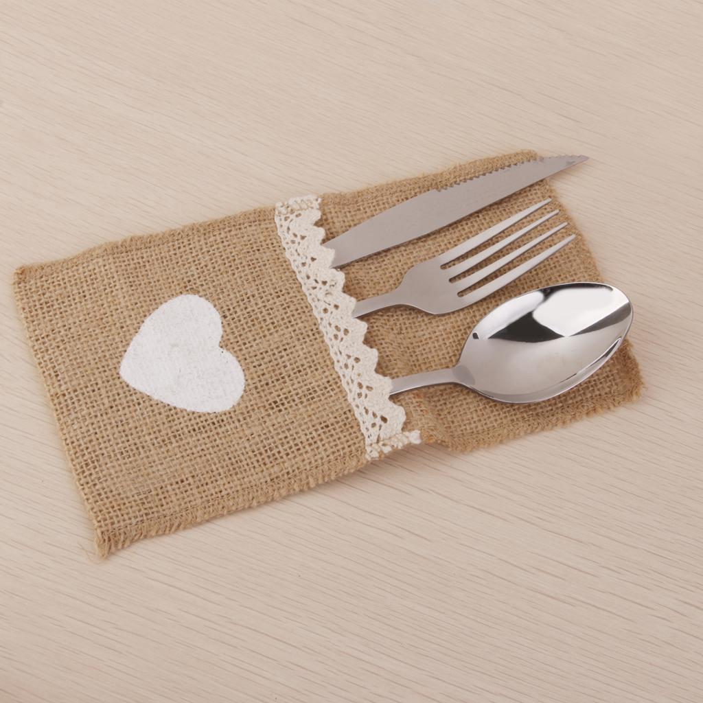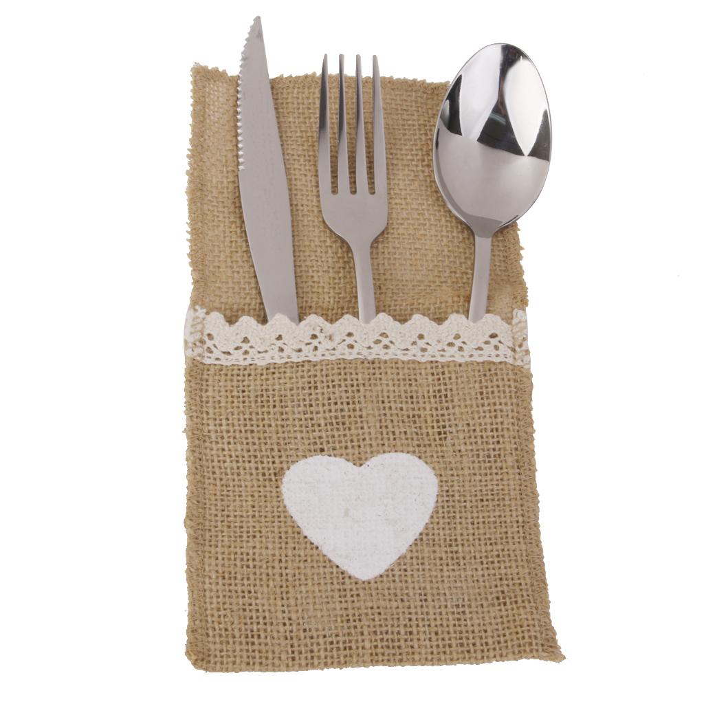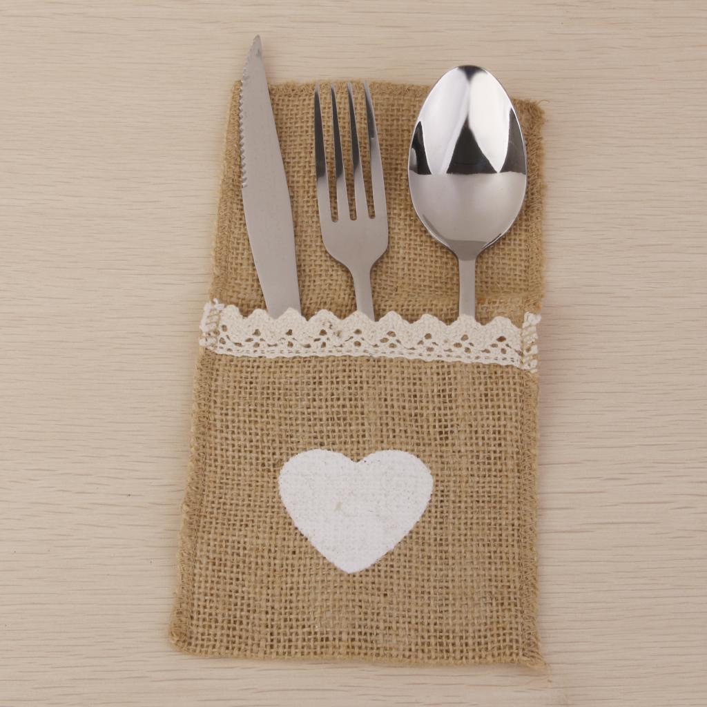 These burlap cutlery holders are made from natural burlap with a white heart at the front which is hand-painted with acrylic paint.