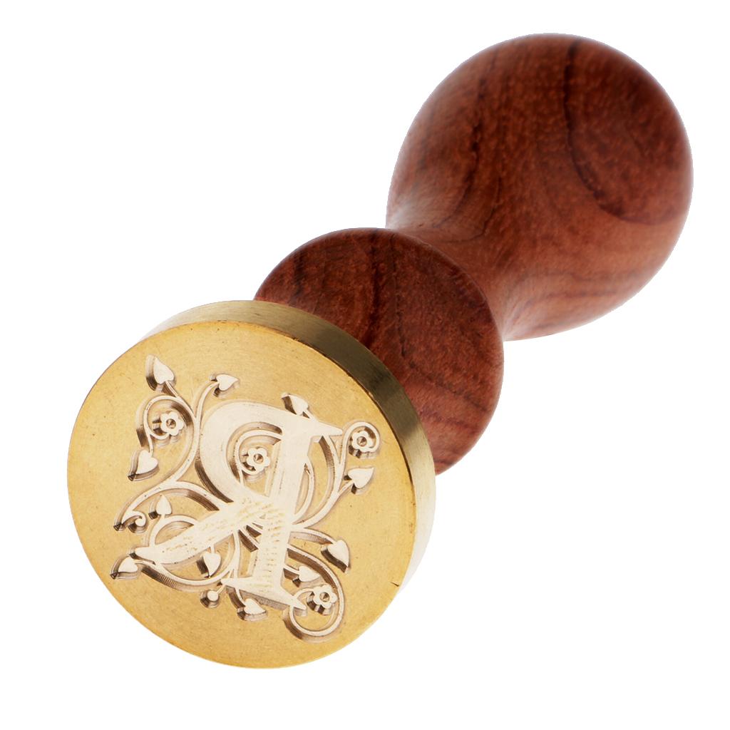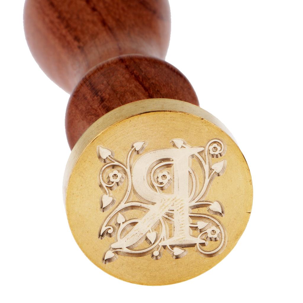 Stylish Initial Seal Wax Sealing Letter Design Metal Coin Stamp w/ Wooden Handle