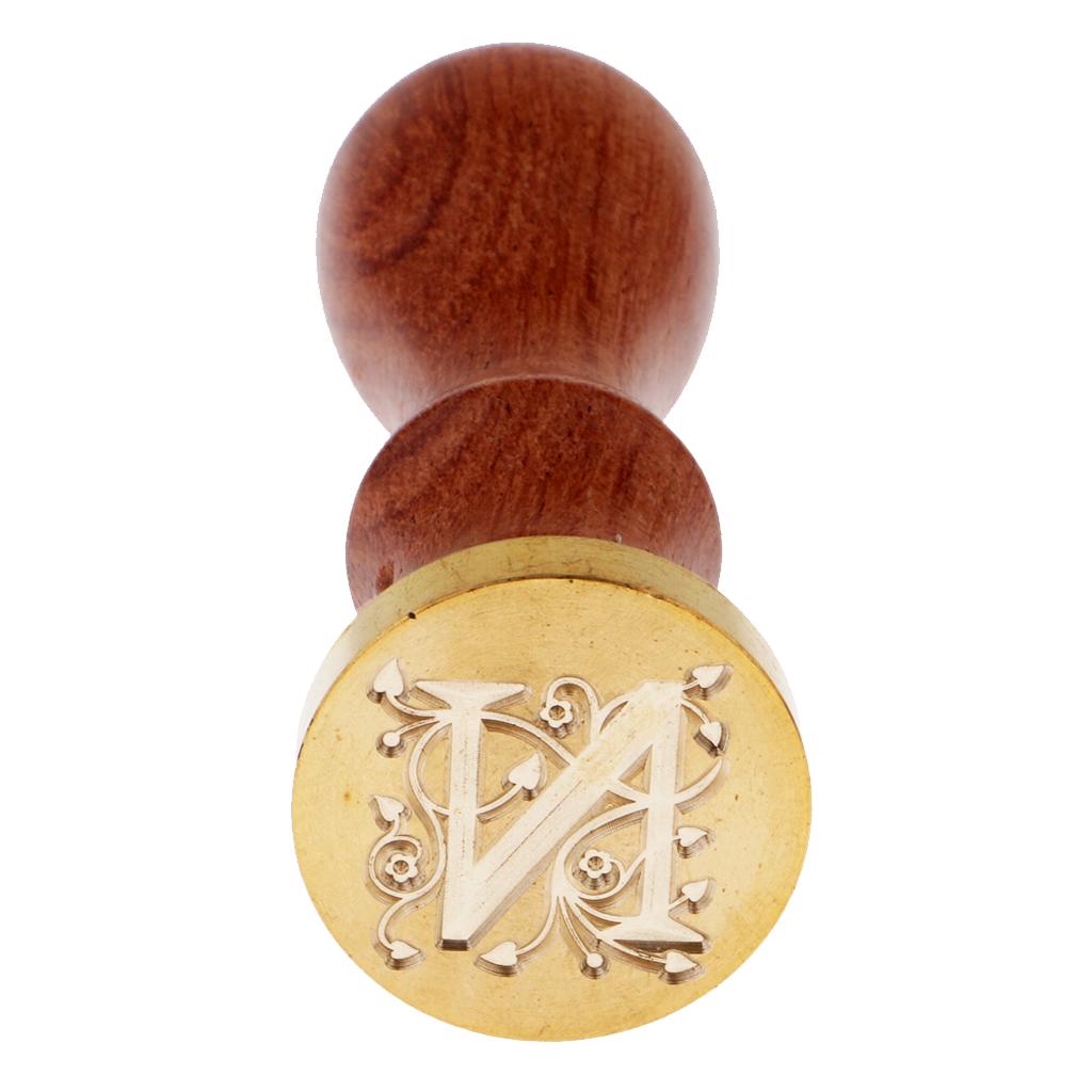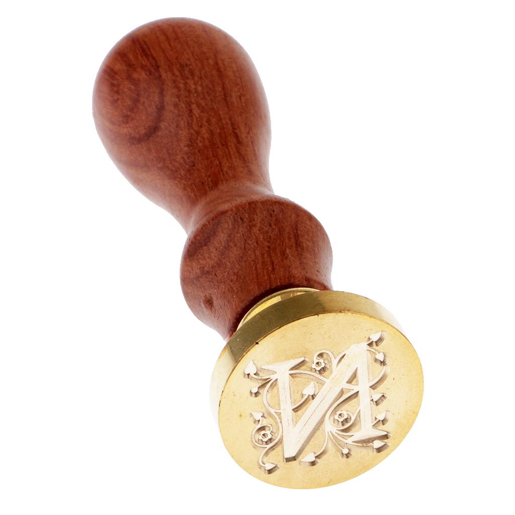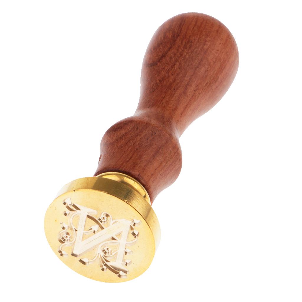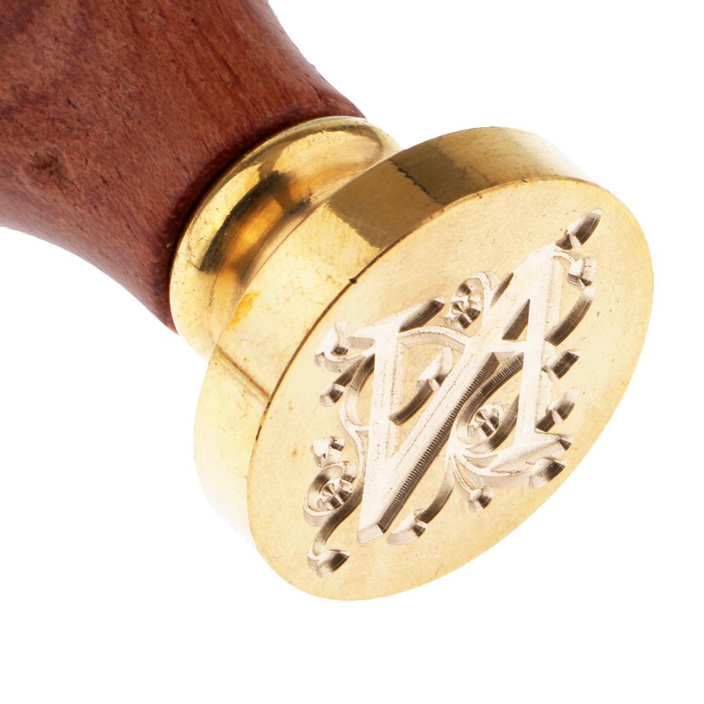 Stylish Initial Seal Wax Sealing Letter Design Metal Coin Stamp w/ Wooden Handle