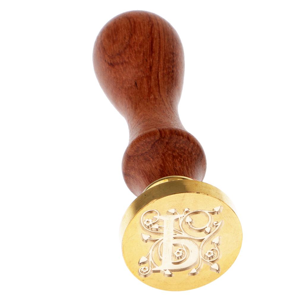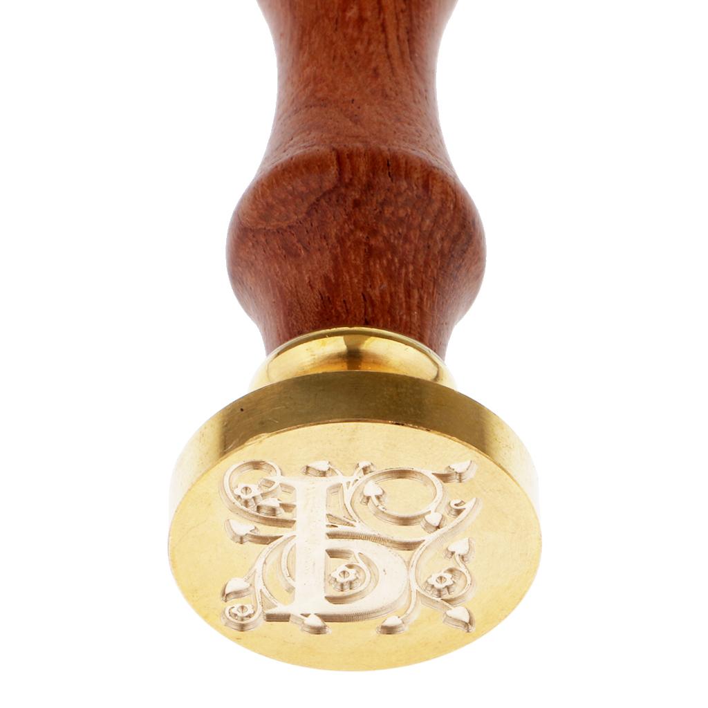 Stylish Initial Seal Wax Sealing Letter Design Metal Coin Stamp w/ Wooden Handle
