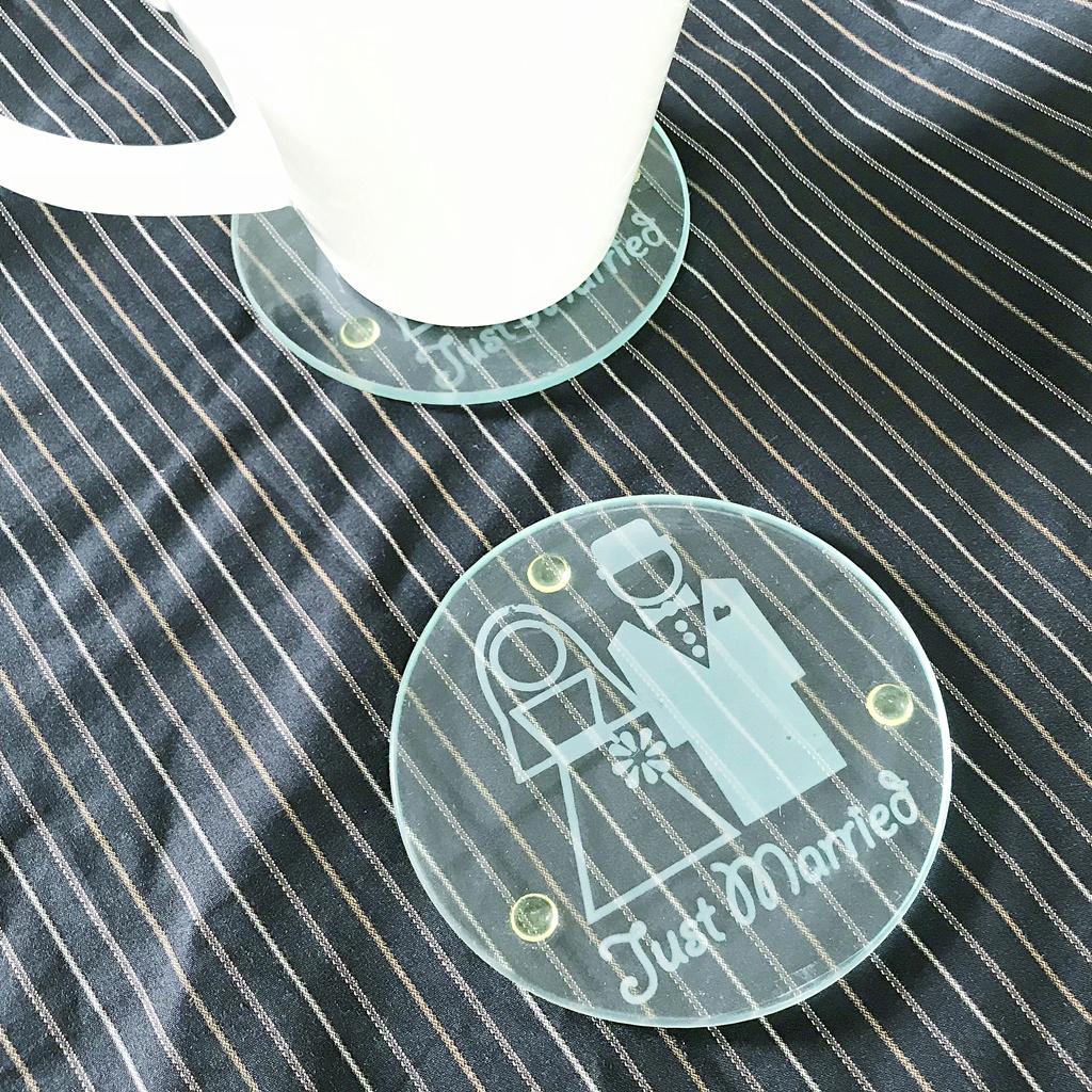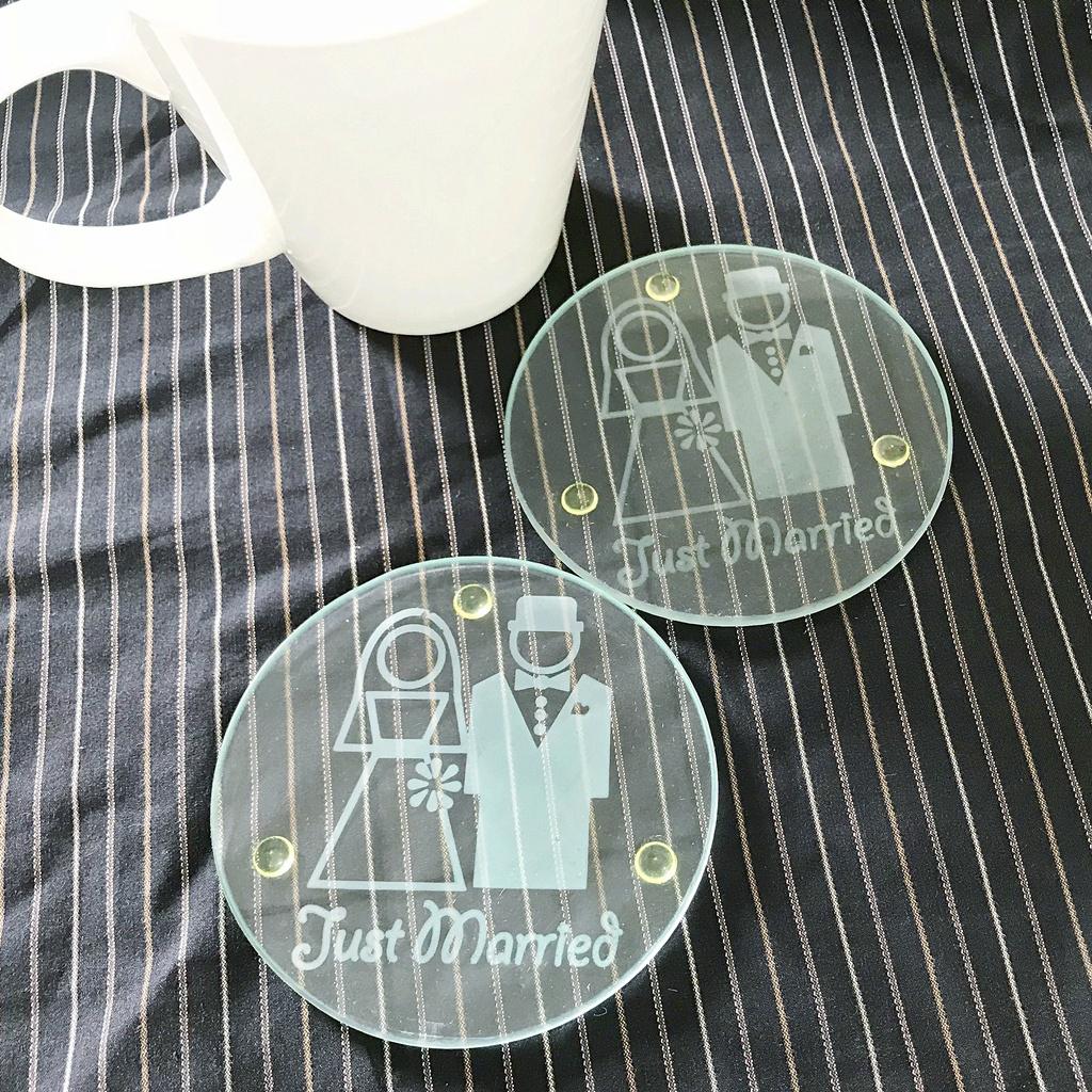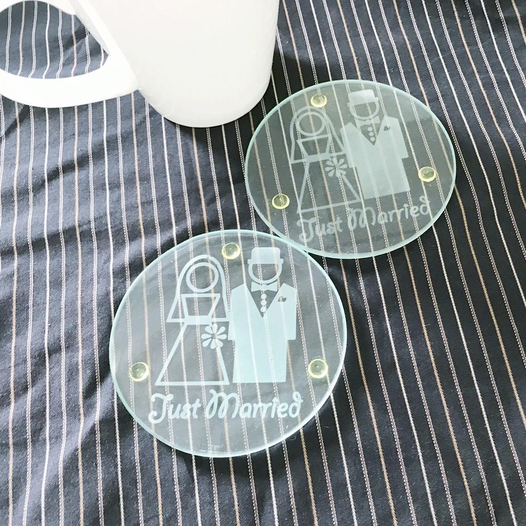 Just Married Glass Coaster, Pack of 2
