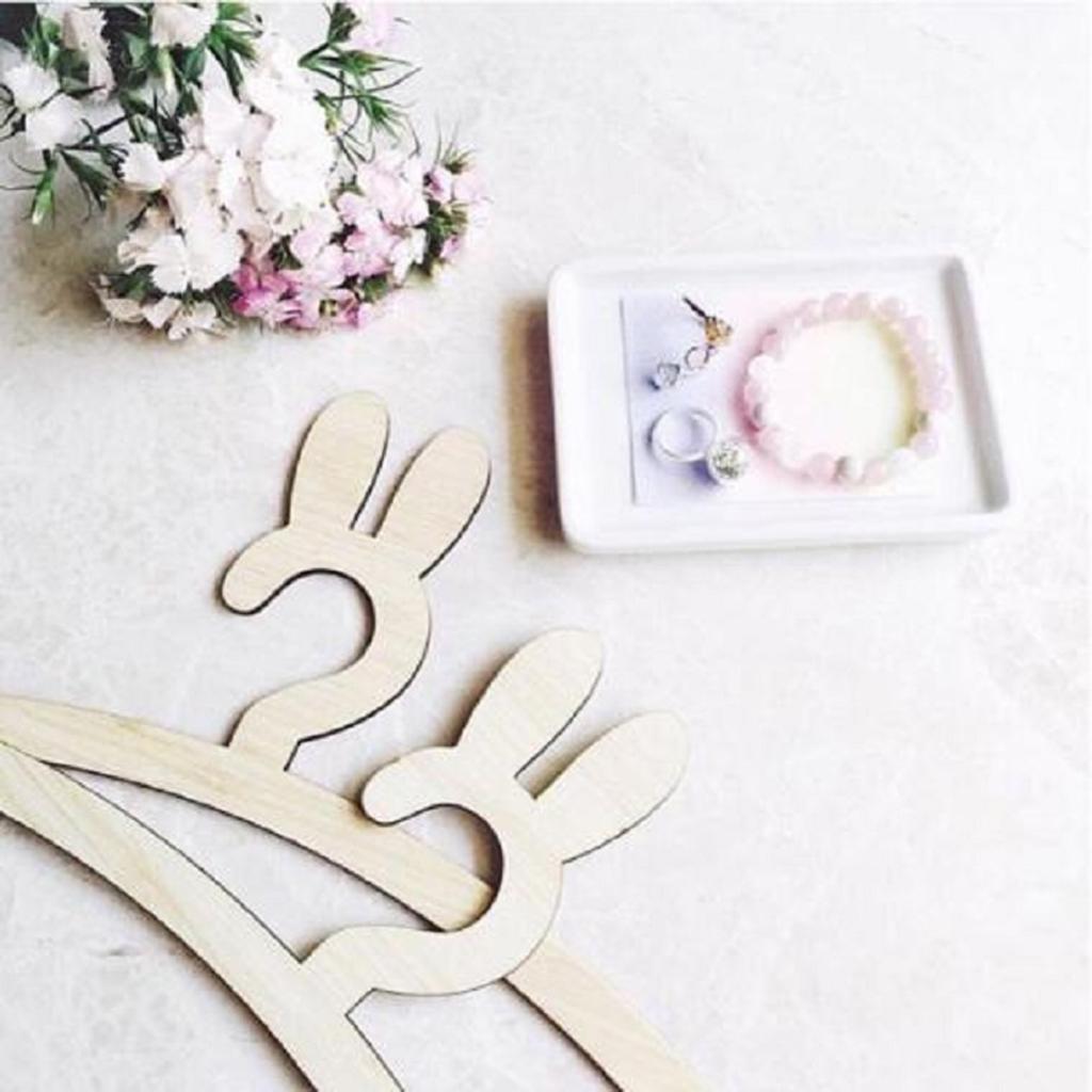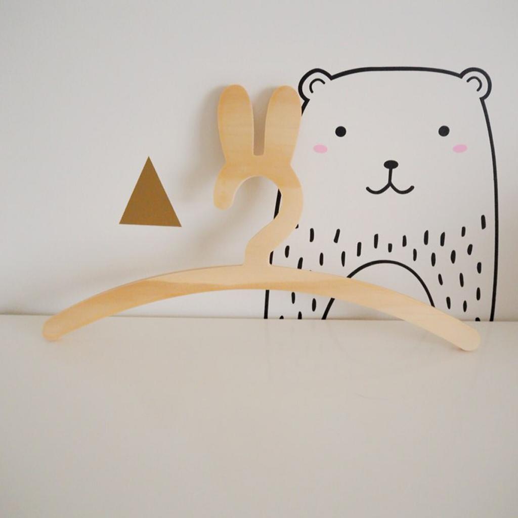 Lovely Rabbits Baby Kids Wood Bunny Clothes Hanger Home Room Decor Natural