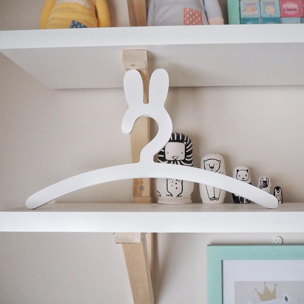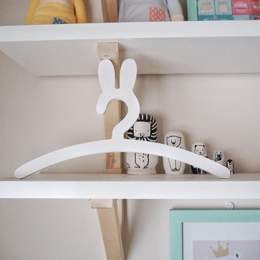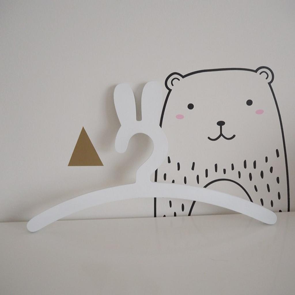 Lovely Rabbits Baby Kids Wood Bunny Clothes Hanger Home Room Decor White